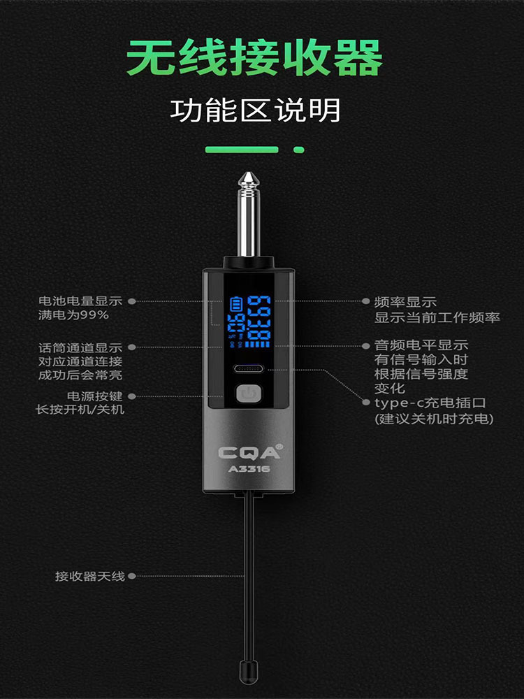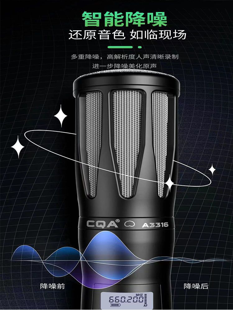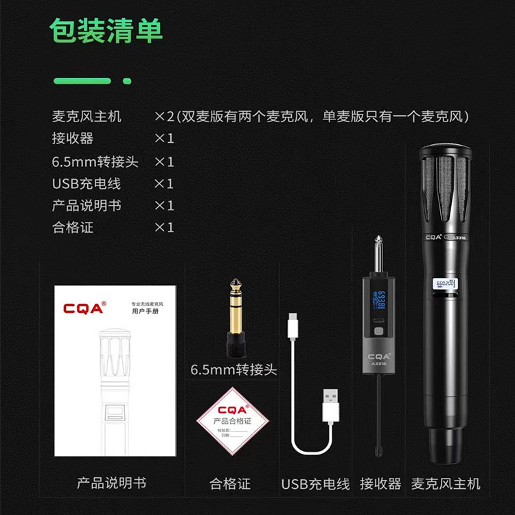 • 검정색 CQA3316 듀얼 마이크 + 충전식 배터리 + 충전 스탠드