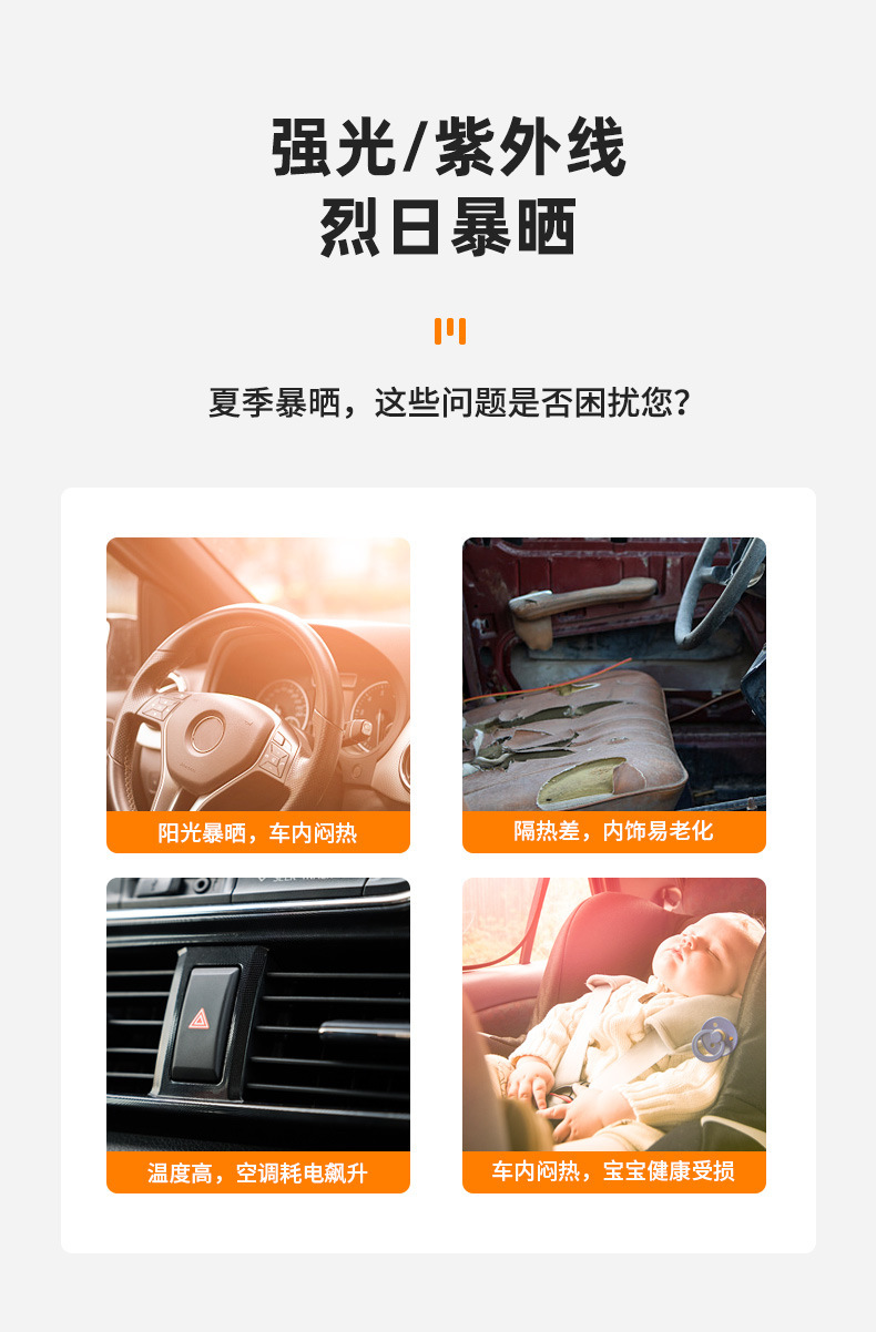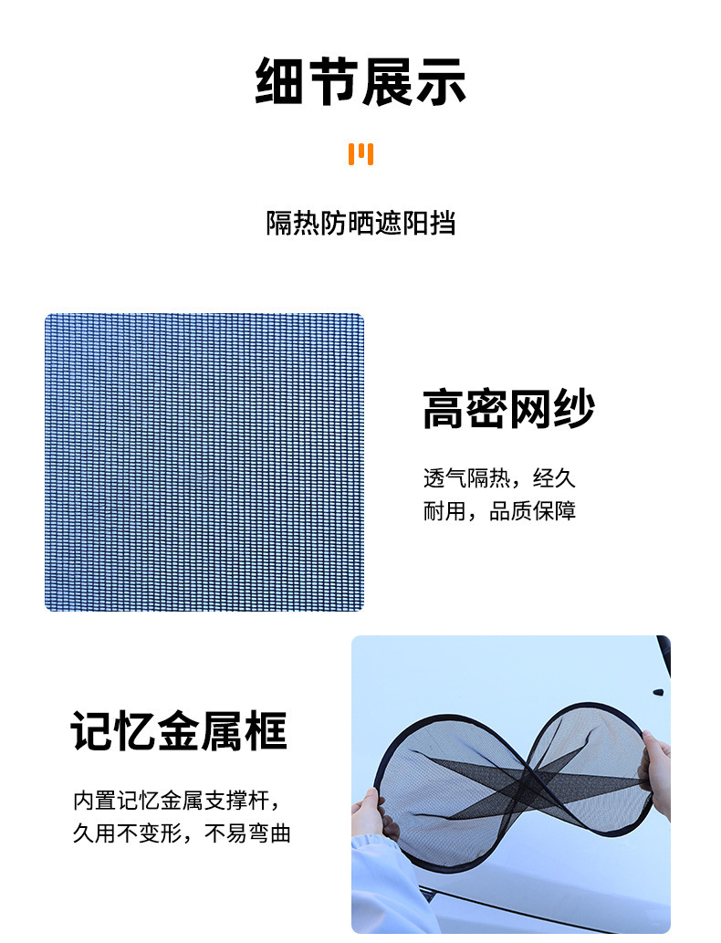 【产品尺寸】:后挡50*100cm;前窗斜挡36*44cm;后窗侧挡36*44cm;