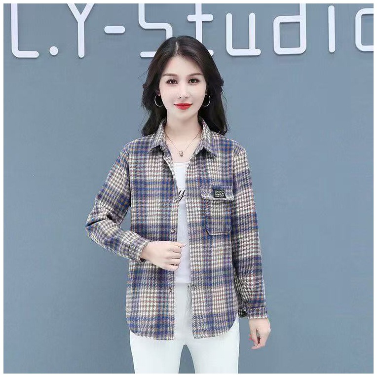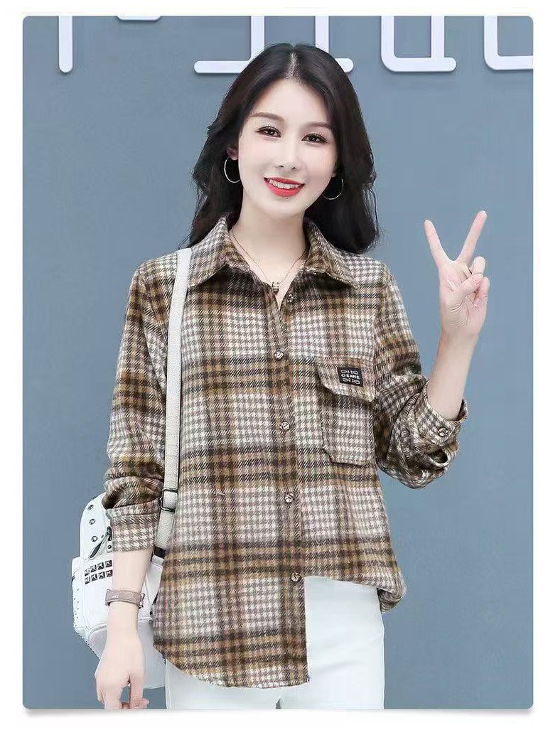 2025 봄 새로운 느슨한 캐주얼 모직 셔츠 봄 옷 중년 여성을위한 외국인 스타일 40 세 슬림 룩 재킷 셔츠