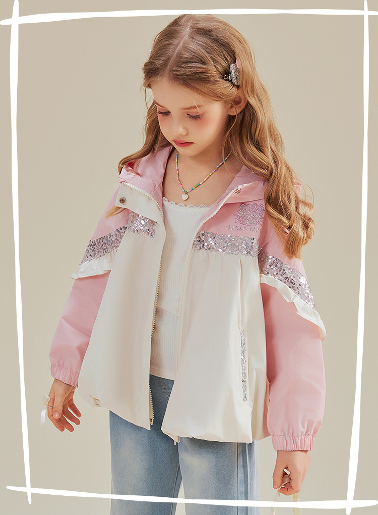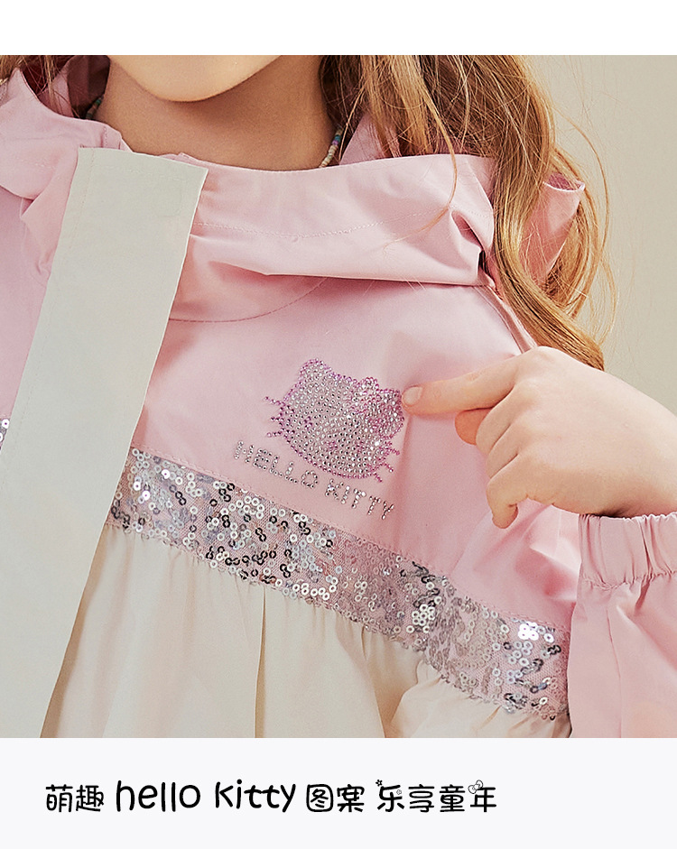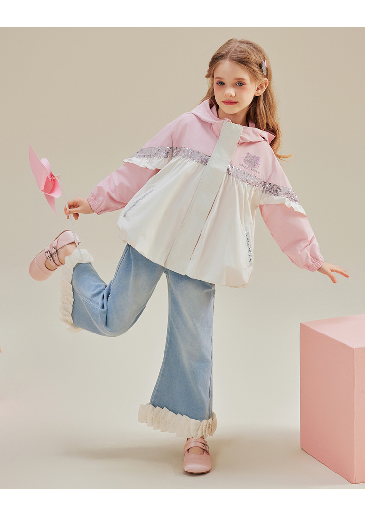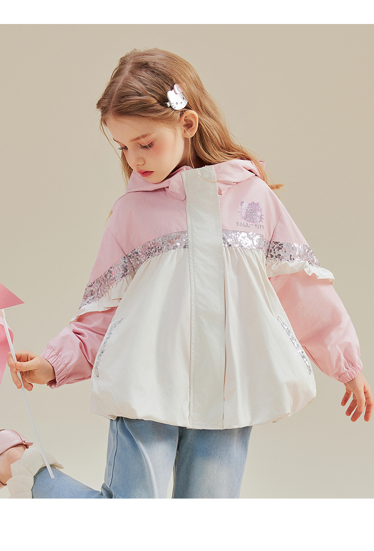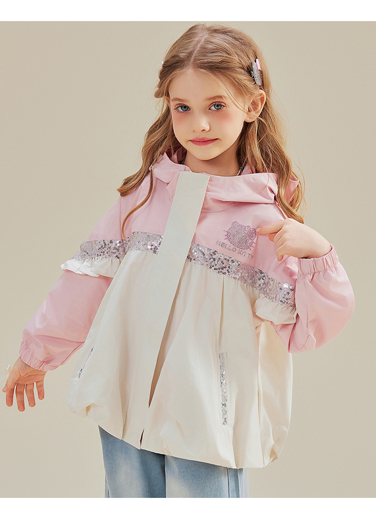 헬로 키티 헬로 키티 걸스 봄 달콤한 바람 대비 코트 2025 새로운 중형 및 대형 어린이 코트