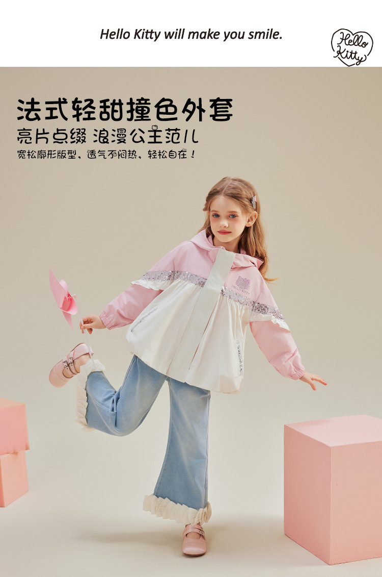 헬로 키티 헬로 키티 걸스 봄 달콤한 바람 대비 코트 2025 새로운 중형 및 대형 어린이 코트스토어 가기