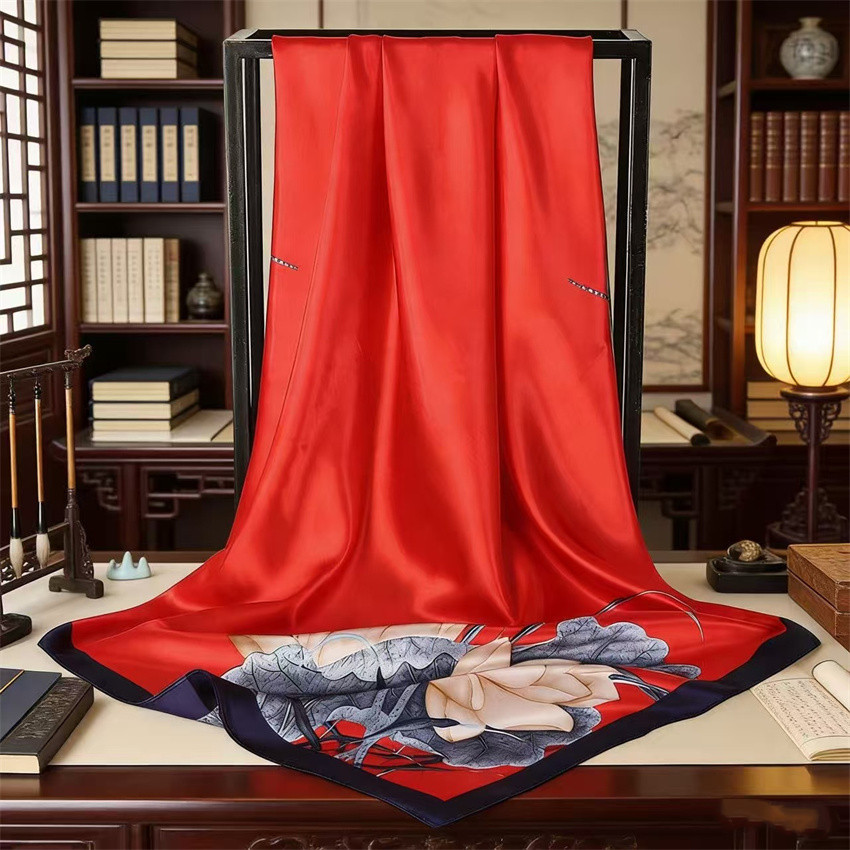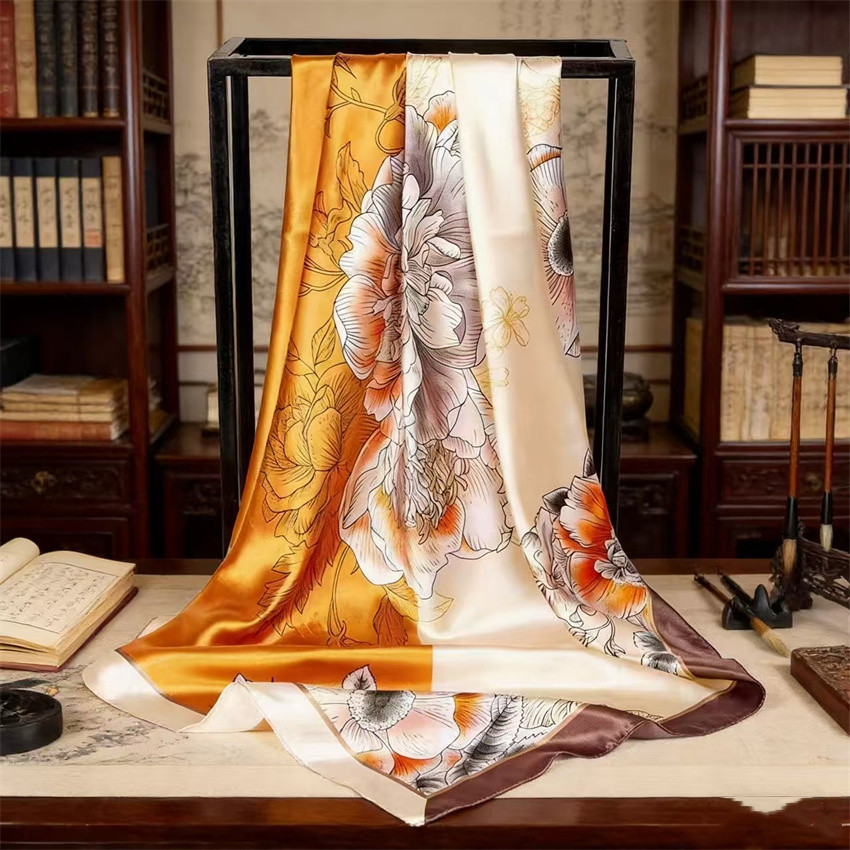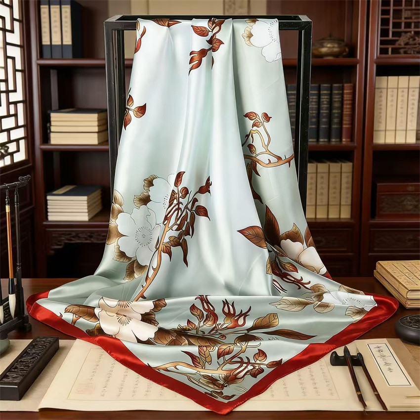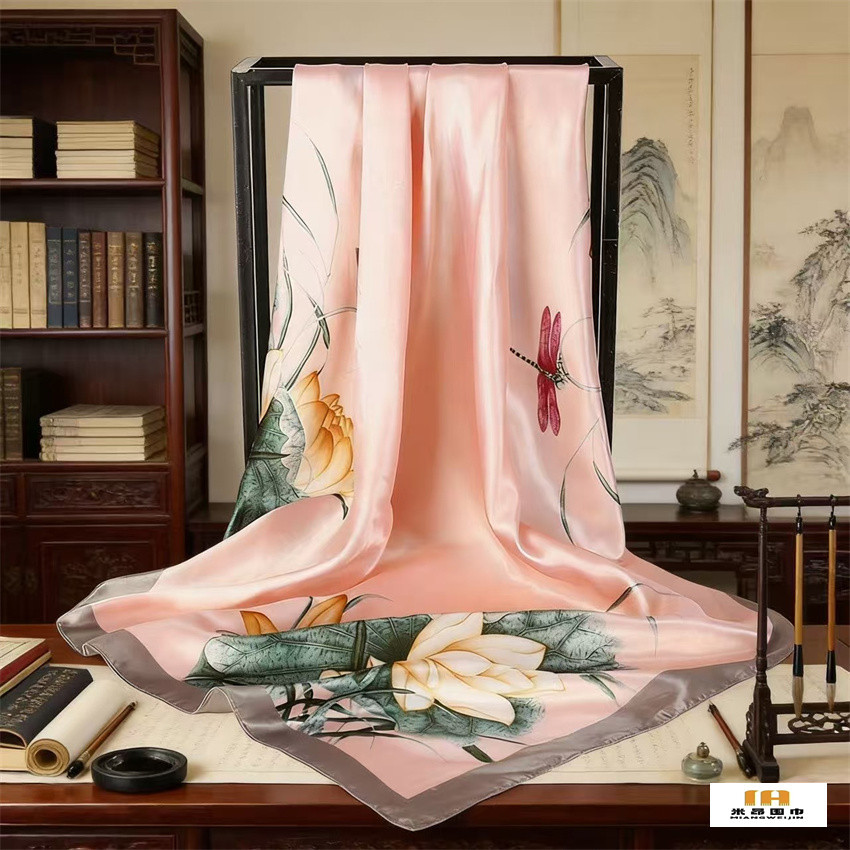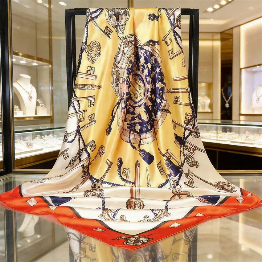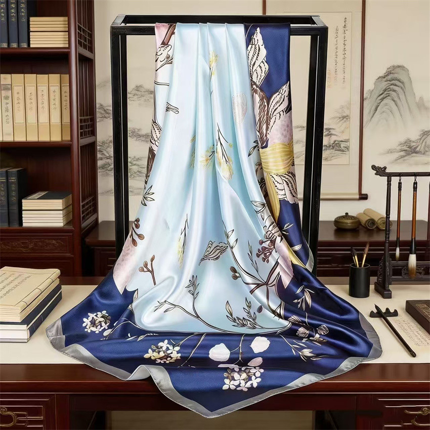 90*90 대형 스퀘어 스카프 항저우 실크 스카프 여성의 봄과 가을 새로운 패션 스카프 세련된 올 매치 헤드 스카프