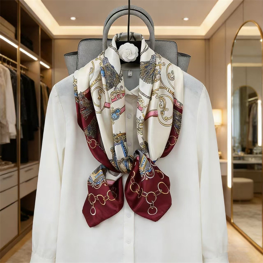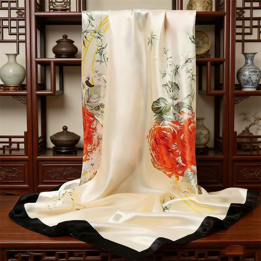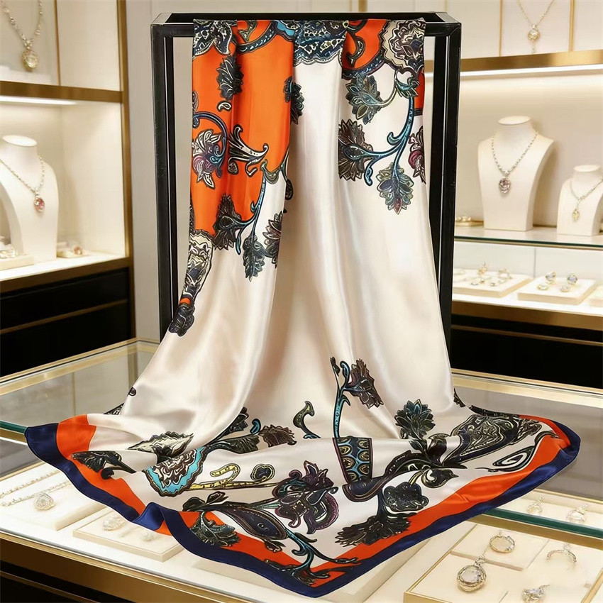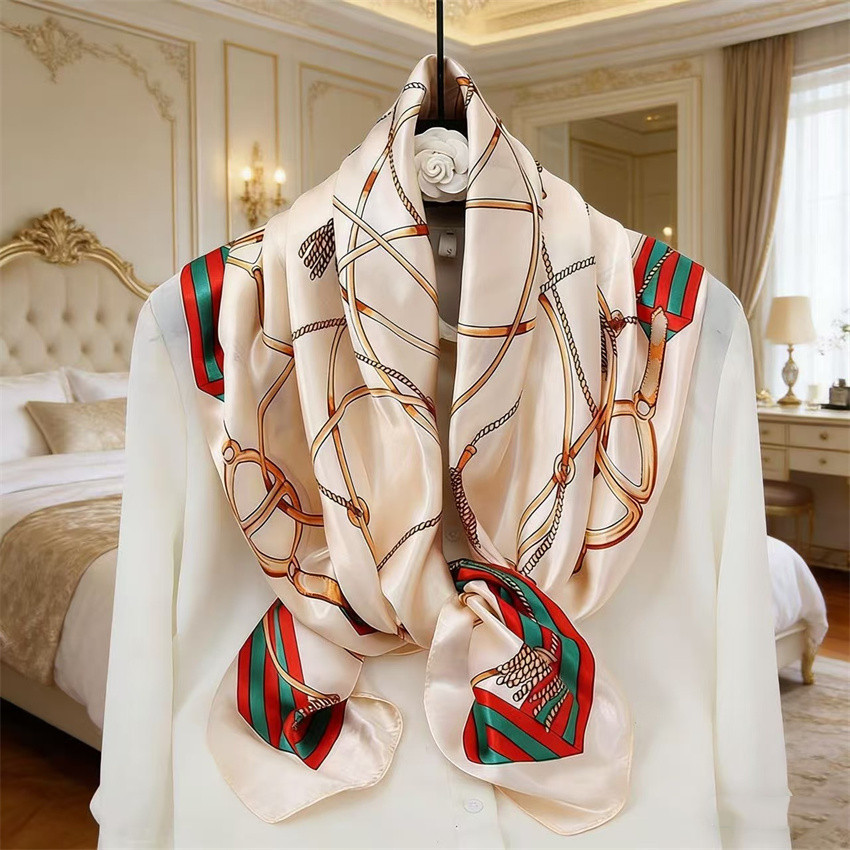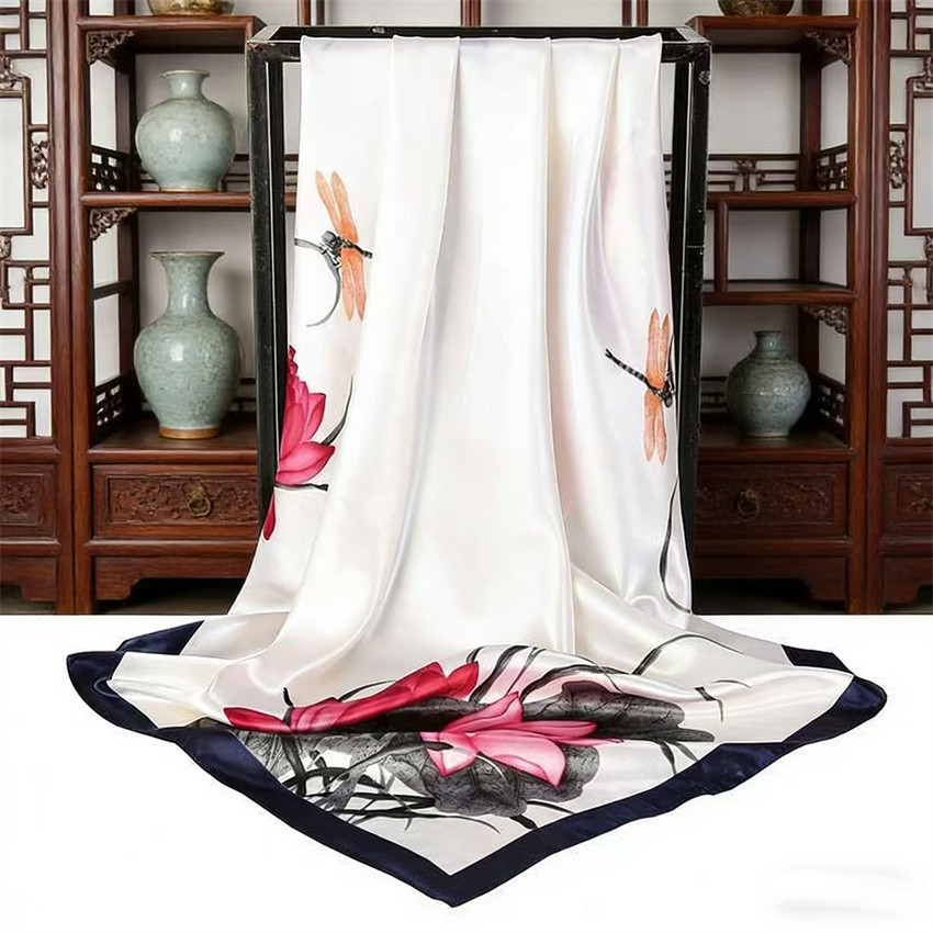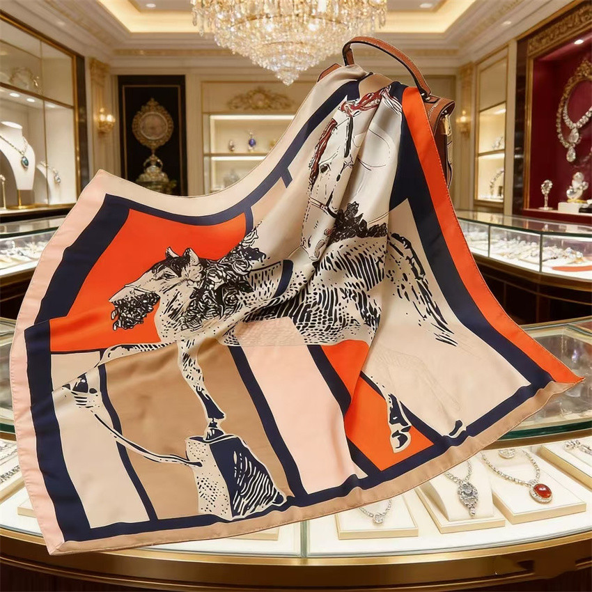 90*90 대형 스퀘어 스카프 항저우 실크 스카프 여성의 봄과 가을 새로운 패션 스카프 세련된 올 매치 헤드 스카프