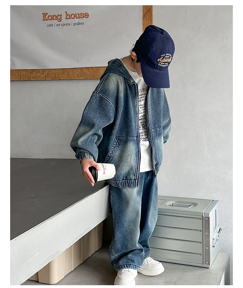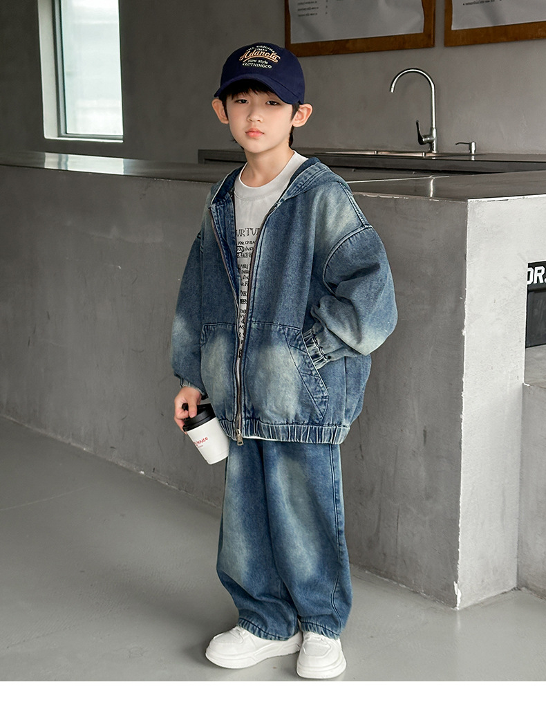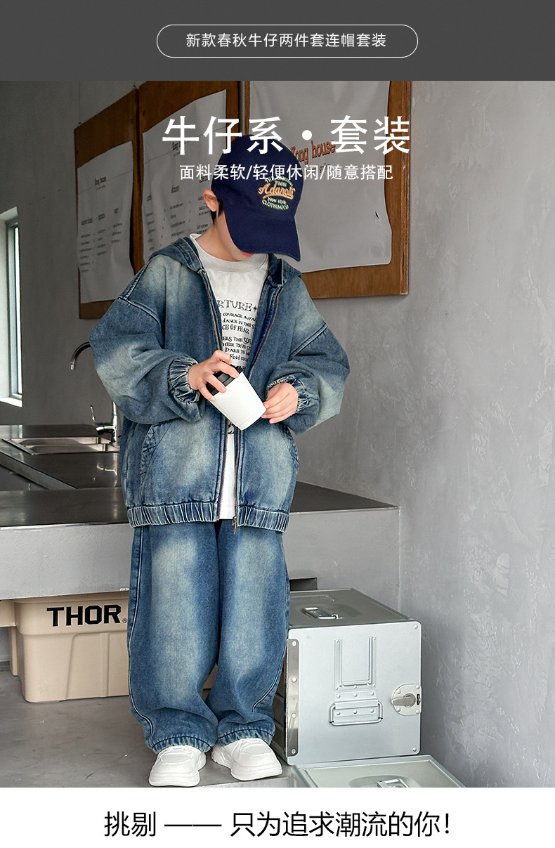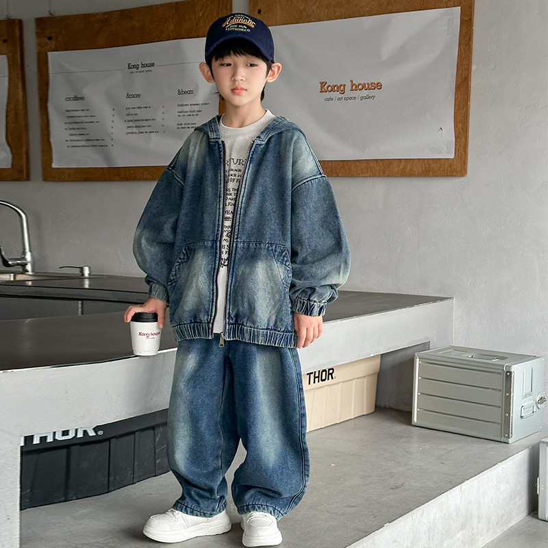 소년 봄 옷 데님 2025 세트 새로운 Cuhk 어린이 봄 재킷 2 피스 소년 봄 가을 옷 트렌디스토어 가기