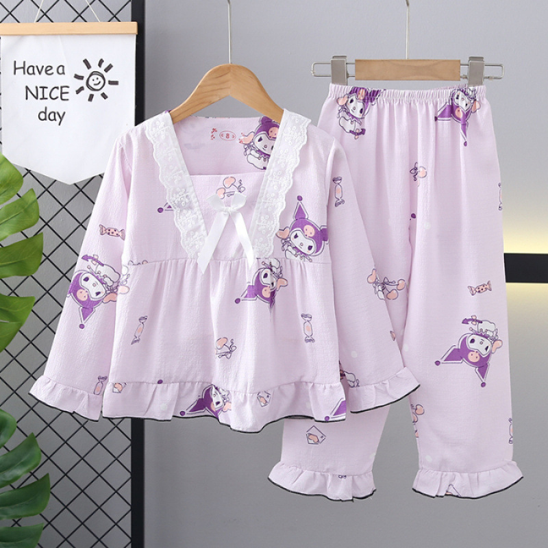 봄과 여름 신상 어린이 만화 잠옷 봄과 가을용 버블 코튼 긴팔 소녀 홈웨어 세트 통기성과 편안함스토어 가기