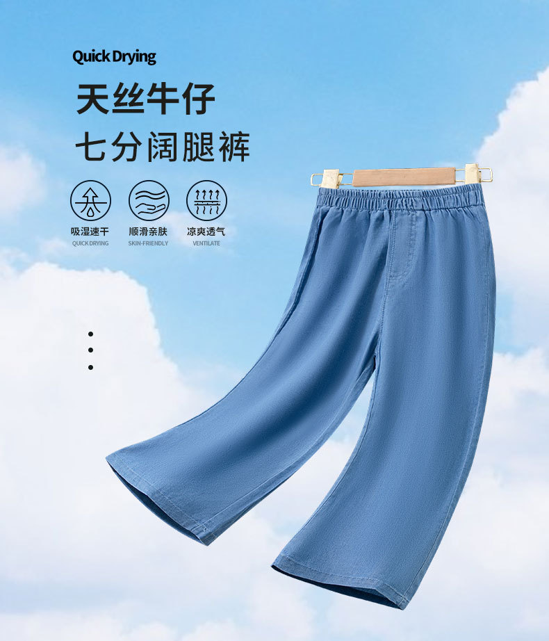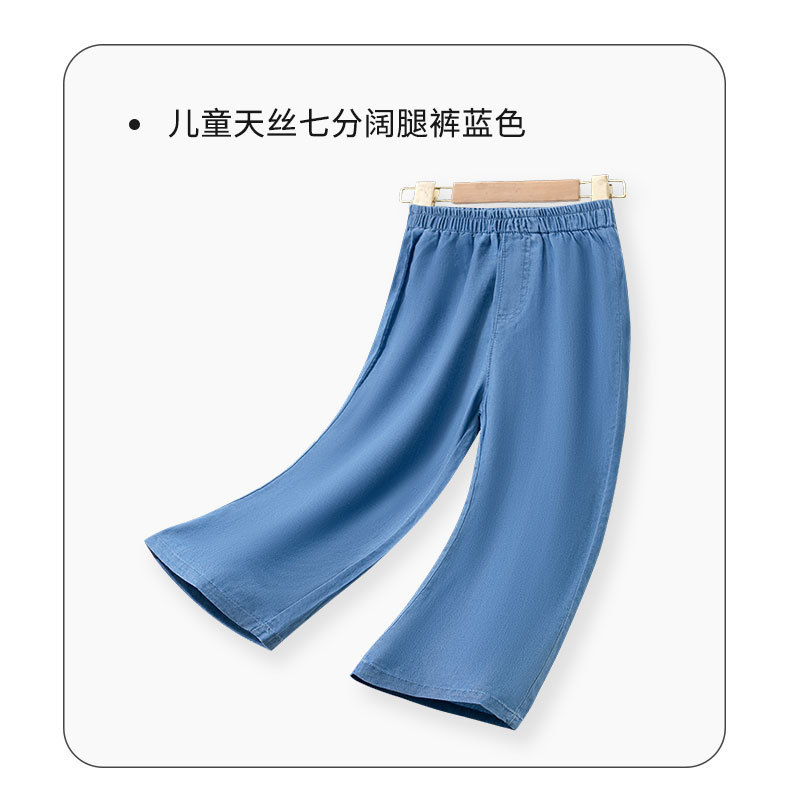 소녀의 텐셀 자른 바지 여름 어린이 바지 큰 소년 소녀의 데님 얇은 넓은 다리 바지 아이스 실크 외모 얇은스토어 가기