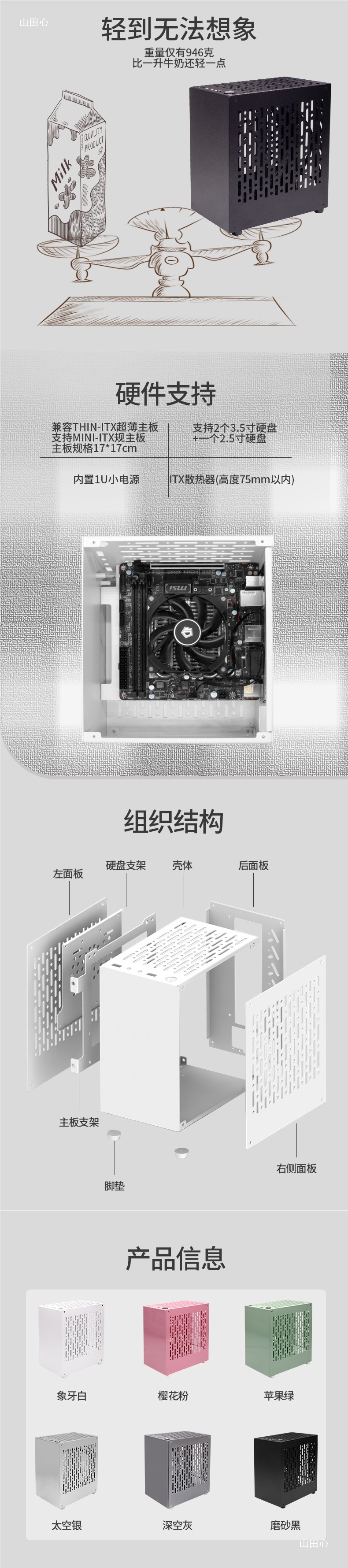 ITX 소형 섀시 NAS 수직 diyitx 데스크탑 섀시 쉘 빈 상자 컴퓨터 호스트 Qiaomei 마카롱