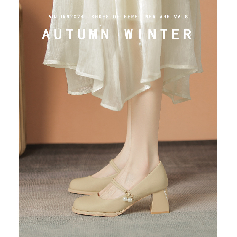 하이힐 메리 제인 여성 신발 2025 봄 새로운 올 매치 얕은 입 스커트 싱글 신발 두꺼운 힐 작은 가죽 신발 여성 도매스토어 가기