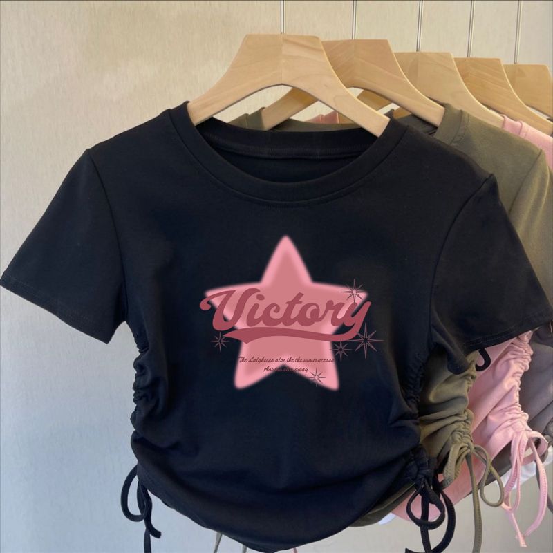아이스 실크 실 한국 아동복 소녀 여름 만화 패션 간단한 티셔츠 어린이 트렌드 drawstring 짧은 소매 탑스토어 가기