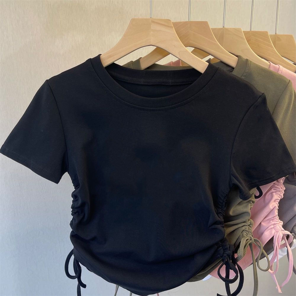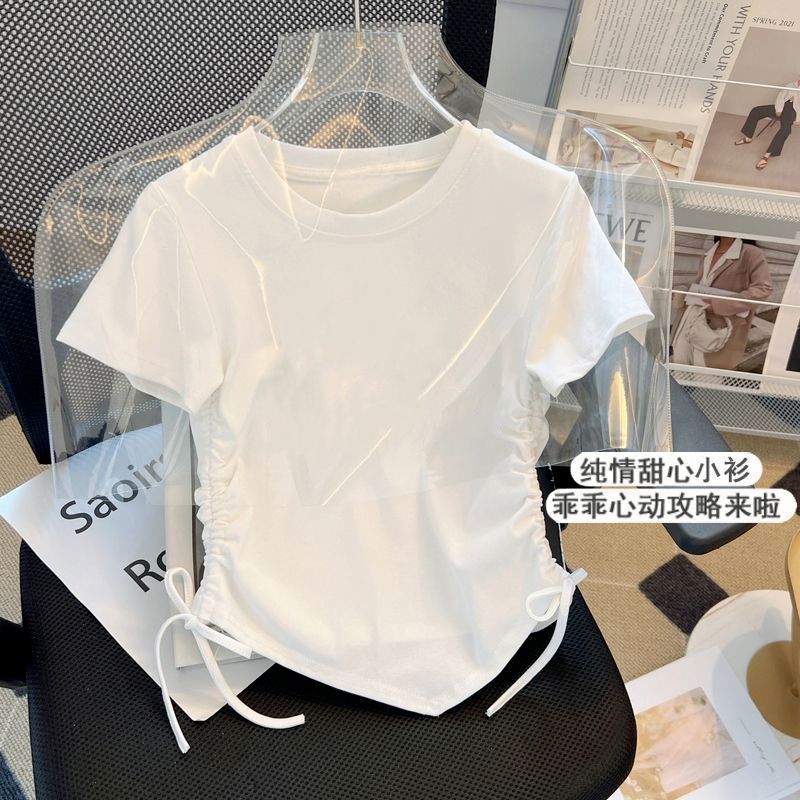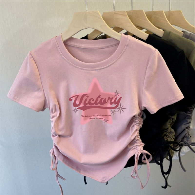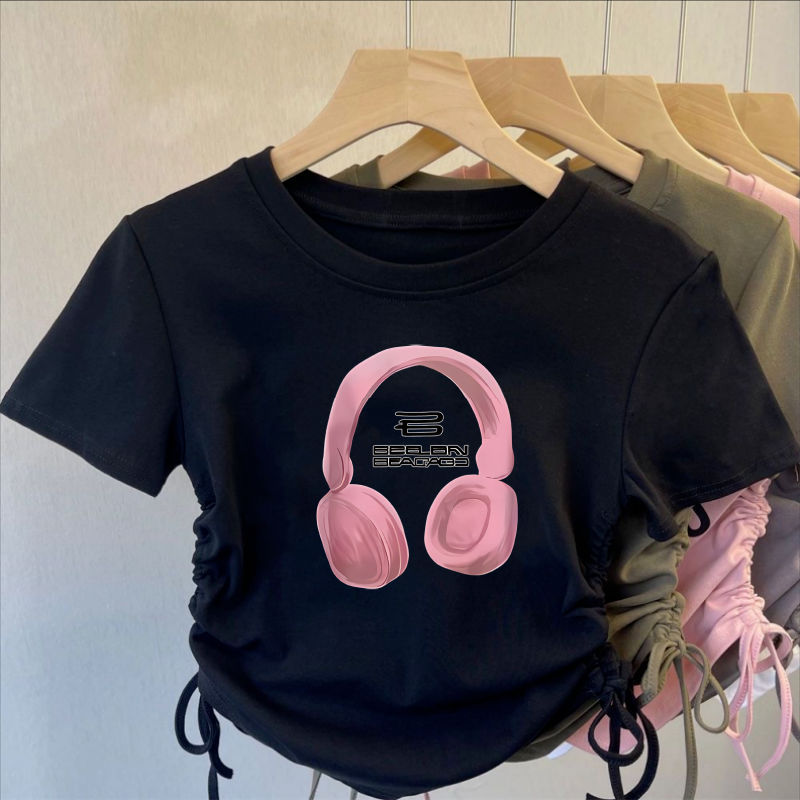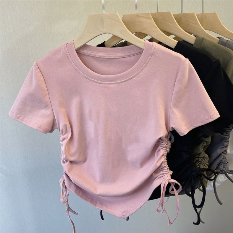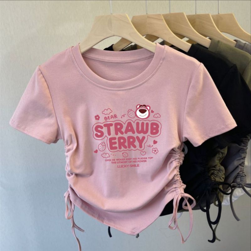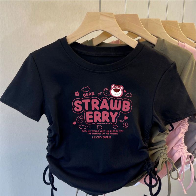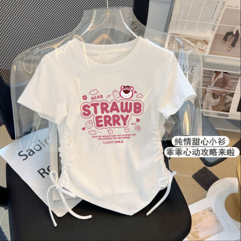 아이스 실크 실 한국 아동복 소녀 여름 만화 패션 간단한 티셔츠 어린이 트렌드 drawstring 짧은 소매 탑