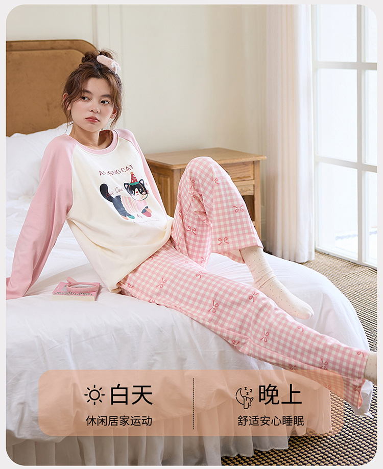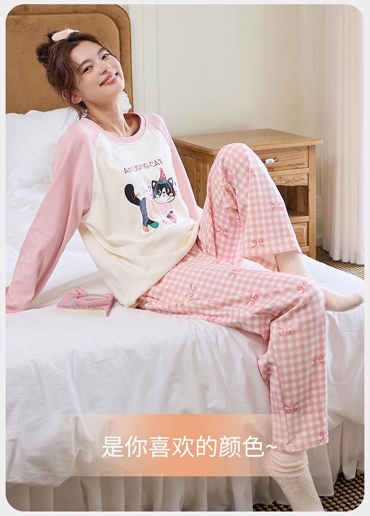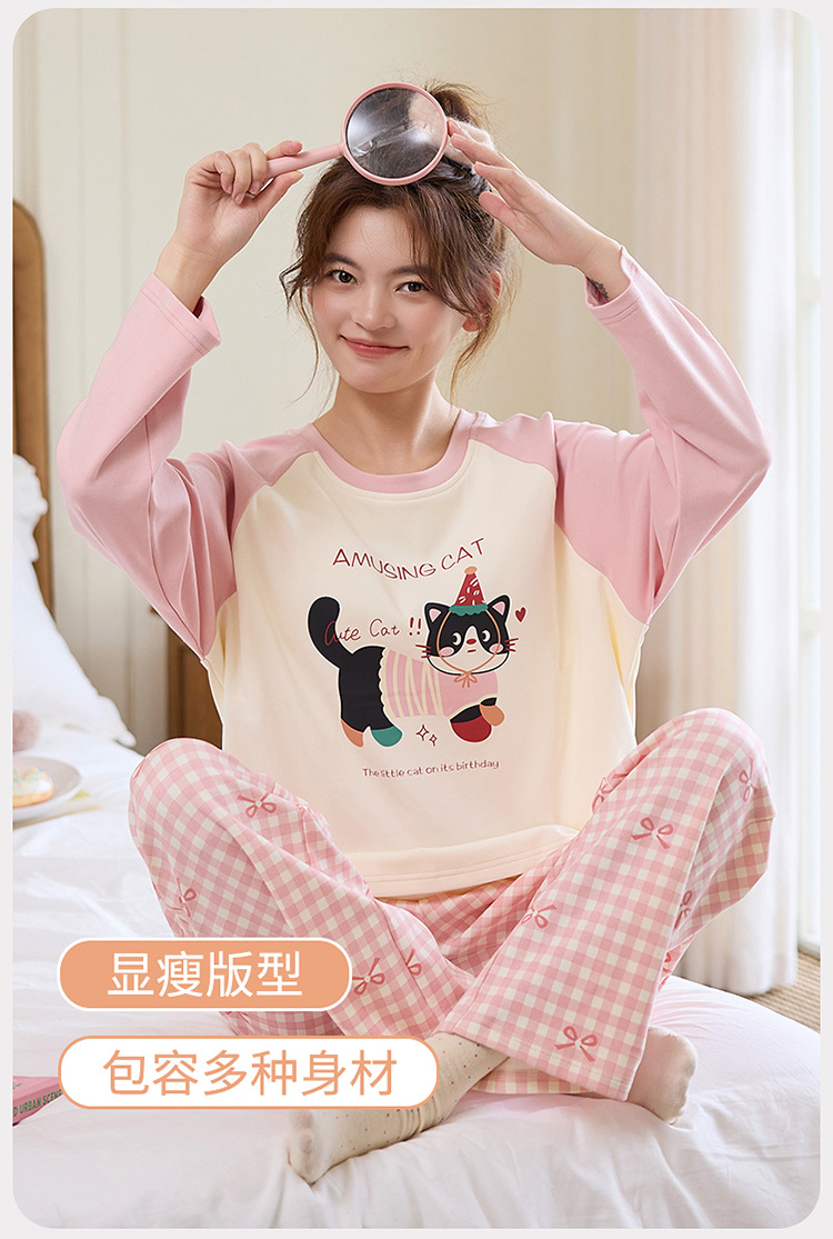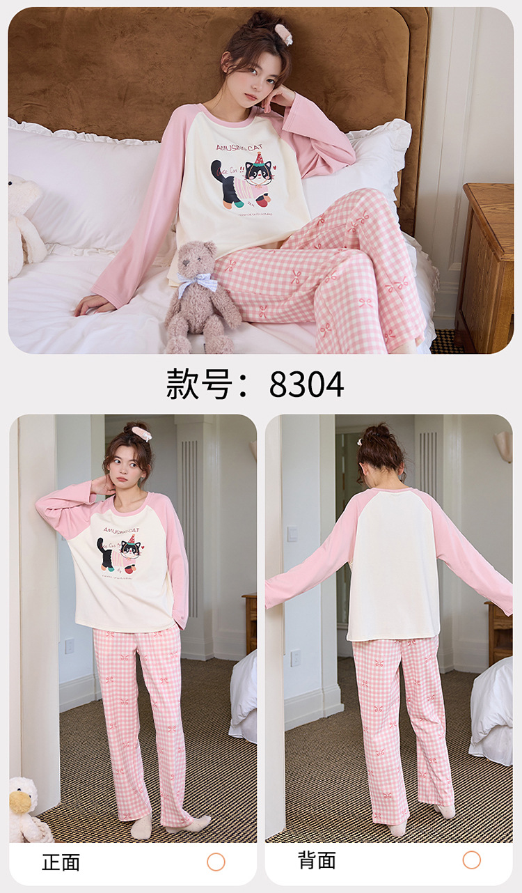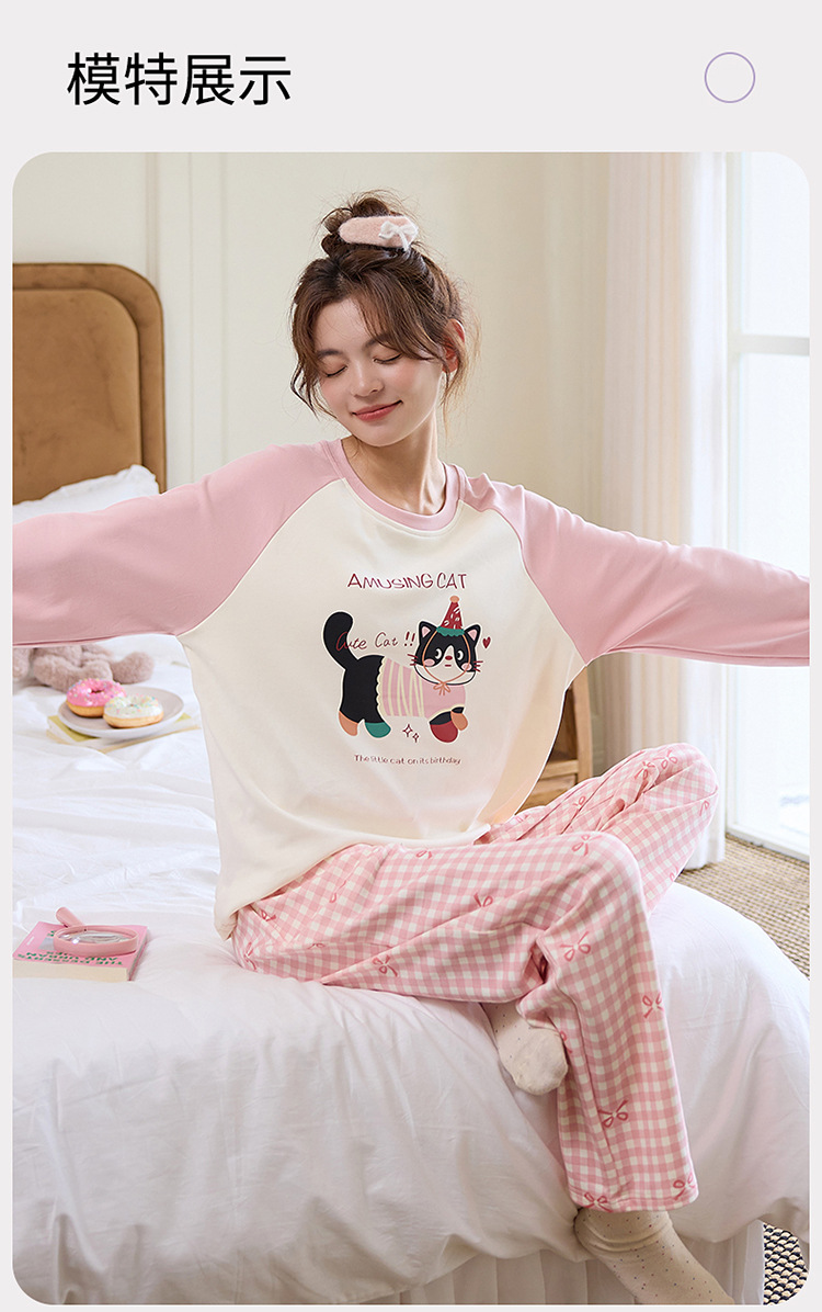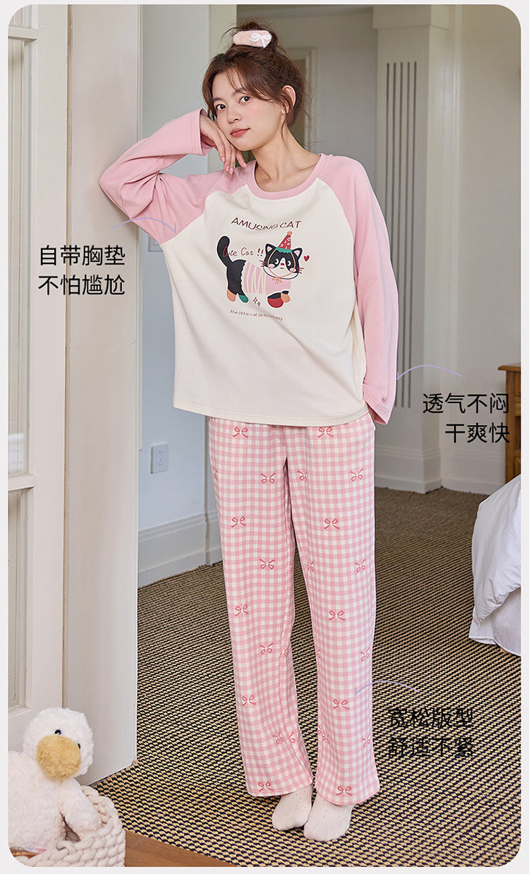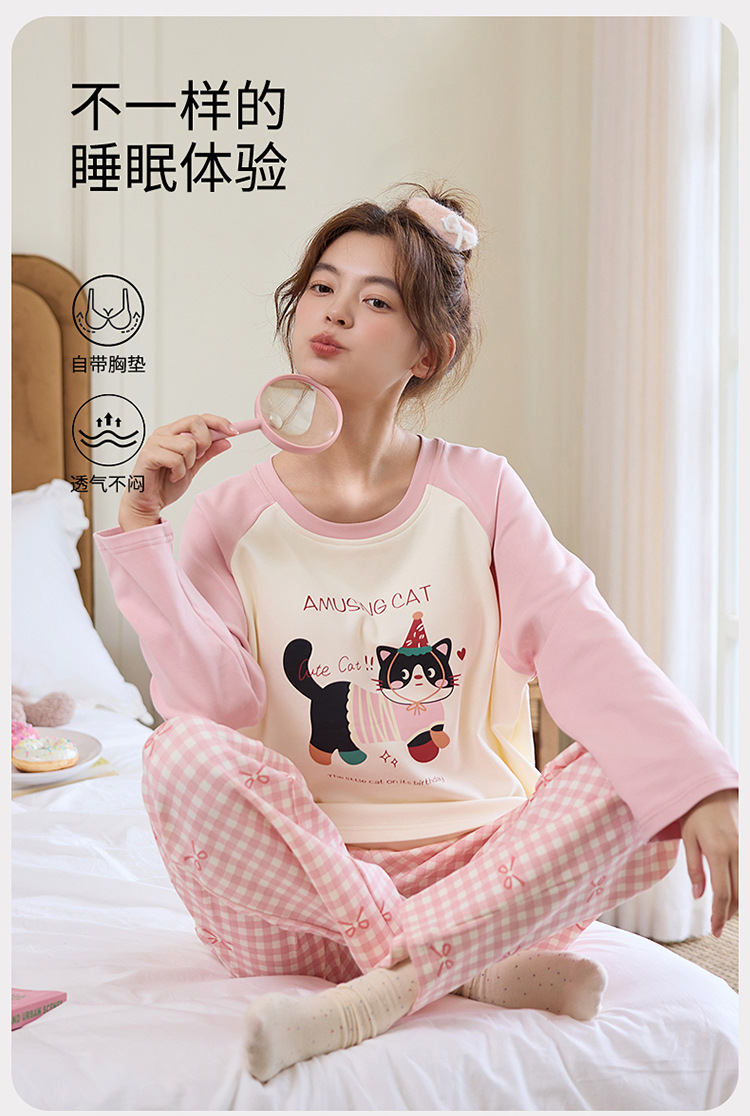 새로운 스타일 잠옷 여성용 긴 소매 가슴 패드 가을 세트 느슨한 달콤한 귀여운 만화 여성의 집 옷스토어 가기