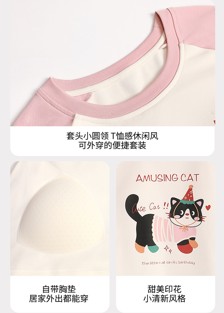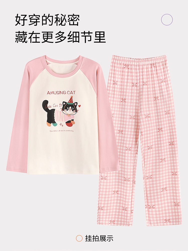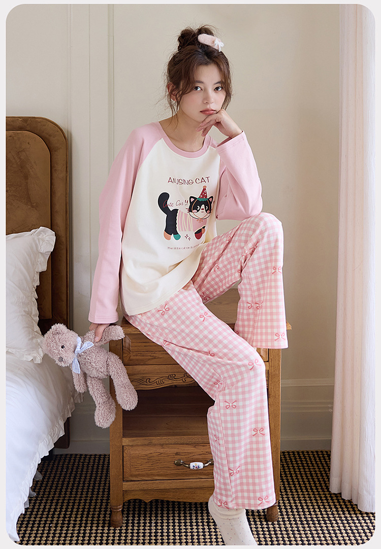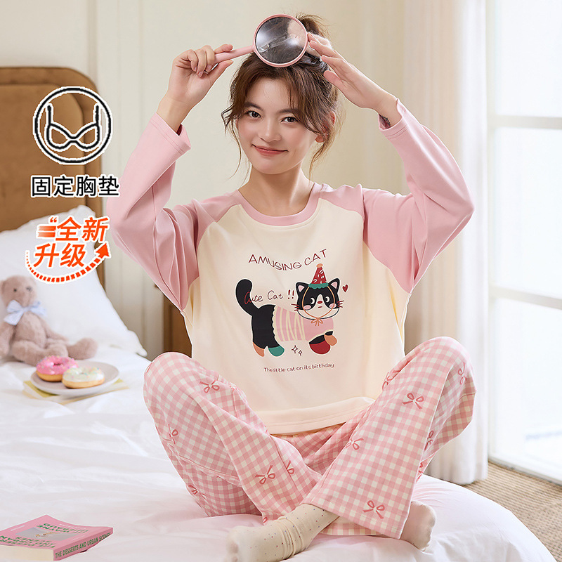 새로운 스타일 잠옷 여성용 긴 소매 가슴 패드 가을 세트 느슨한 달콤한 귀여운 만화 여성의 집 옷