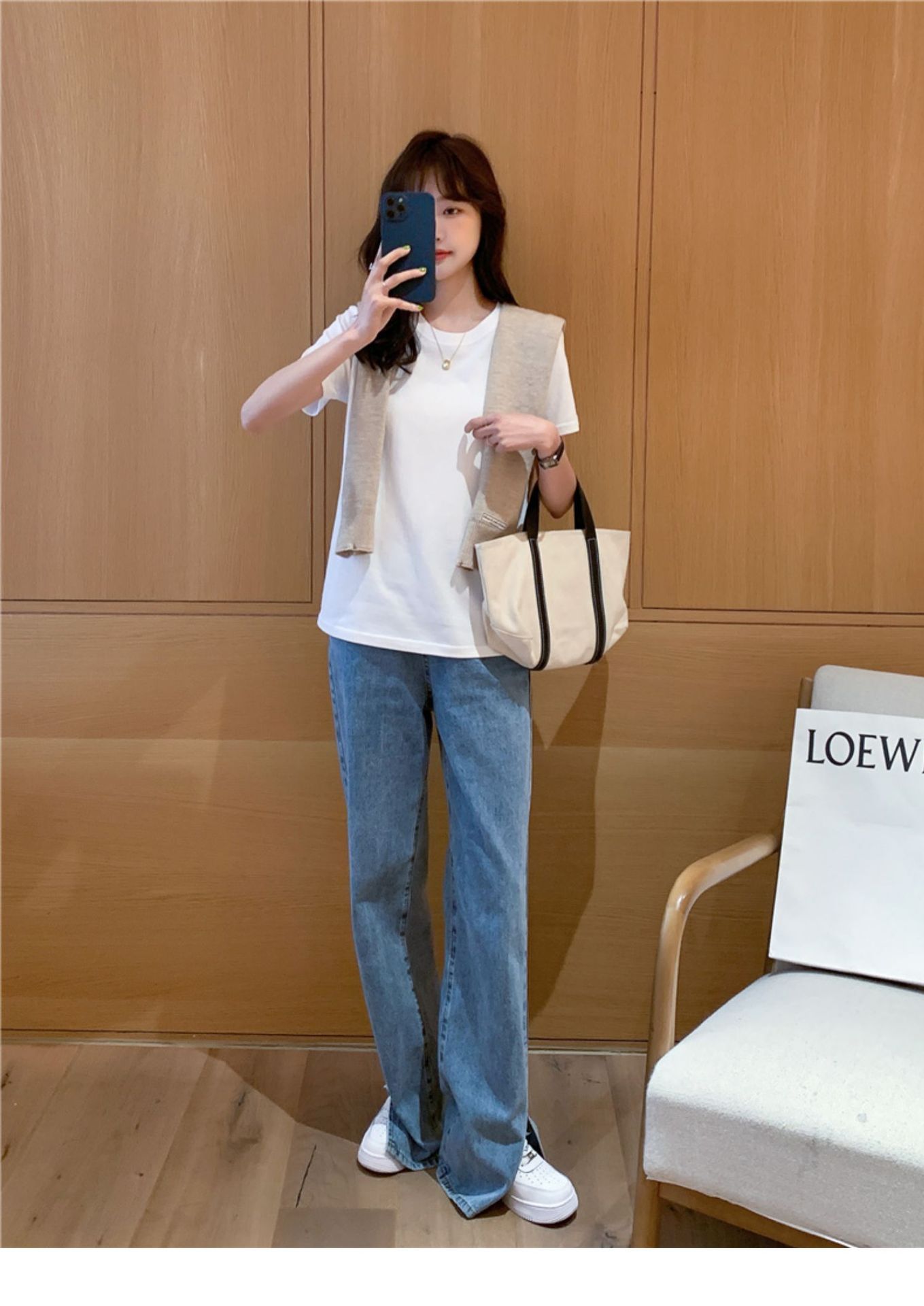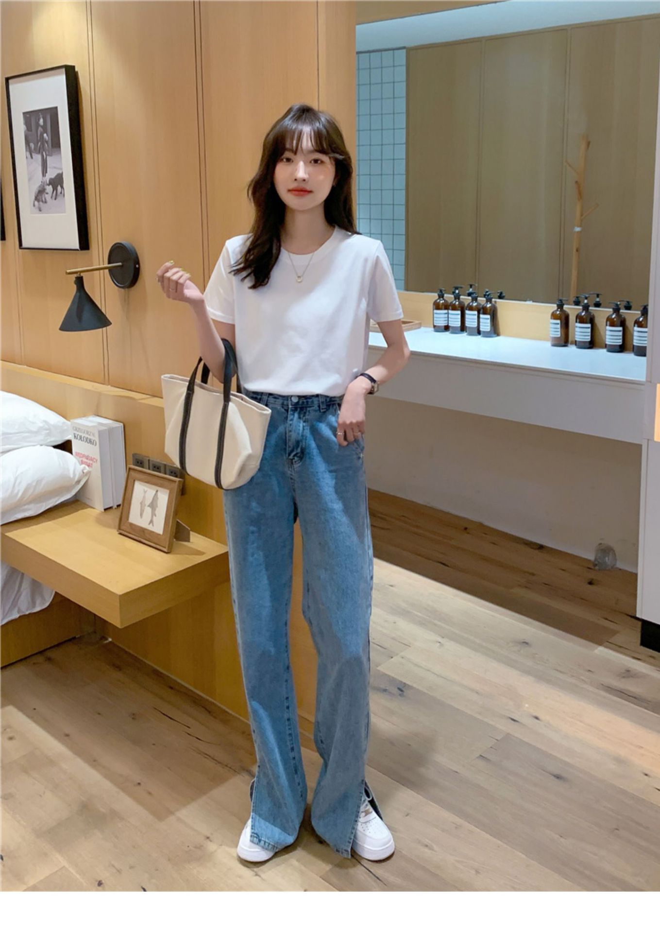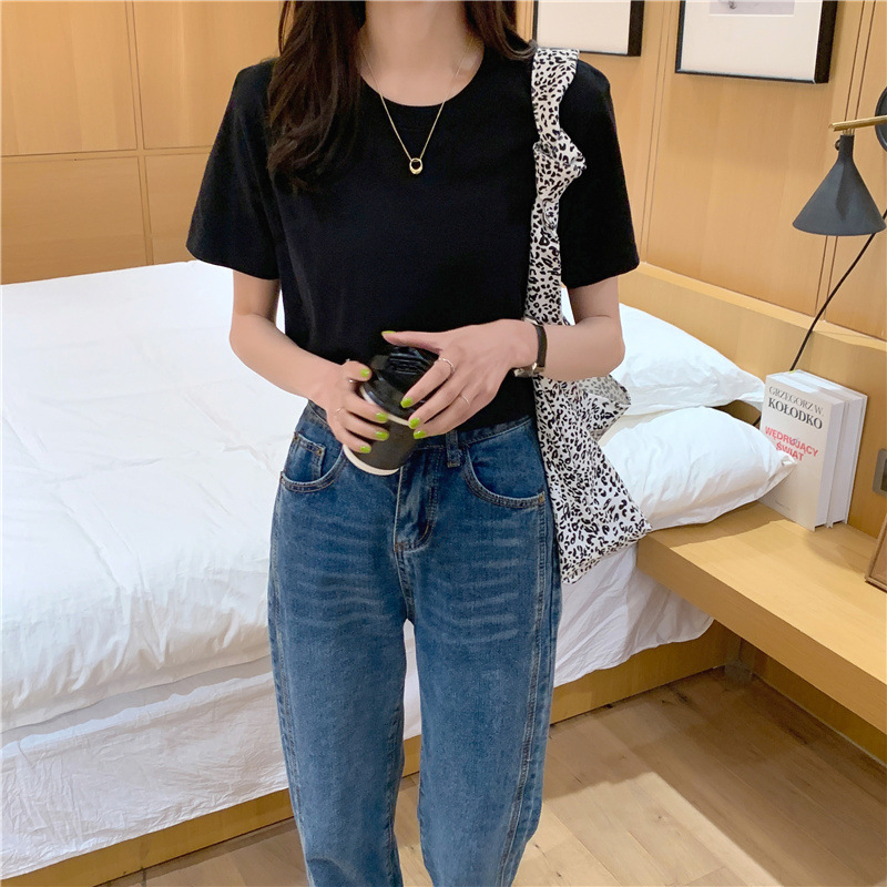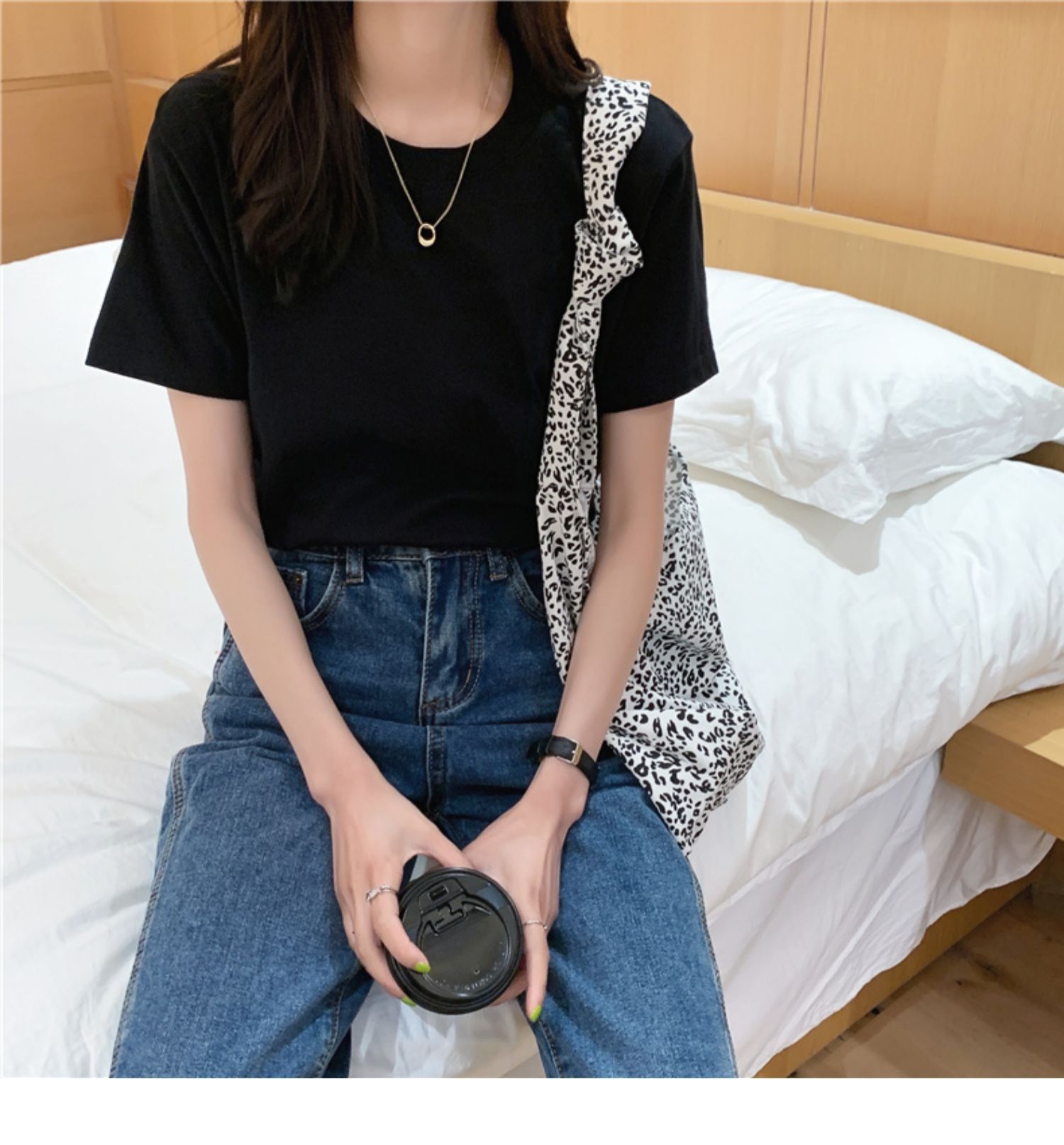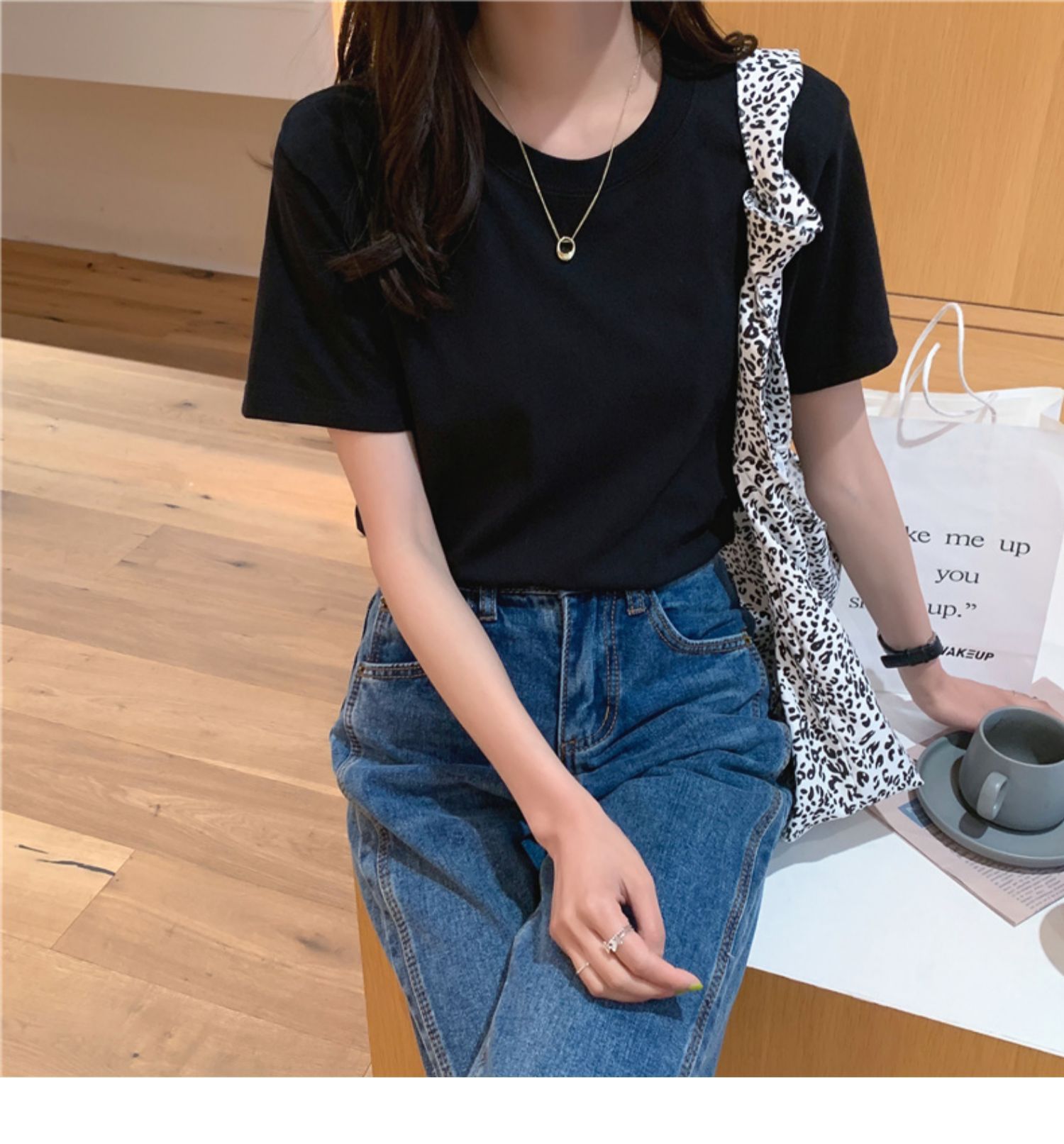 어깨 흰색 반팔 티셔츠 여성용 여름 얇은 느슨한 단색 기본 단순 슬리밍 코튼 탑스토어 가기