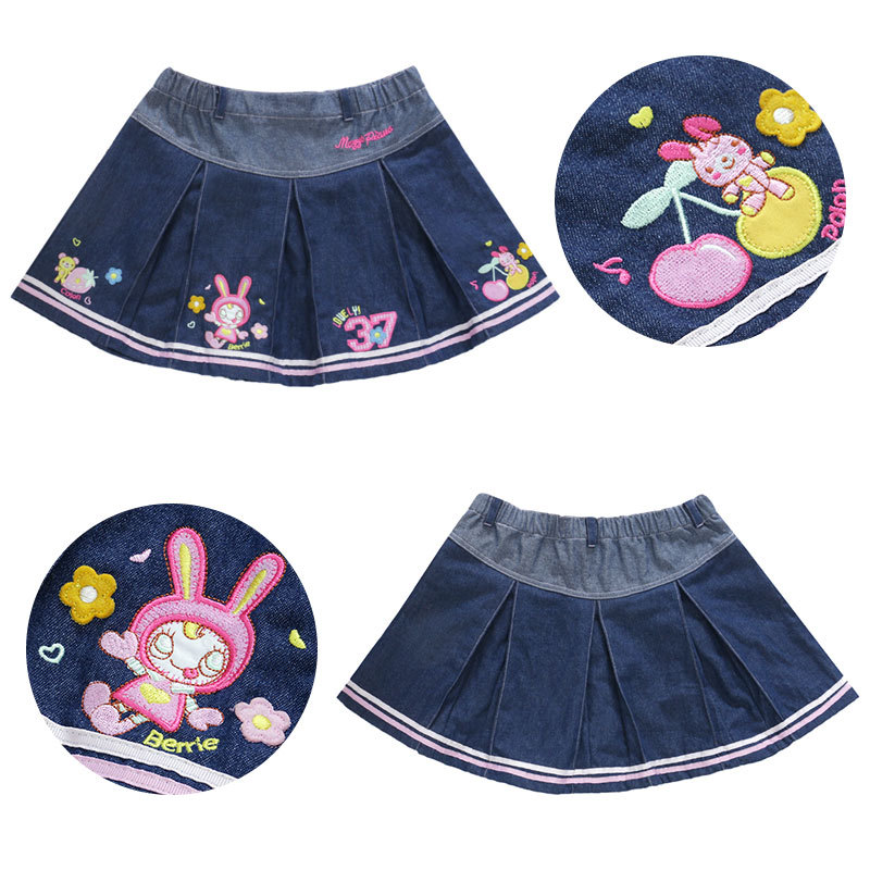 Spot 피아니스트 mp 귀여운 부드러운 소녀 스타일 데님 스커트 달콤한 토끼 자수 주름 스커트 딸 의류 스커트