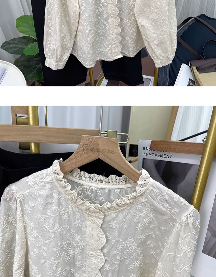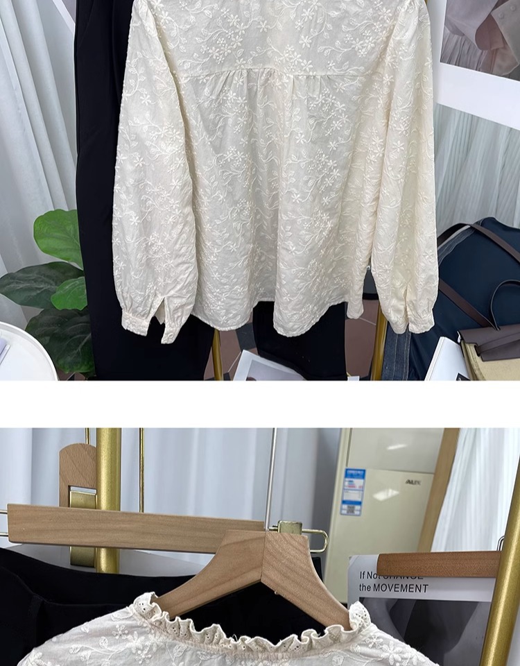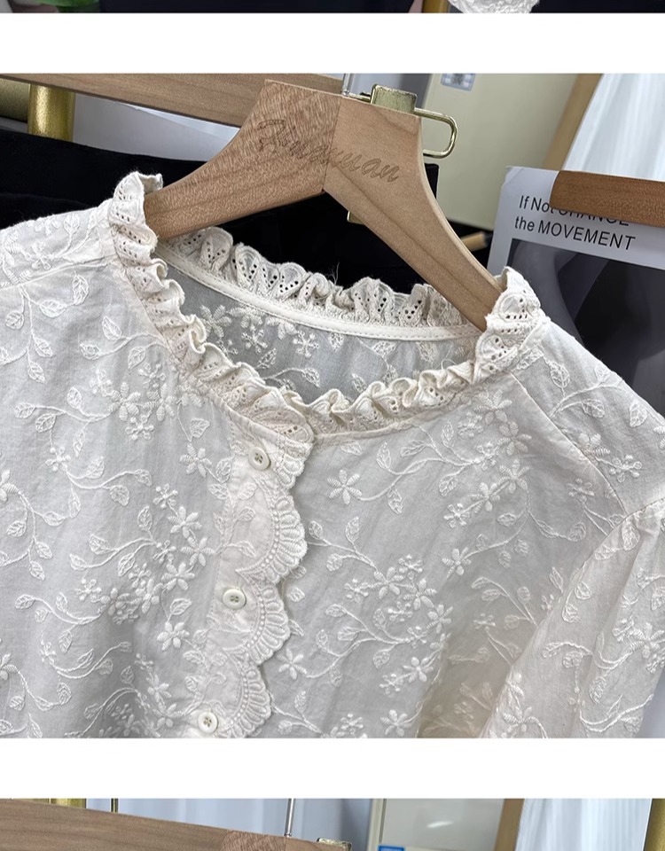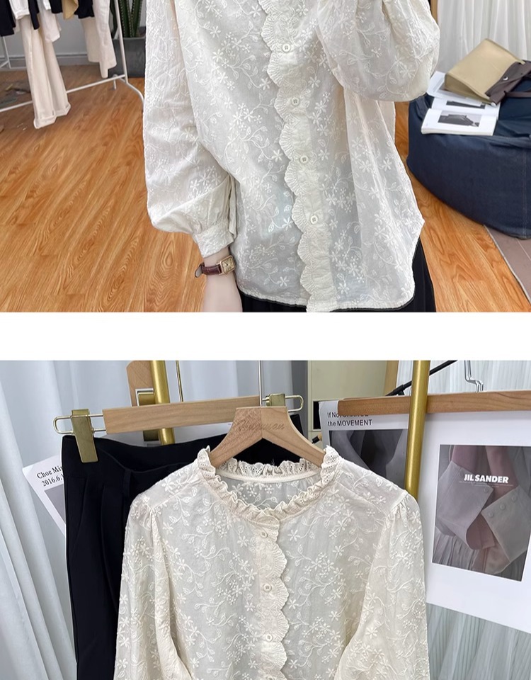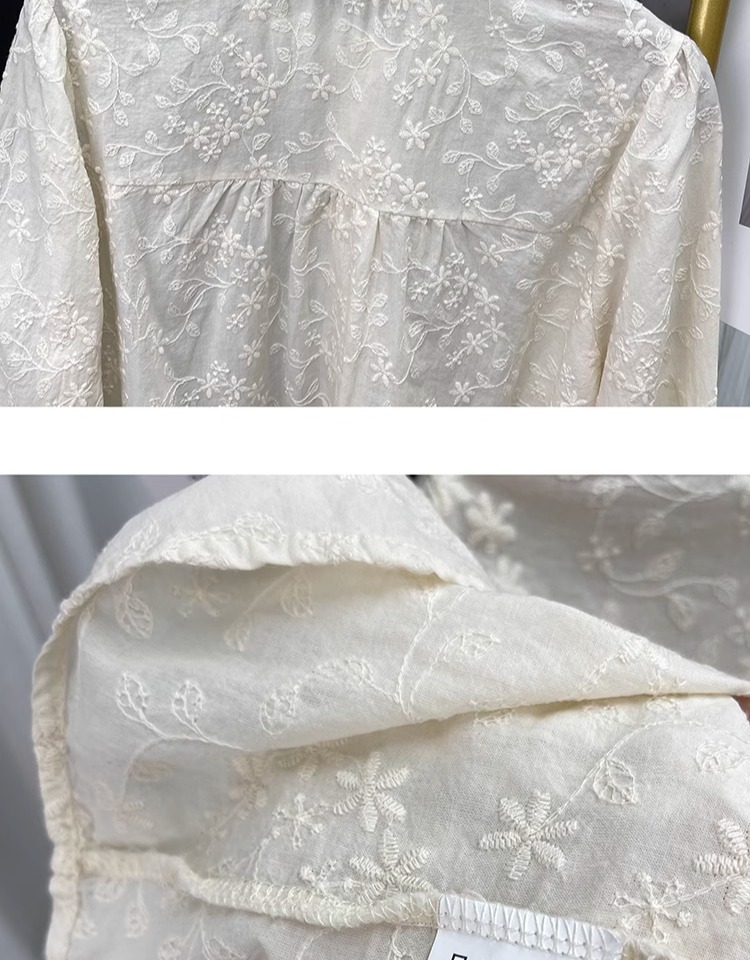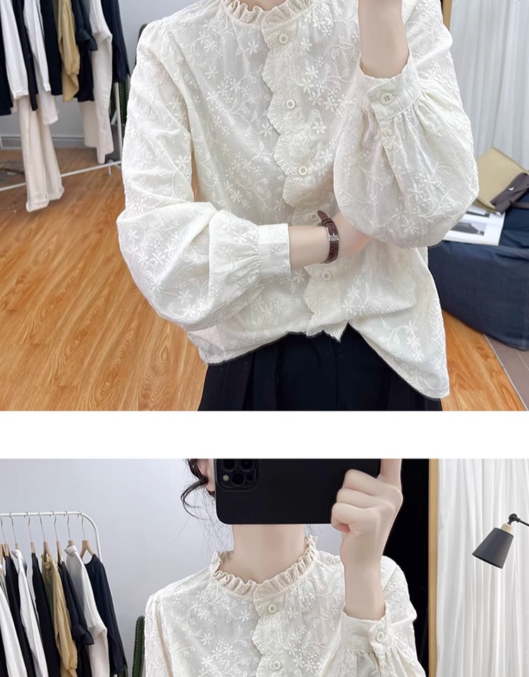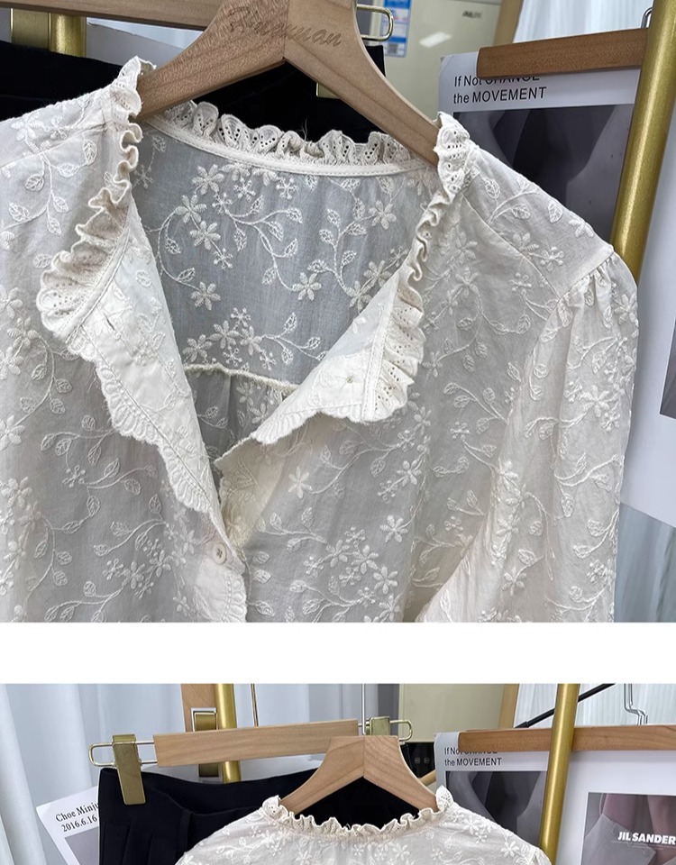 한국 스타일 곰팡이 레이스 칼라 코튼 레이스 자수 긴 소매 셔츠 여성의 2025 봄 셔츠 하이 퀄리티 탑