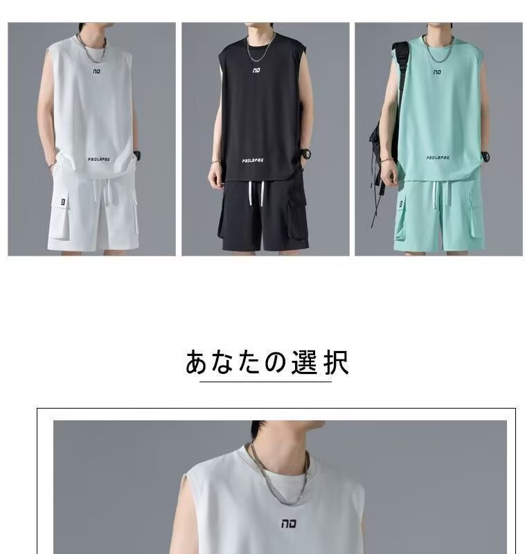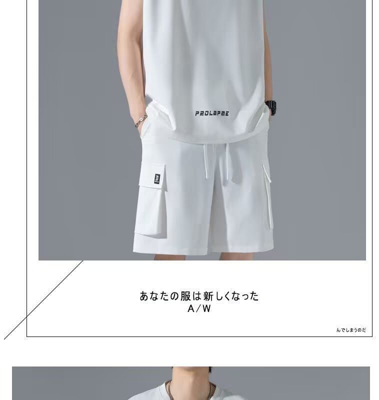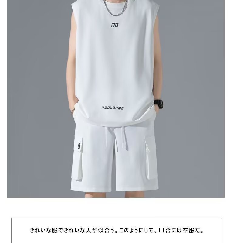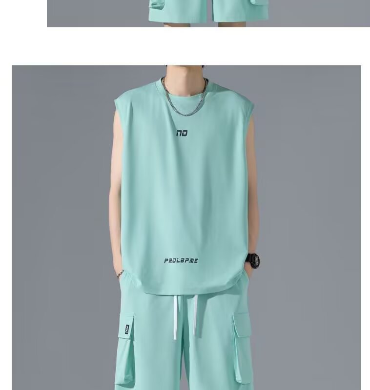 셔츠 덜 의류 운동복 세트 남자 여름 민소매 티셔츠 농구 저지 한국 유행 캐주얼 반바지 투피스 세트
