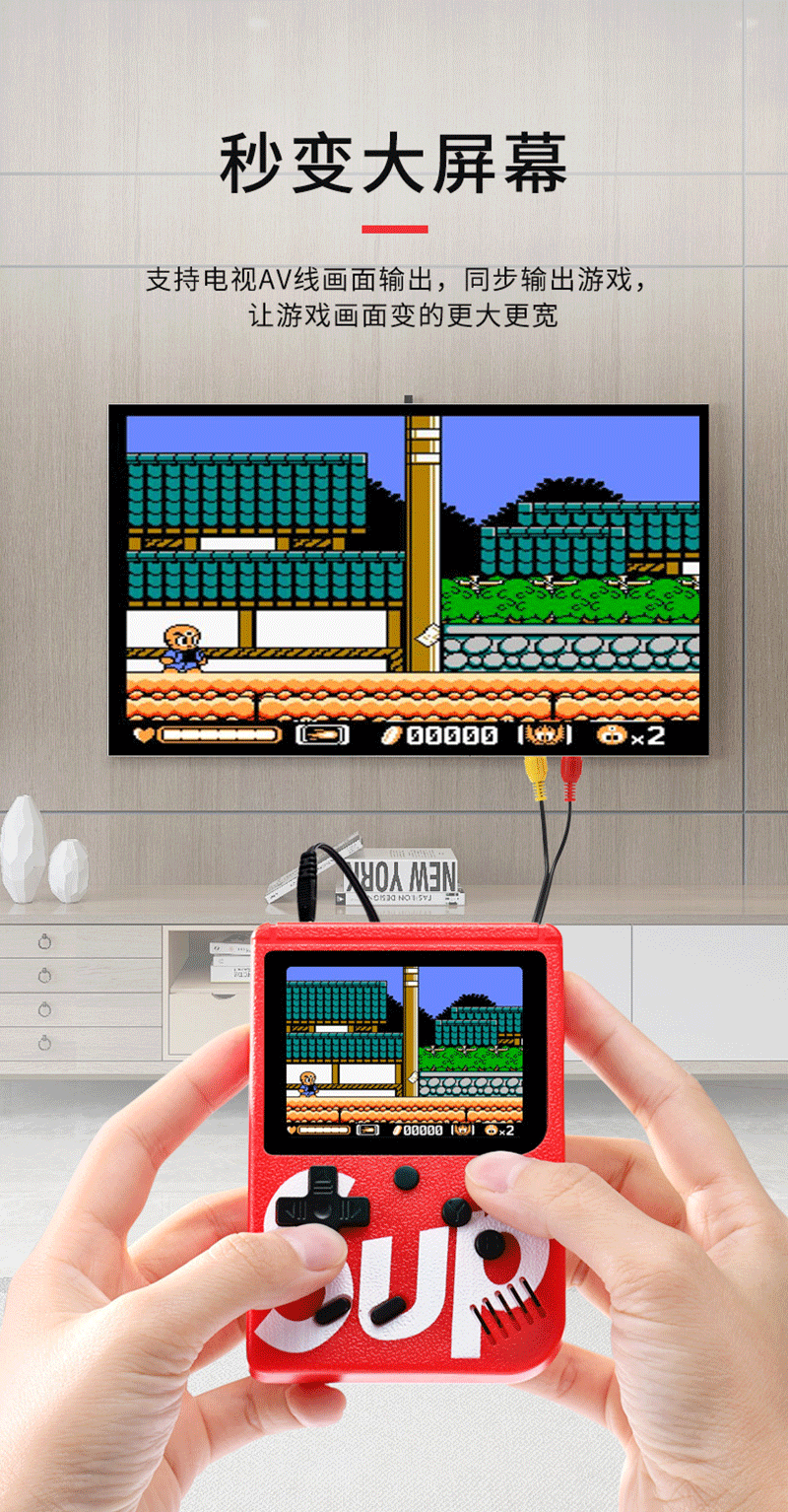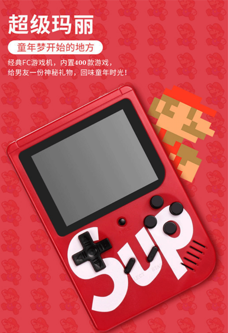 SUP 휴대용 레트로 게임기, 옛날 추억의 슈퍼 마리오 400가지 게임이 하나로! 싱글 플레이어용 클래식 게임, 해외 직구 가능스토어 가기
