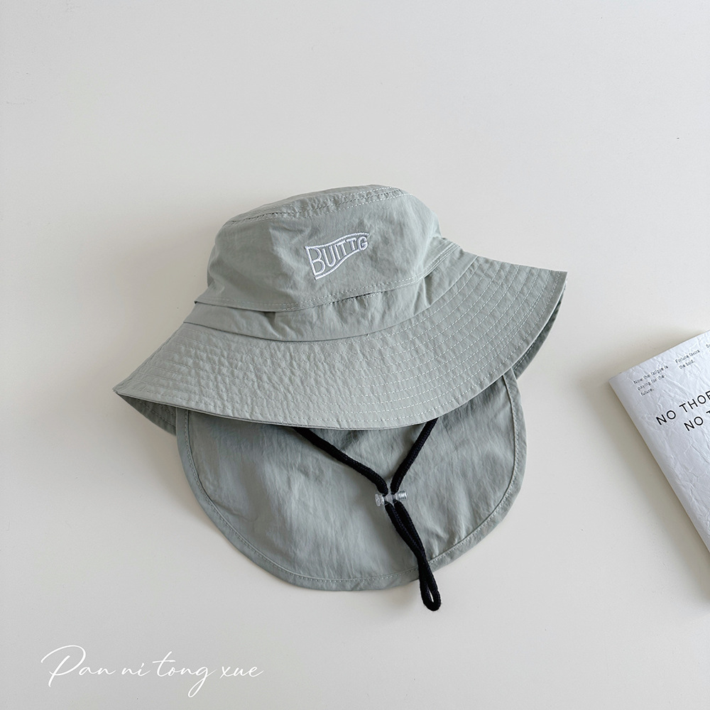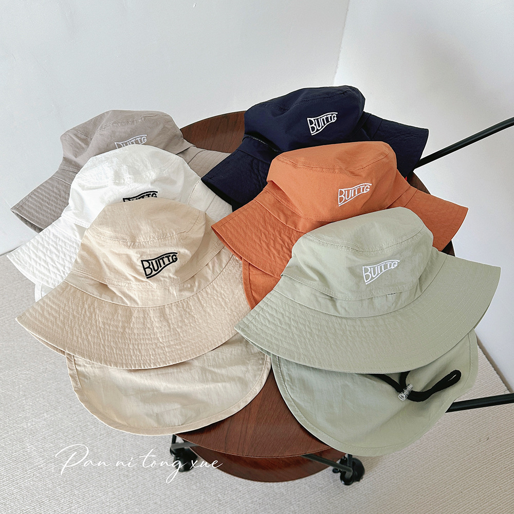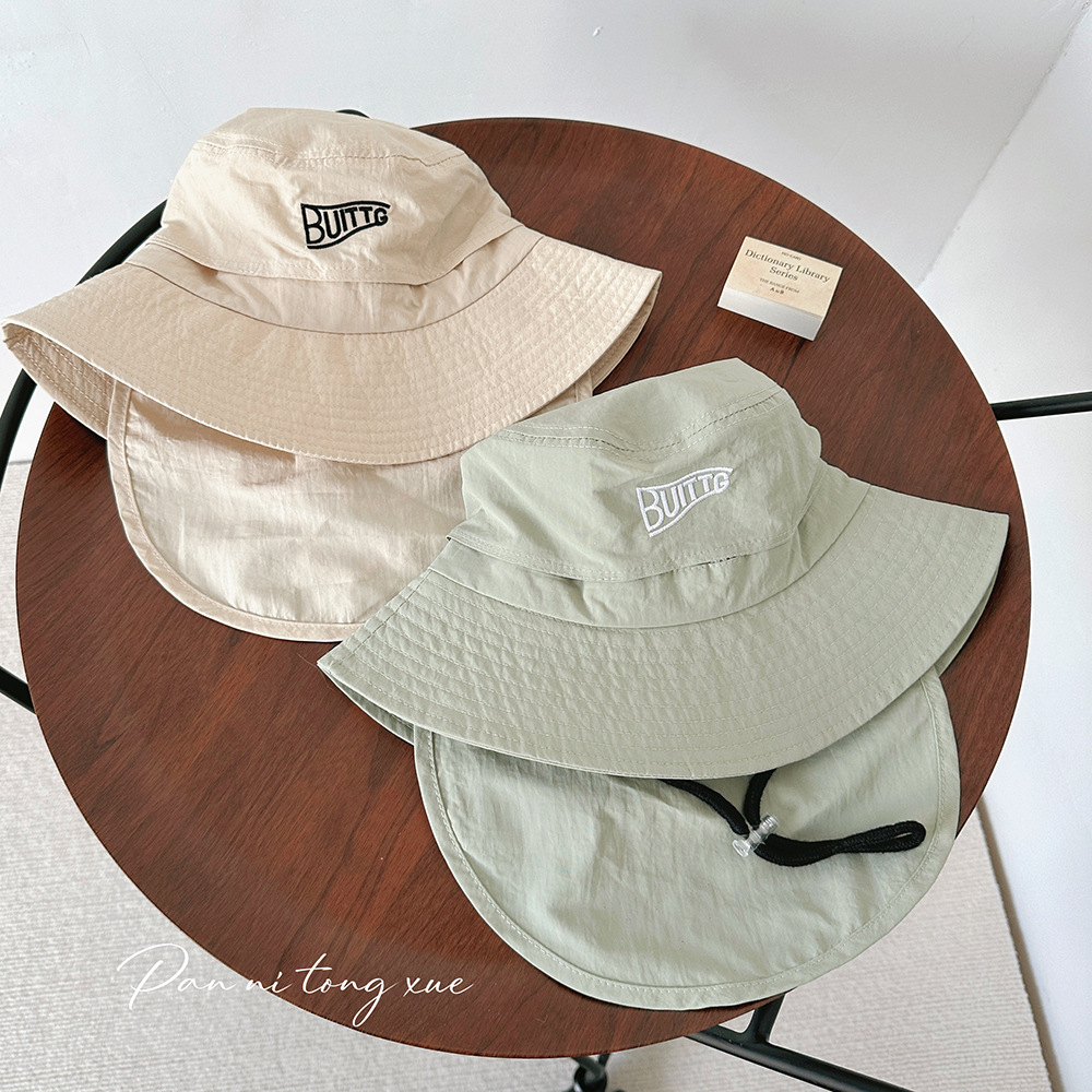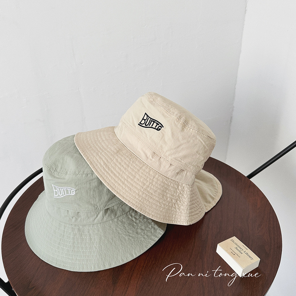 한국식 캐주얼 편지 어린이 어부 모자 봄과 여름 소년 소녀를위한 얇은 목도리 모자 선 스크린 빠른 건조 양산 모자 트렌디스토어 가기