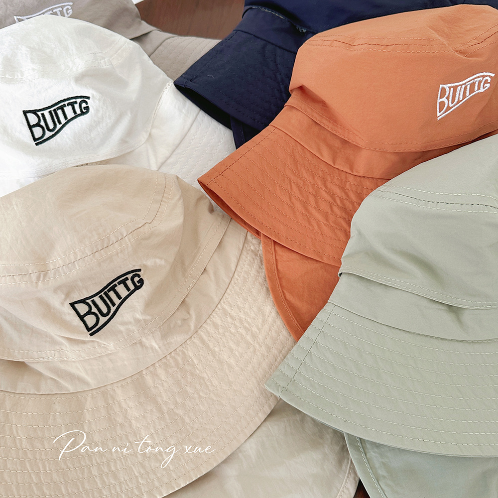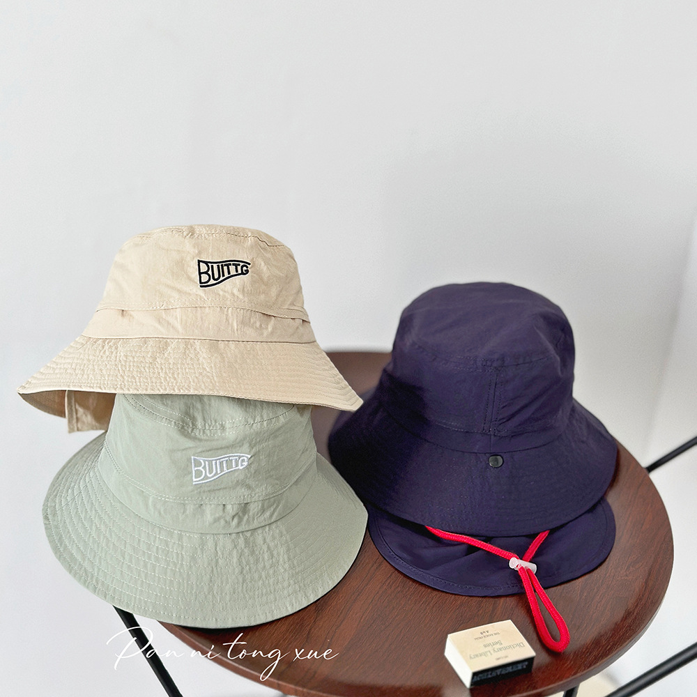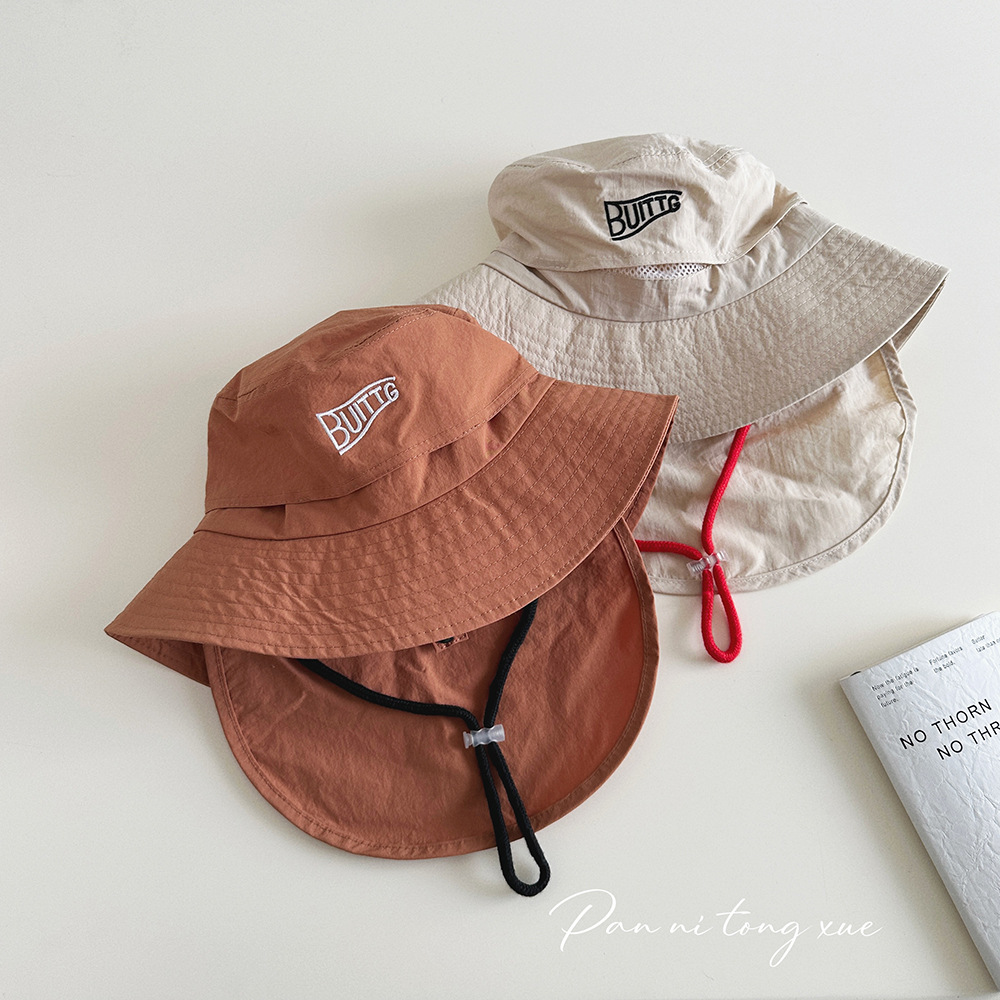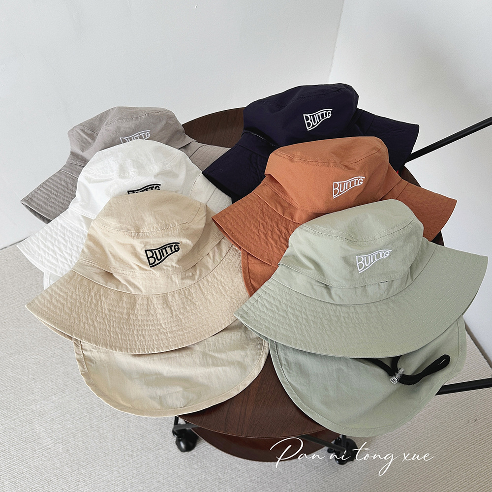 한국식 캐주얼 편지 어린이 어부 모자 봄과 여름 소년 소녀를위한 얇은 목도리 모자 선 스크린 빠른 건조 양산 모자 트렌디스토어 가기