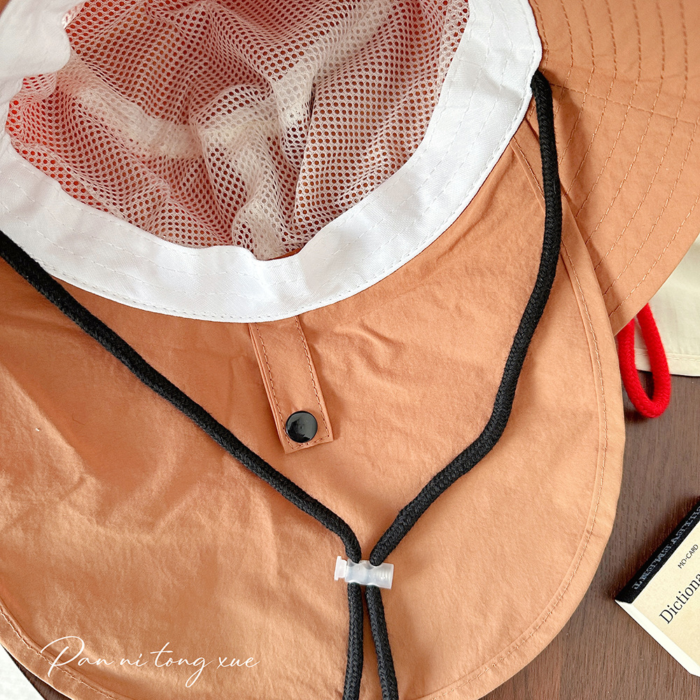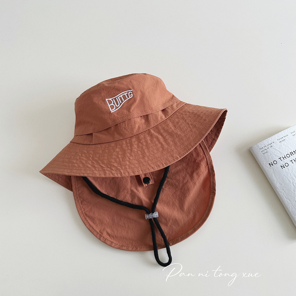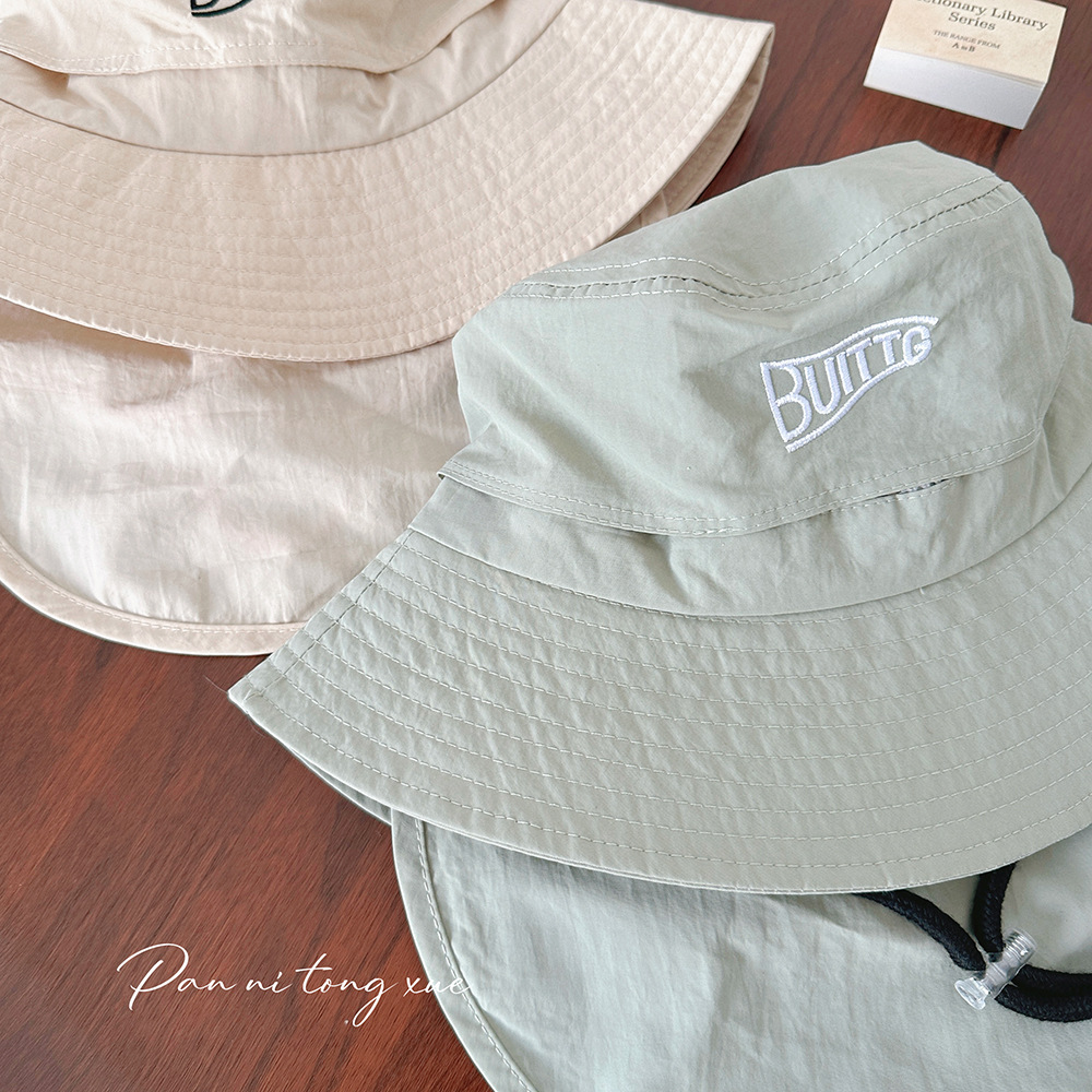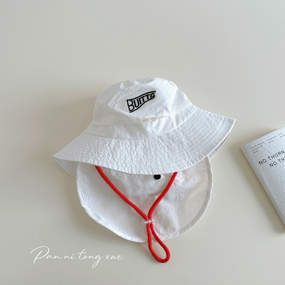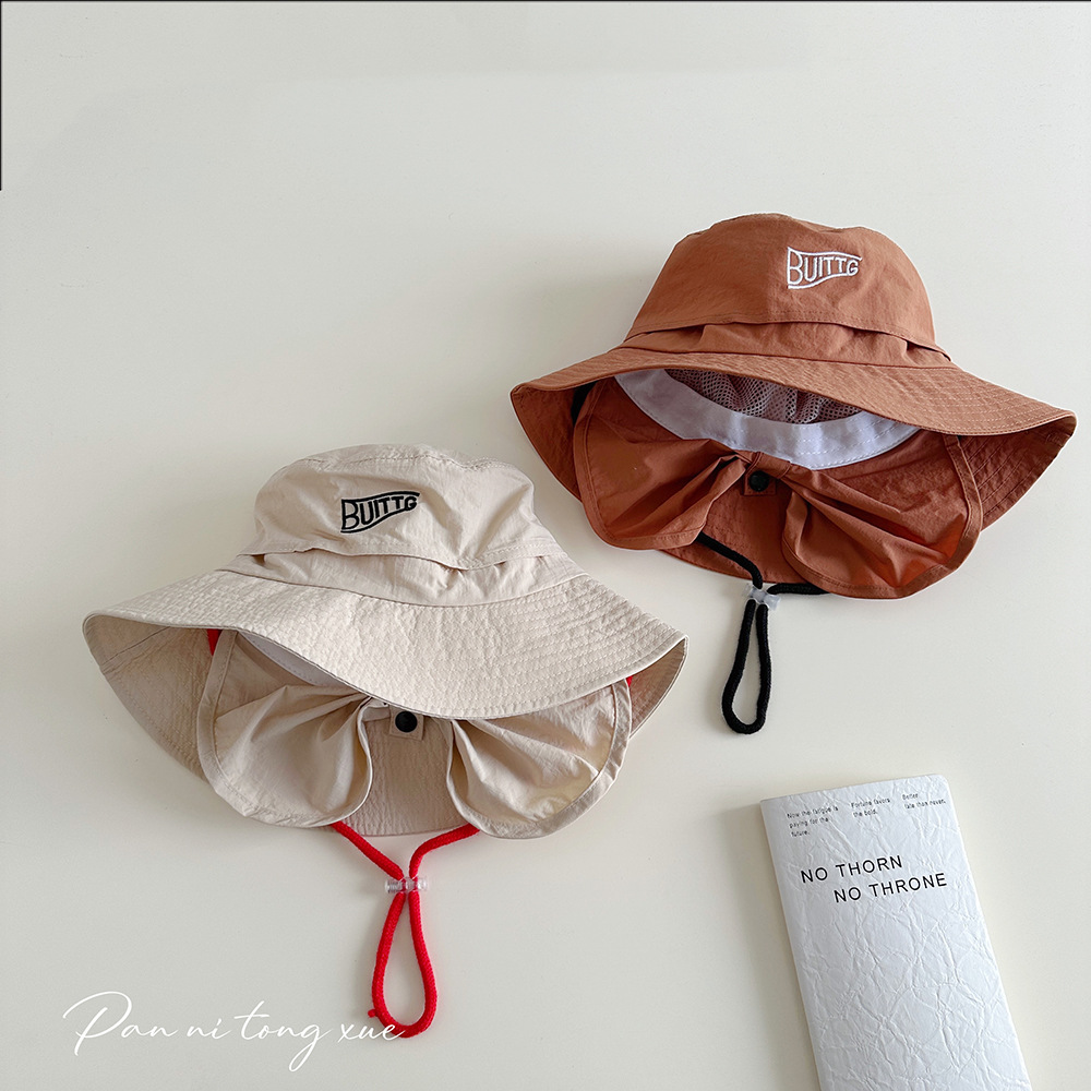 한국식 캐주얼 편지 어린이 어부 모자 봄과 여름 소년 소녀를위한 얇은 목도리 모자 선 스크린 빠른 건조 양산 모자 트렌디