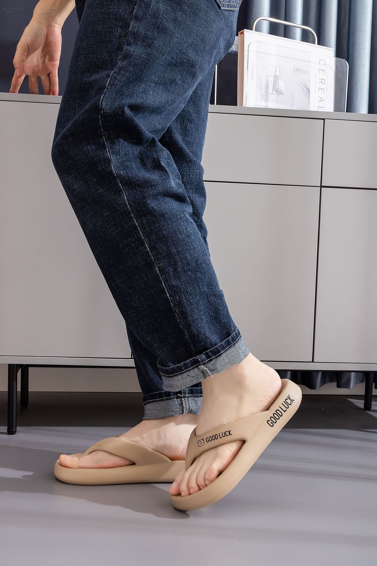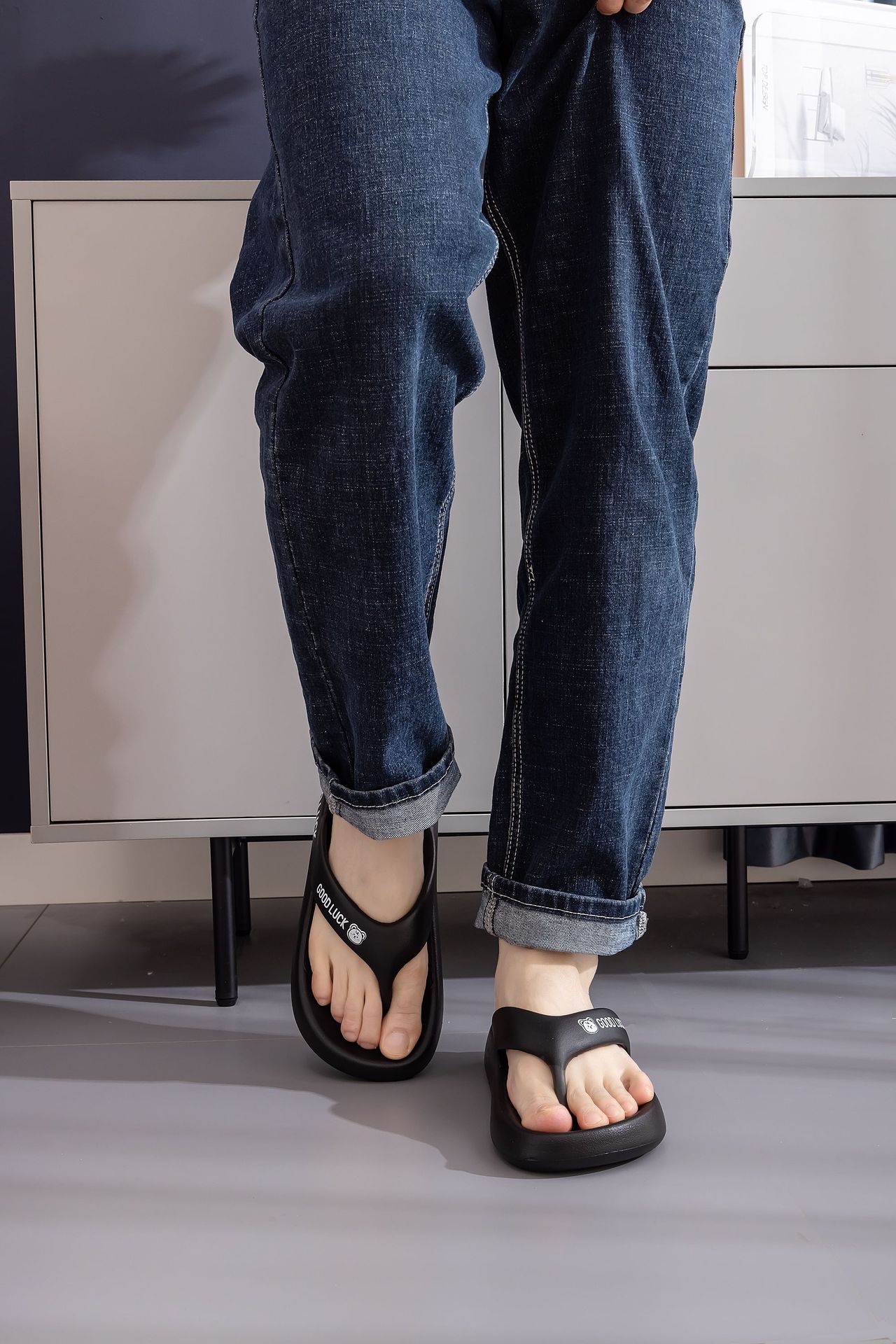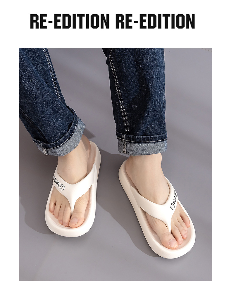 야외 착용을위한 하이 엔드 여성 플립 플롭 2025 년 새로운 미끄럼 방지 두꺼운 바닥 클립 피트 패션 부드러운 바닥 비치 드래그 7168B스토어 가기