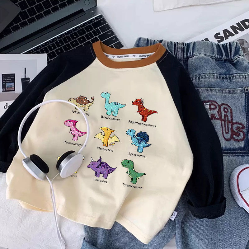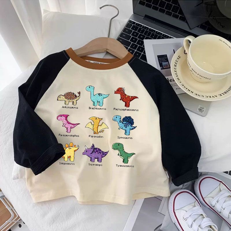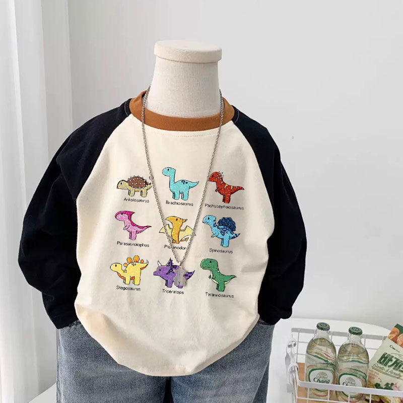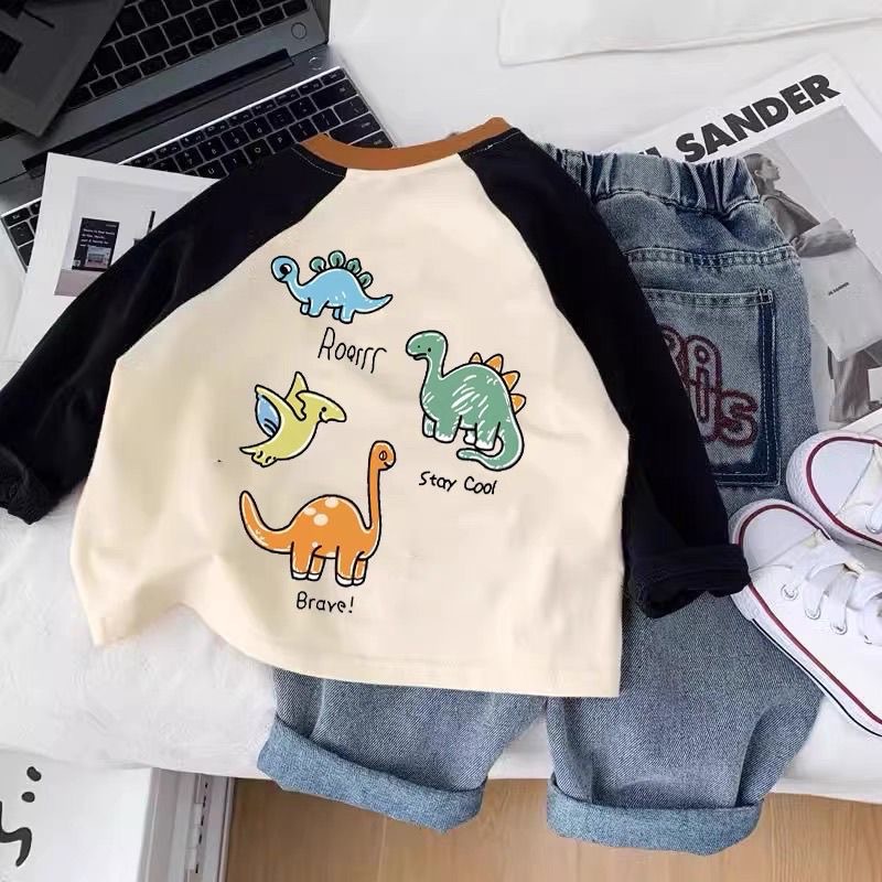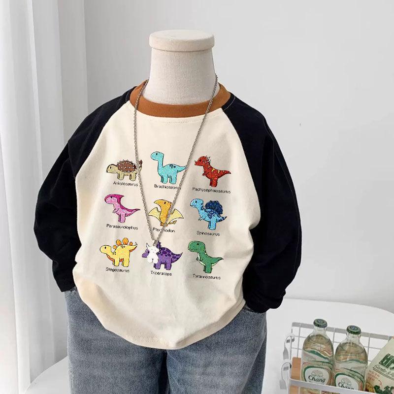 소년과 소녀 만화 인쇄 된 어린이 캐주얼 라글란 소매 긴팔 기본 셔츠 티셔츠 봄과 가을 올 매치 탑 유행 셔츠스토어 가기