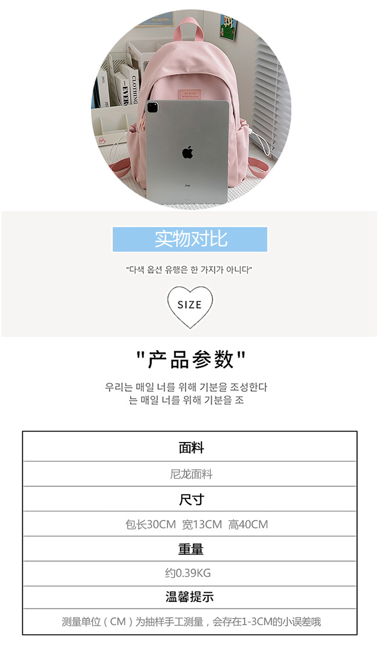 모리 백팩 여자 고등학생 스쿨백 심플 올 매치 인즈 캠퍼스 스터디 백팩
