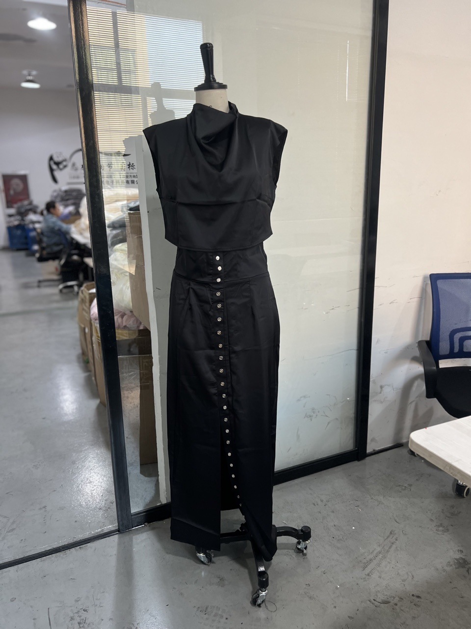 유럽과 미국의 국경 2025 봄과 여름 여성 패션 캐주얼 세트 우아한 가슴 최고 치마 세트 여성스토어 가기