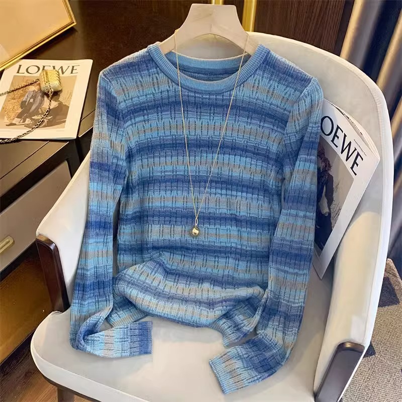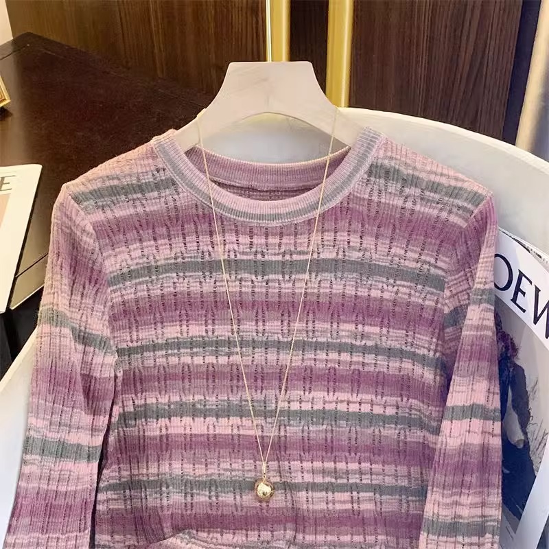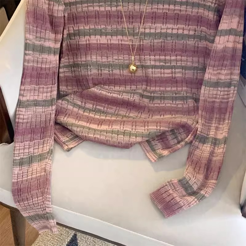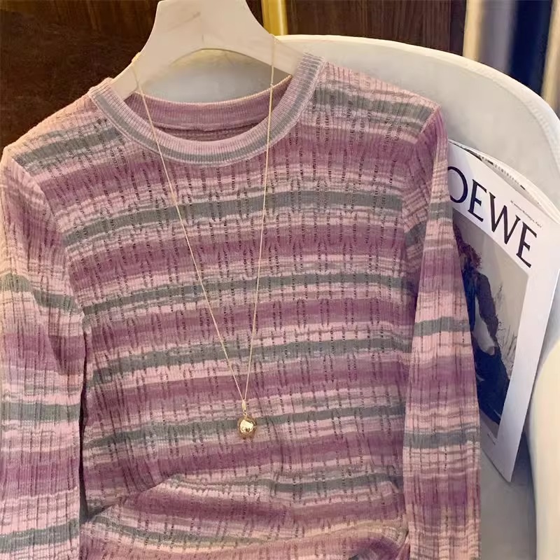 레이스업 디테일 스트라이프 부드러운 니트 스웨터 여성용 2026 봄 부드러운 레트로 디자인 라운드넥 니트웨어 A2950스토어 가기