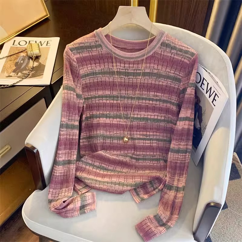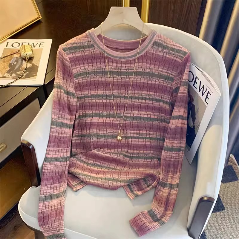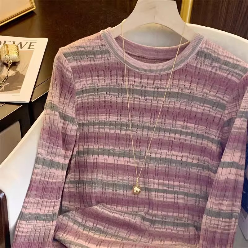 레이스업 디테일 스트라이프 부드러운 니트 스웨터 여성용 2026 봄 부드러운 레트로 디자인 라운드넥 니트웨어 A2950