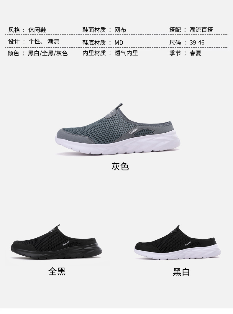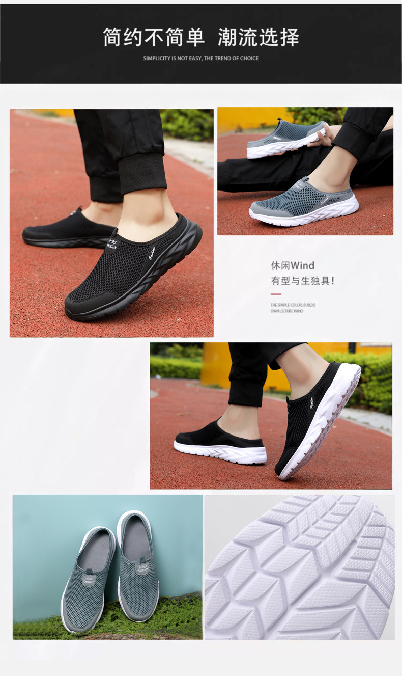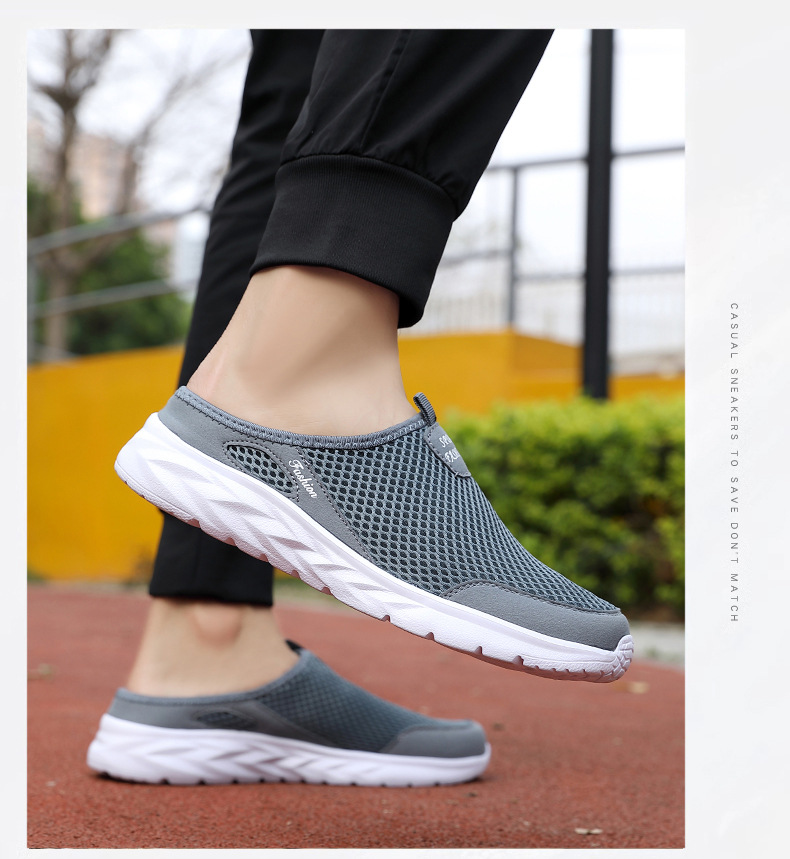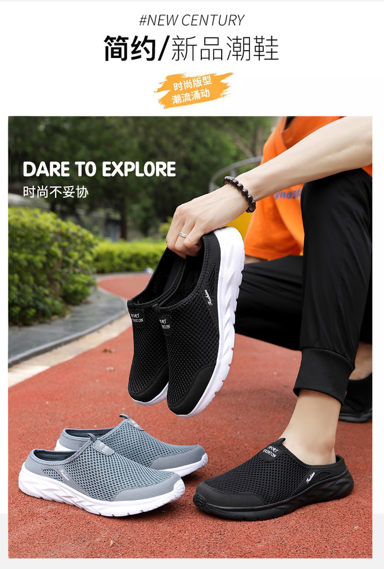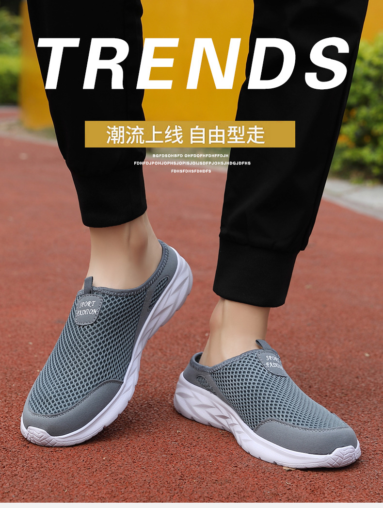 봄과 여름 새로운 캐주얼 스포츠 남성 신발 플러스 사이즈 국경 간 야외 하이킹 게으른 신발 통기성 하프 드래그 메쉬 진강 신발