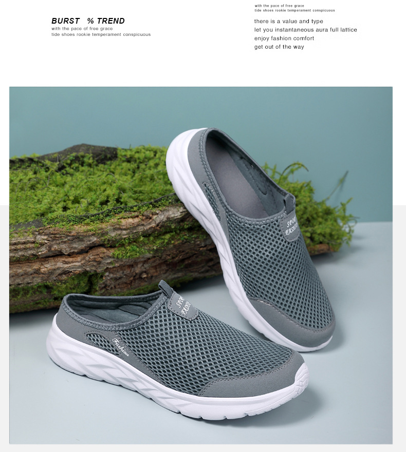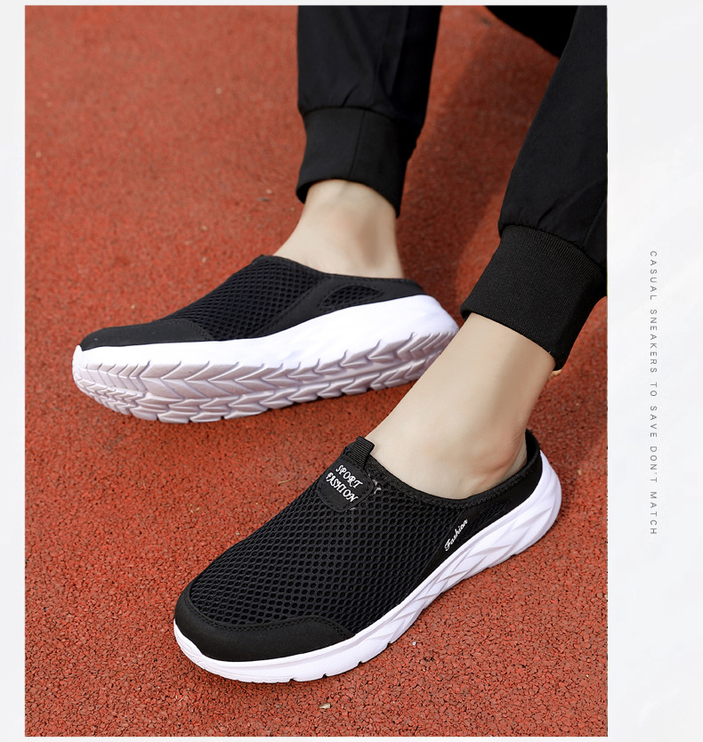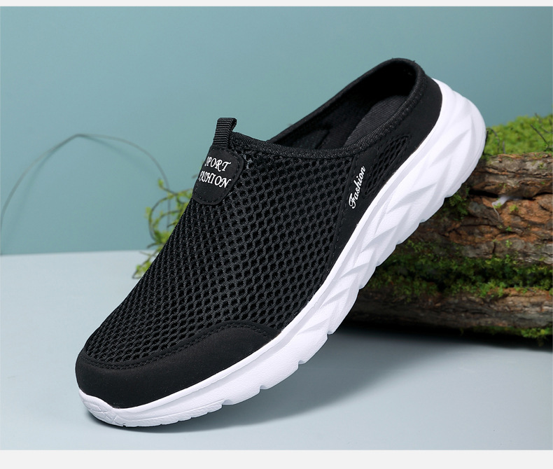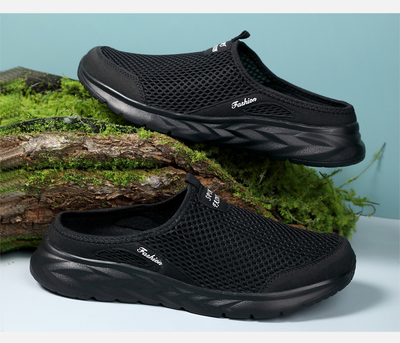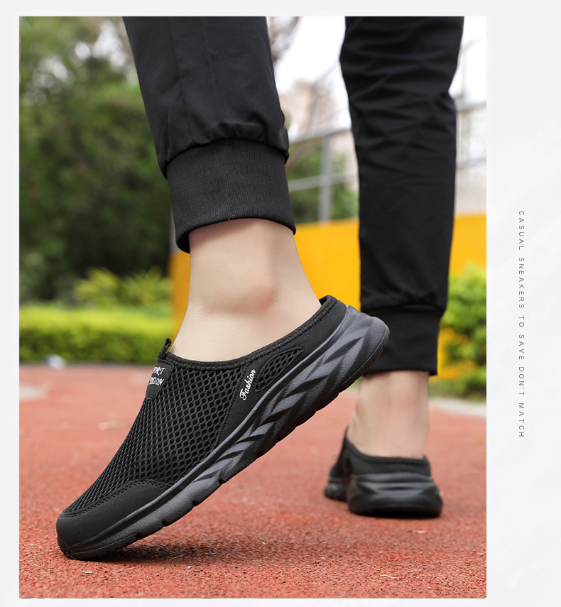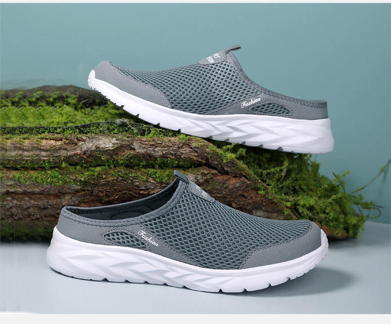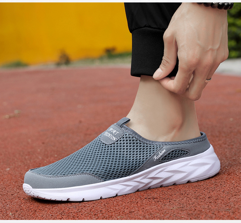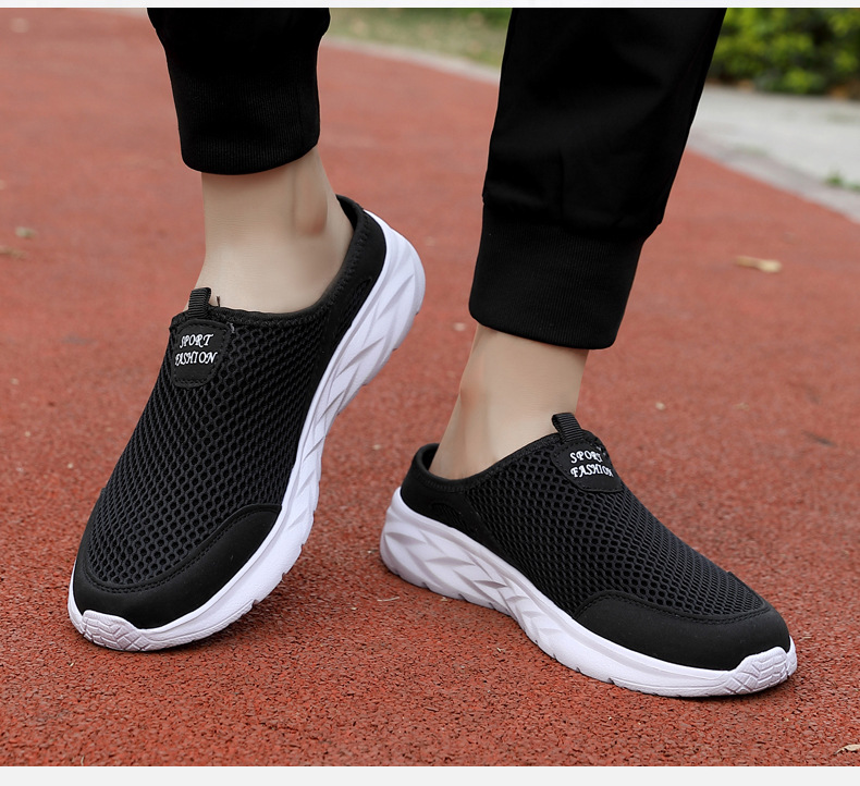 봄과 여름 새로운 캐주얼 스포츠 남성 신발 플러스 사이즈 국경 간 야외 하이킹 게으른 신발 통기성 하프 드래그 메쉬 진강 신발