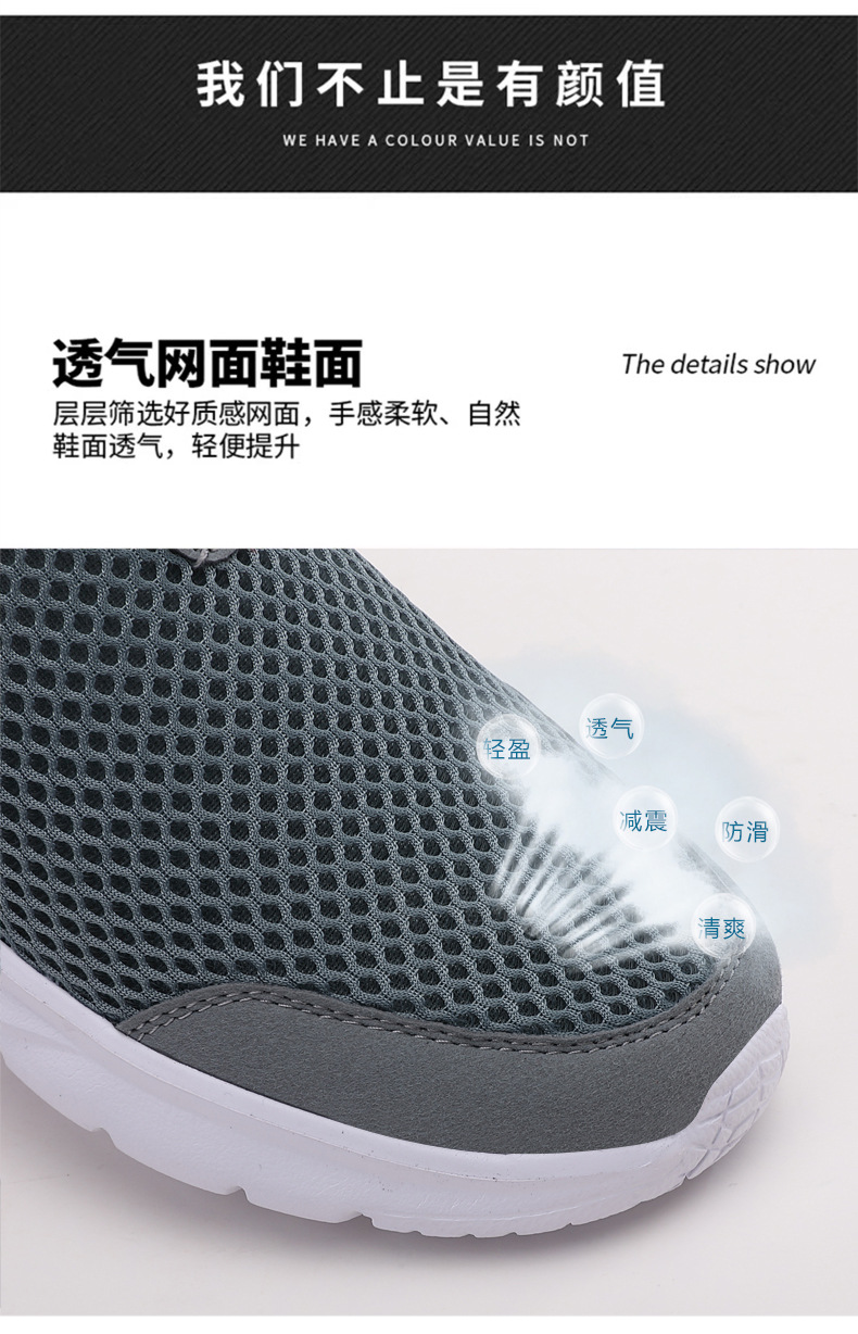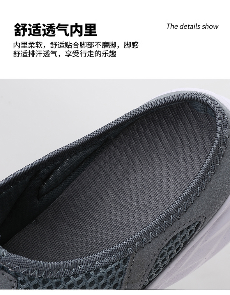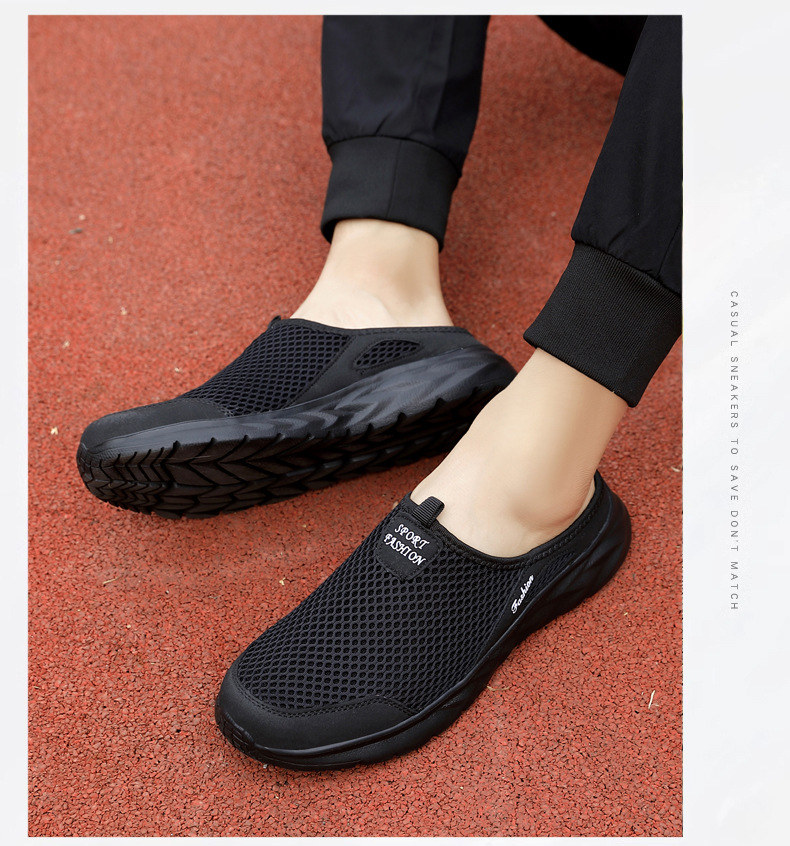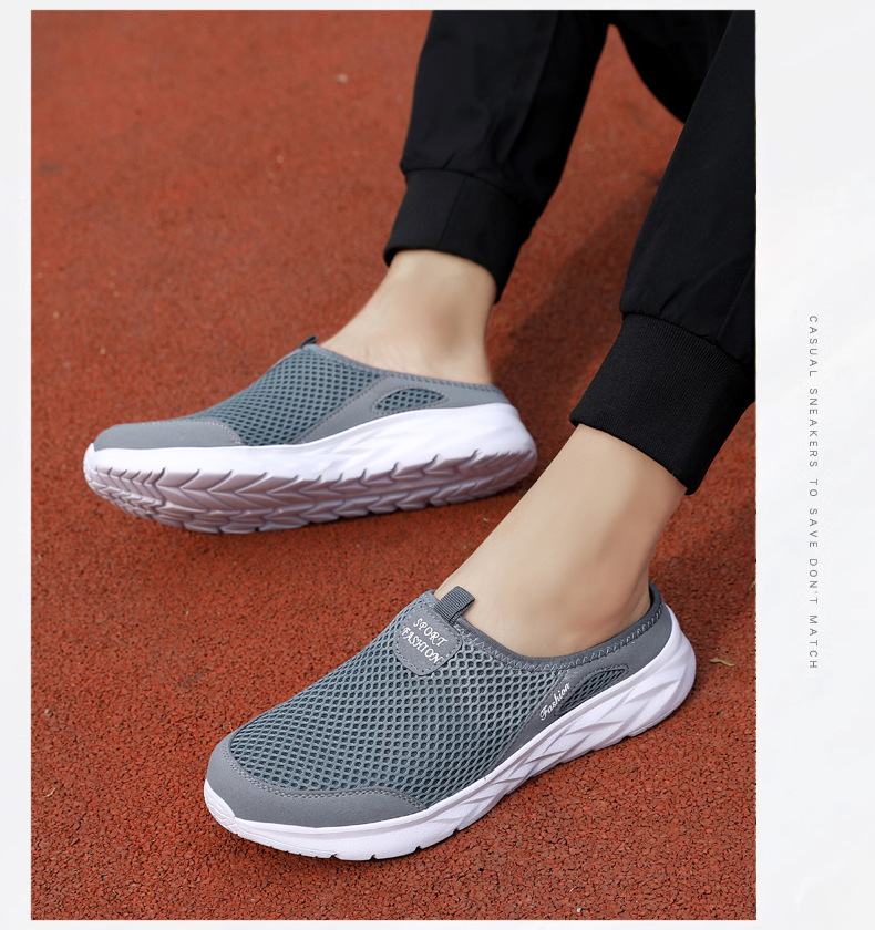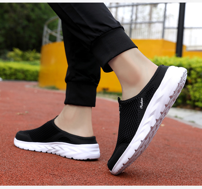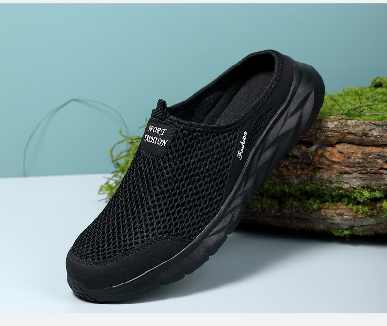 봄과 여름 새로운 캐주얼 스포츠 남성 신발 플러스 사이즈 국경 간 야외 하이킹 게으른 신발 통기성 하프 드래그 메쉬 진강 신발