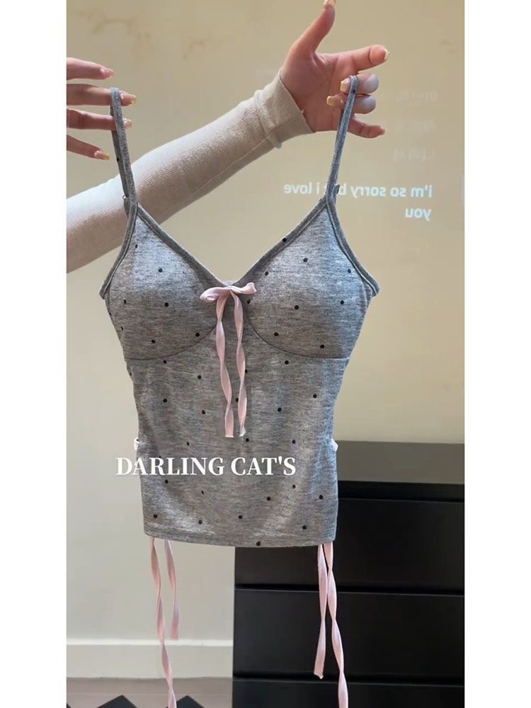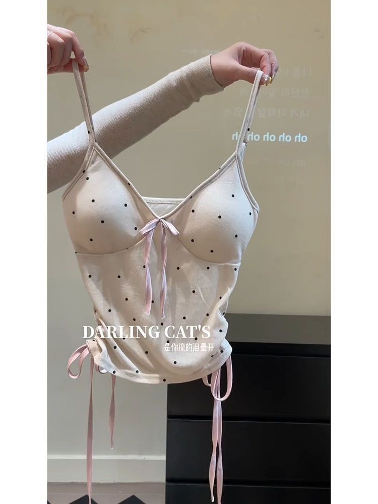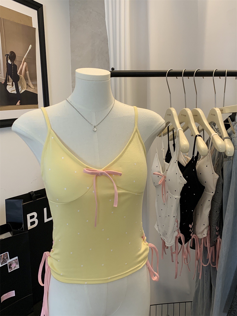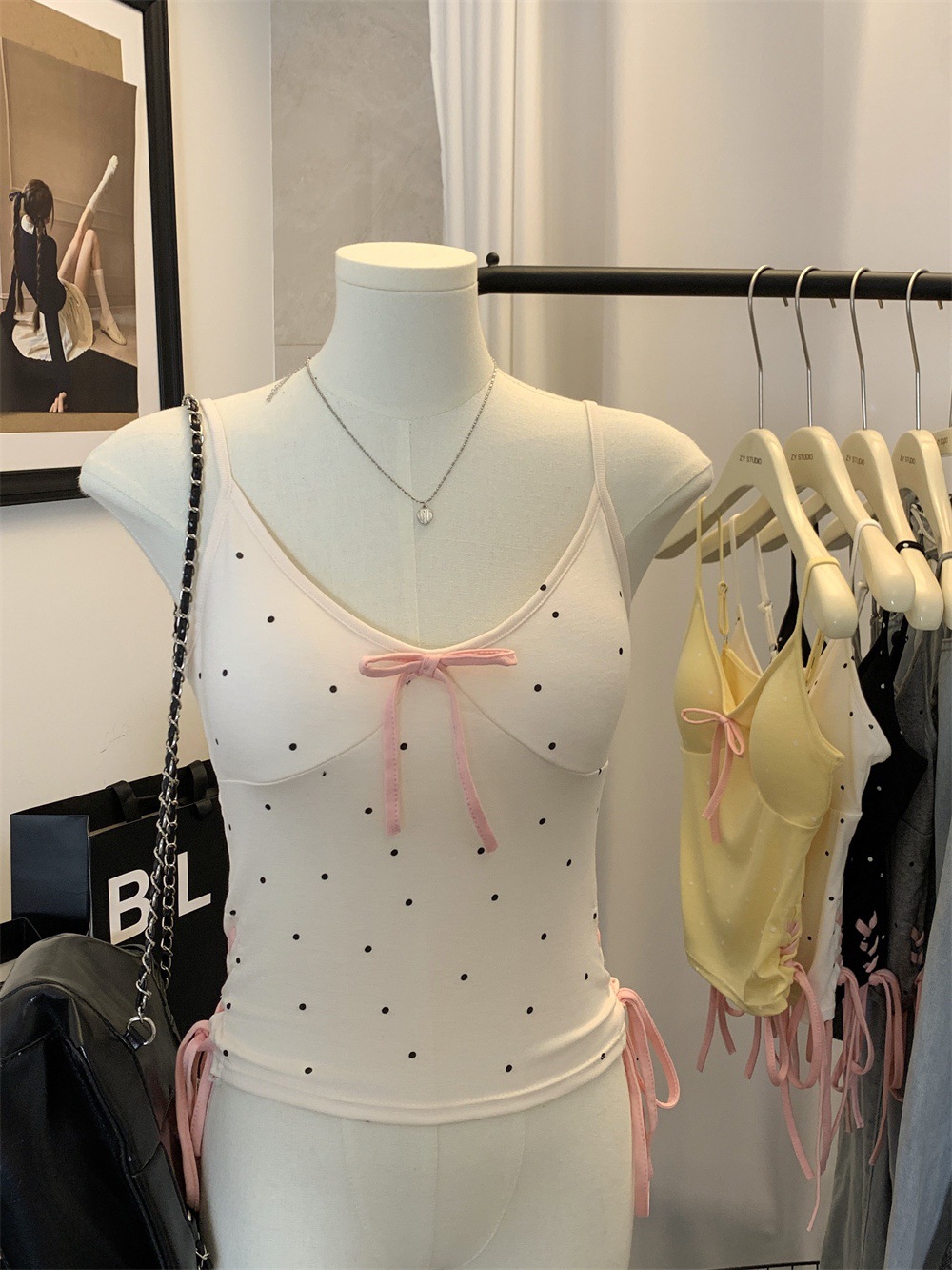 순수한 욕망 스타일 웨이브 도트 보우 카미솔 여성의 여름 새로운 스파이스 걸스 주름 스트랩 슬리밍 쇼트 탑 여성 탑