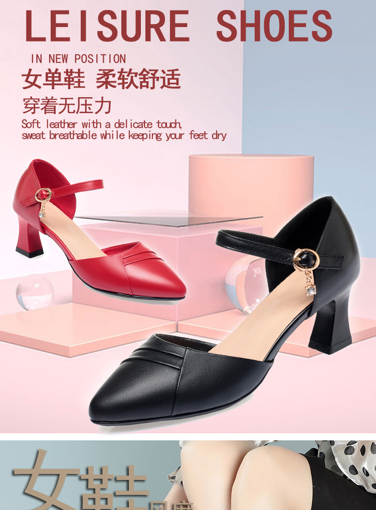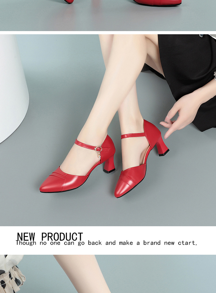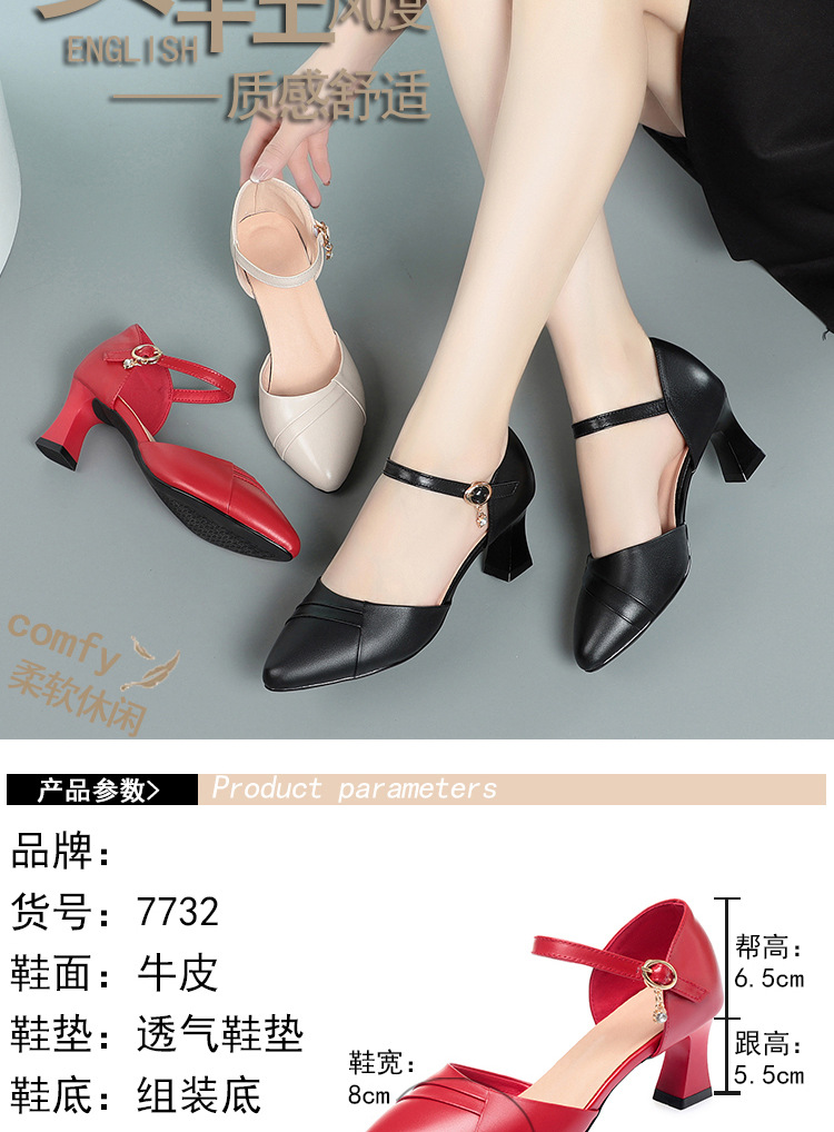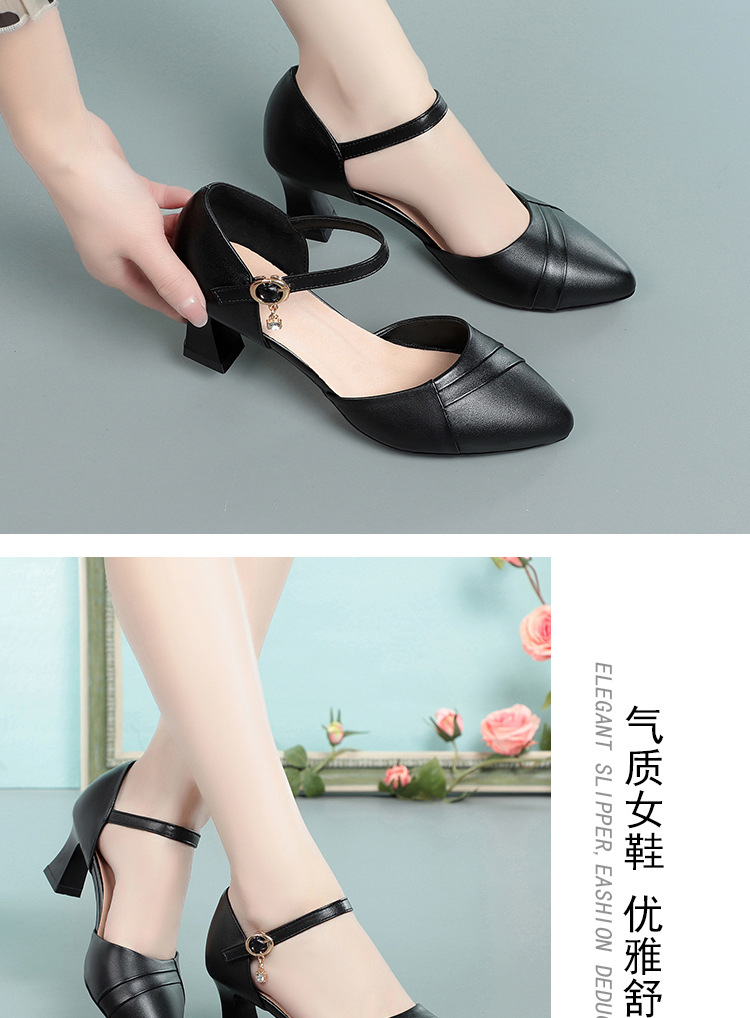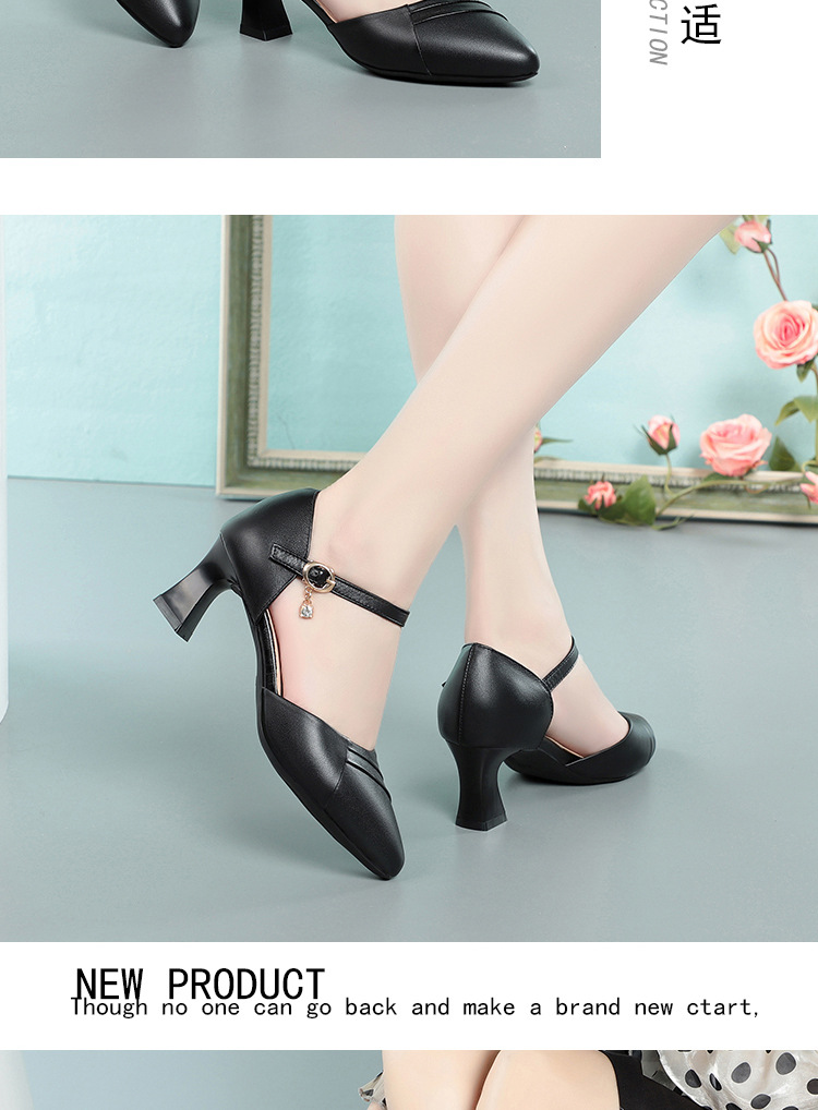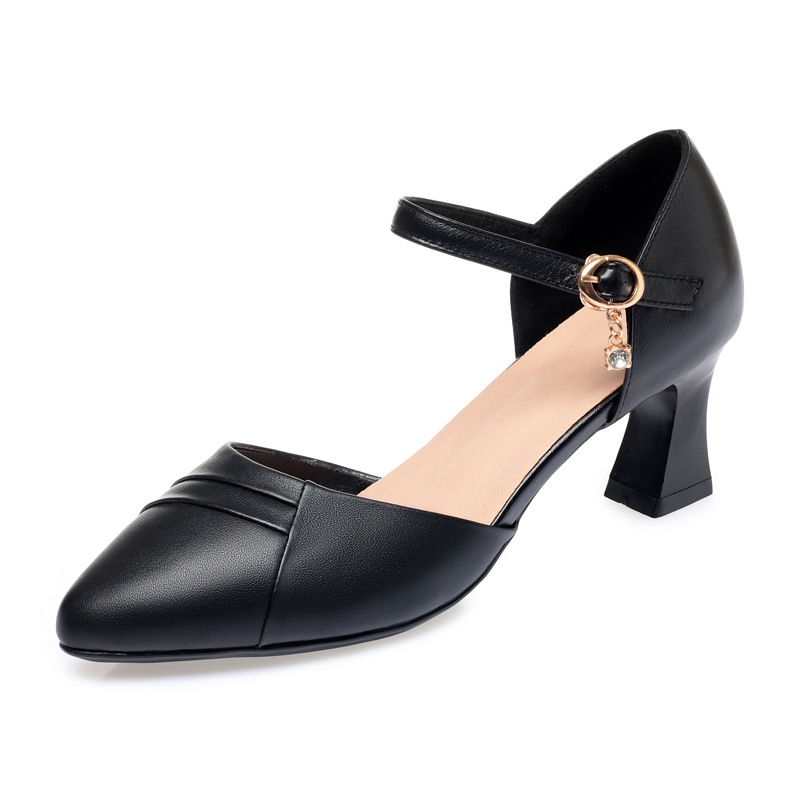 새로운 스타일의 앞코가 뚫린 샌들 여성용 신상 천연 가죽 블랙 작업화 여름 두꺼운 굽 원버튼 치파오 슈즈스토어 가기