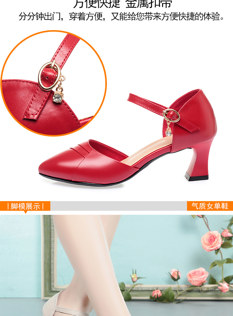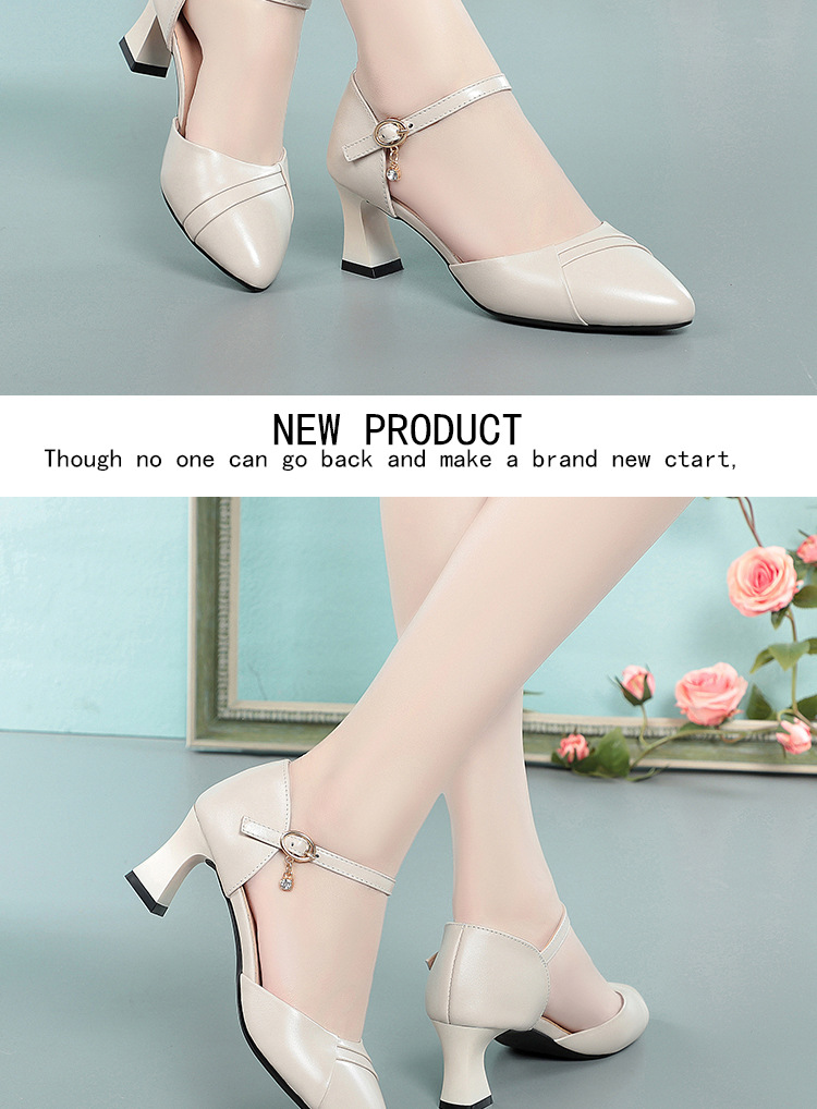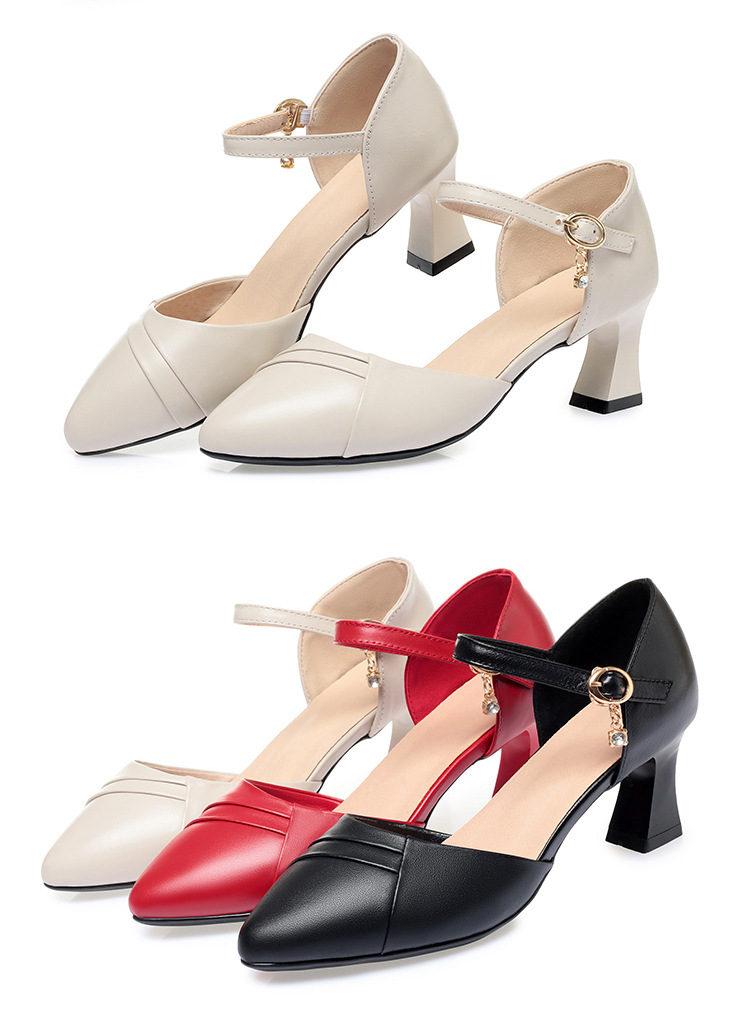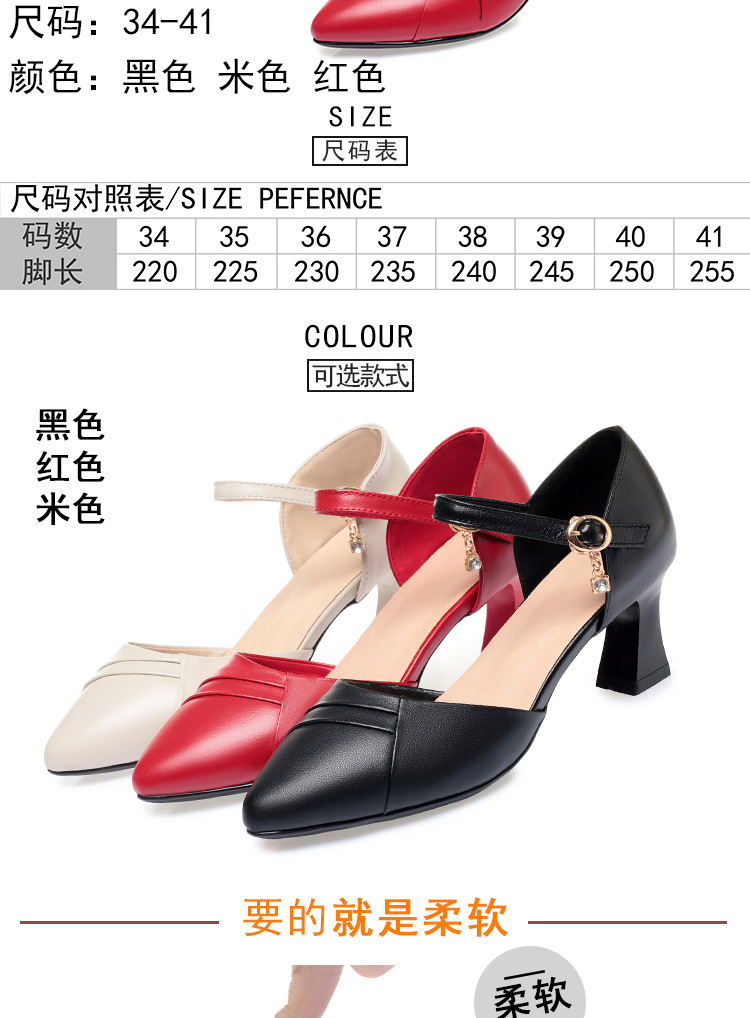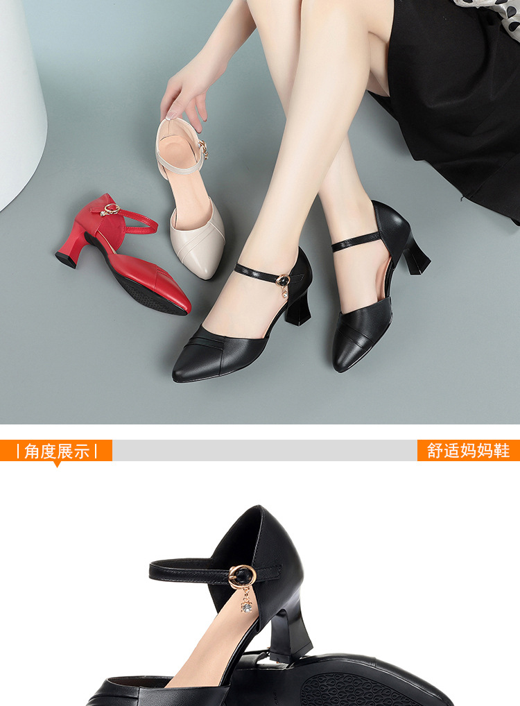 새로운 스타일의 앞코가 뚫린 샌들 여성용 신상 천연 가죽 블랙 작업화 여름 두꺼운 굽 원버튼 치파오 슈즈스토어 가기