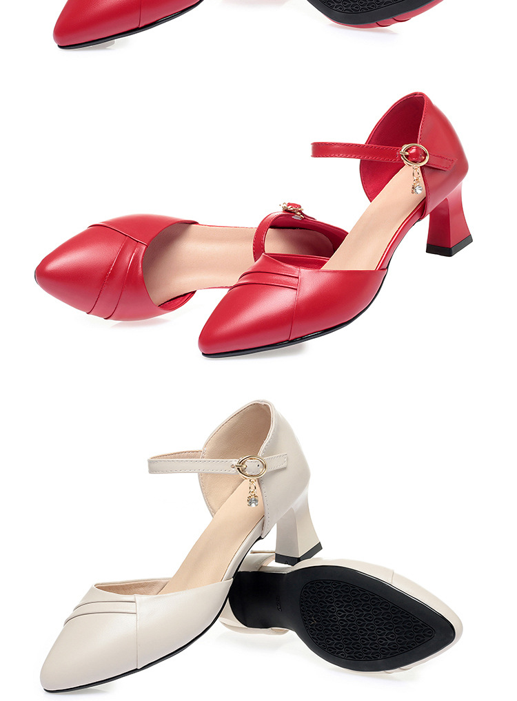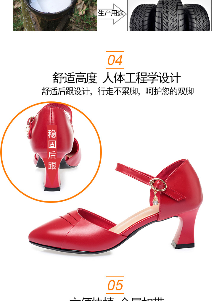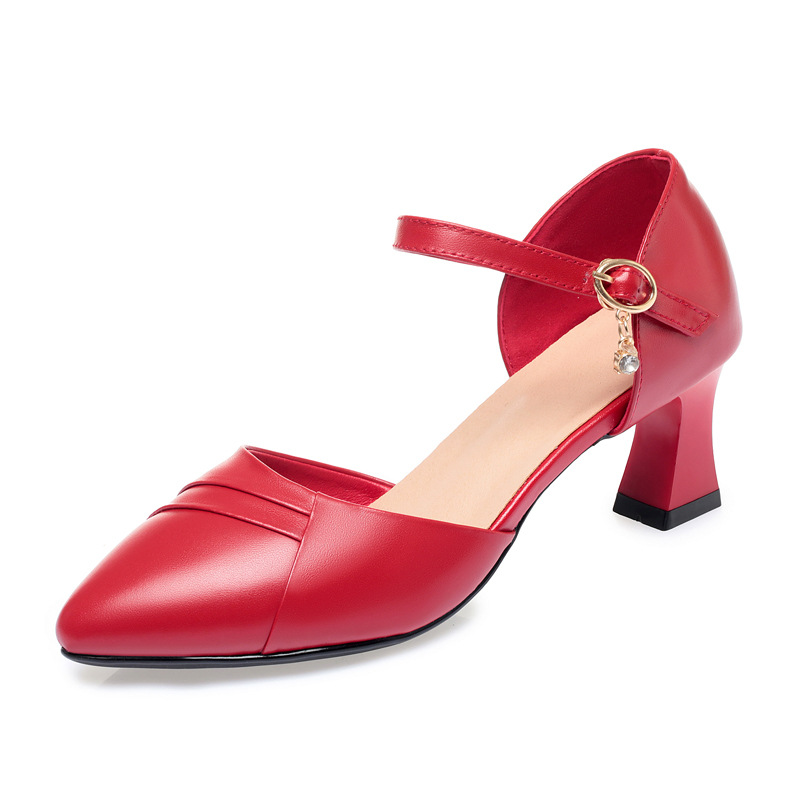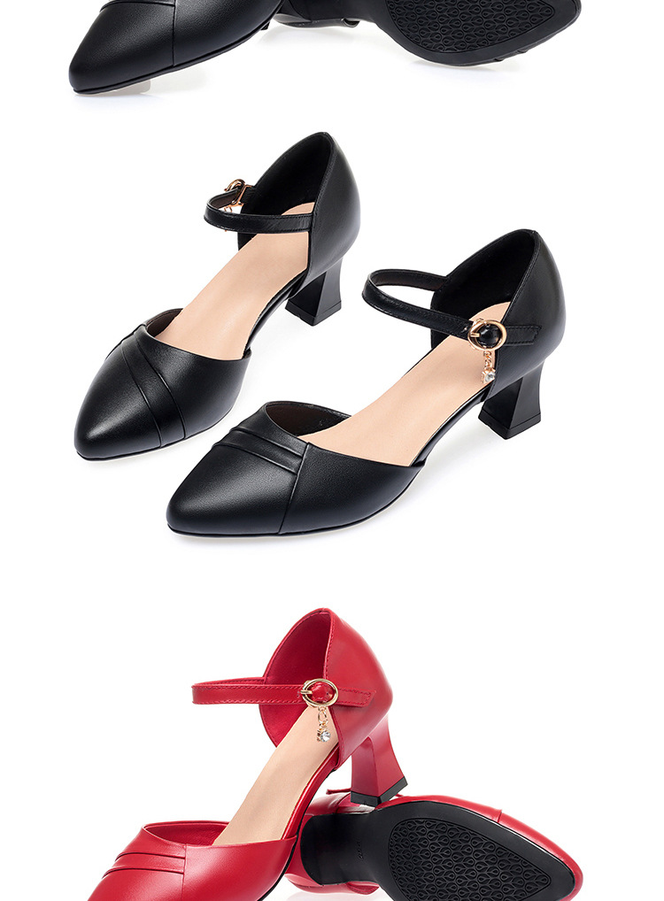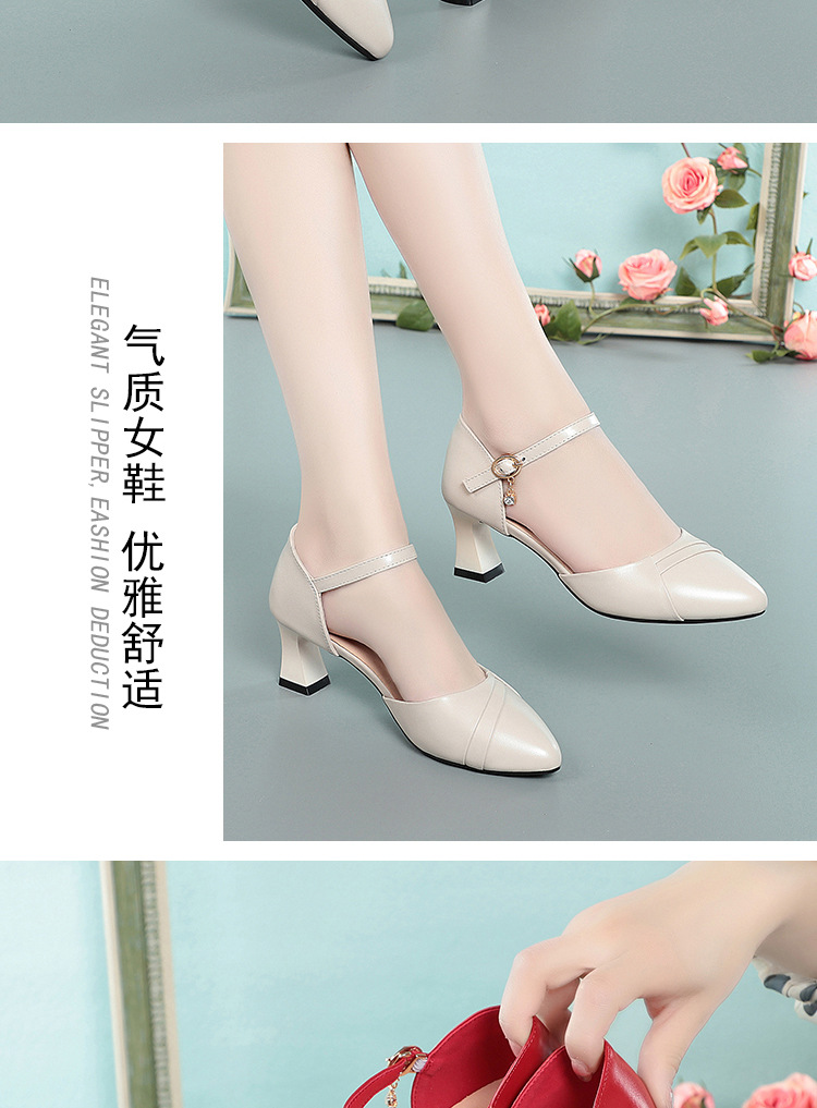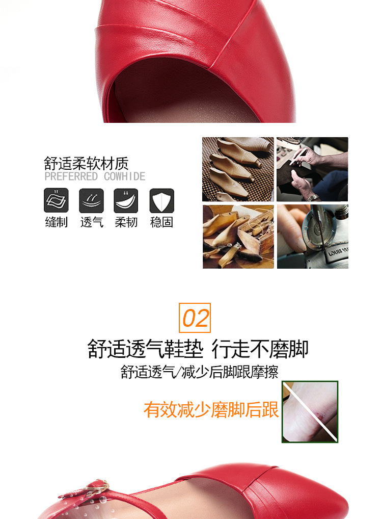 새로운 스타일의 앞코가 뚫린 샌들 여성용 신상 천연 가죽 블랙 작업화 여름 두꺼운 굽 원버튼 치파오 슈즈스토어 가기