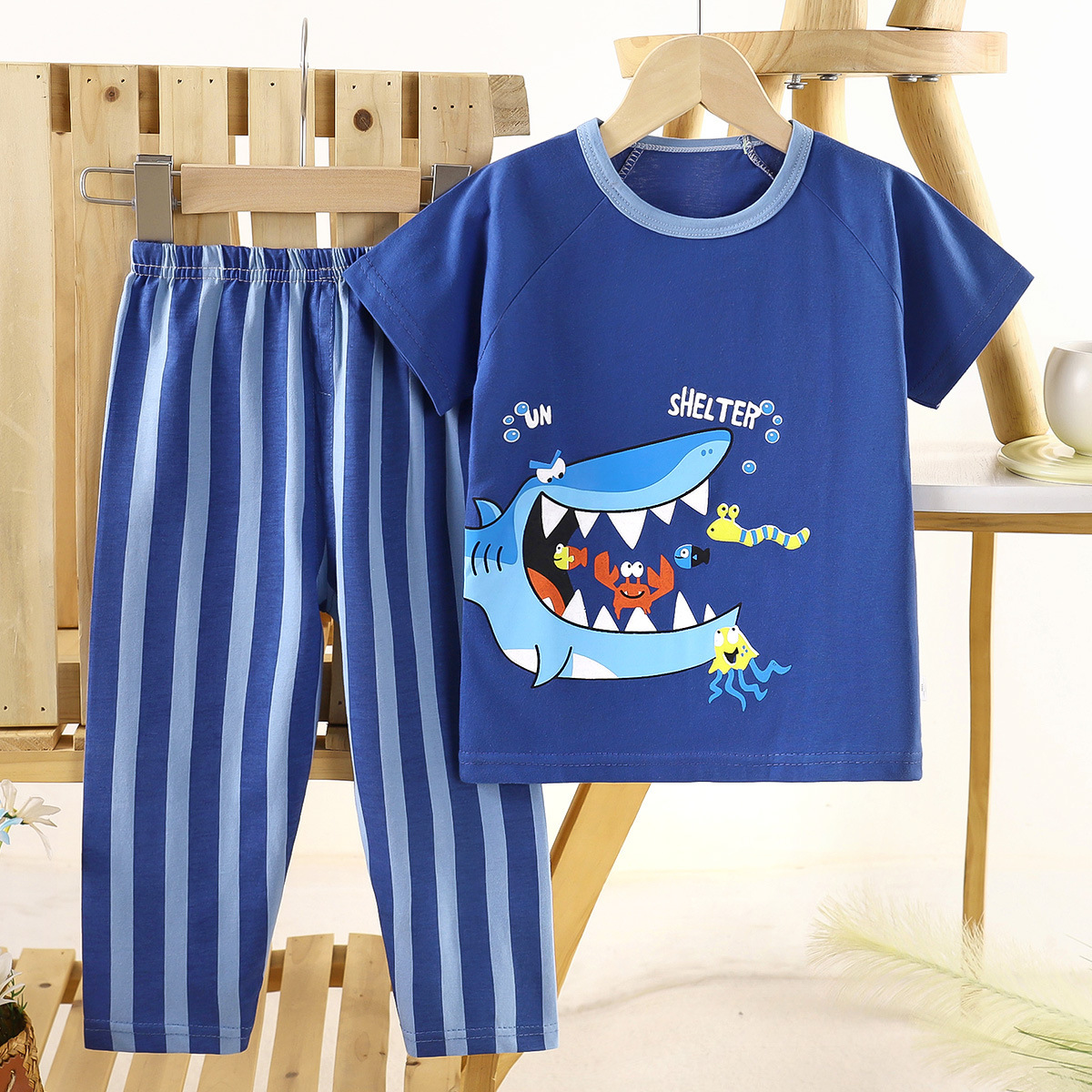 어린이 새로운 짧은 소매 바지 코튼 세트 소년 소녀 잠옷 베이비 에어컨 의류 여름 홈 아동복 도매스토어 가기
