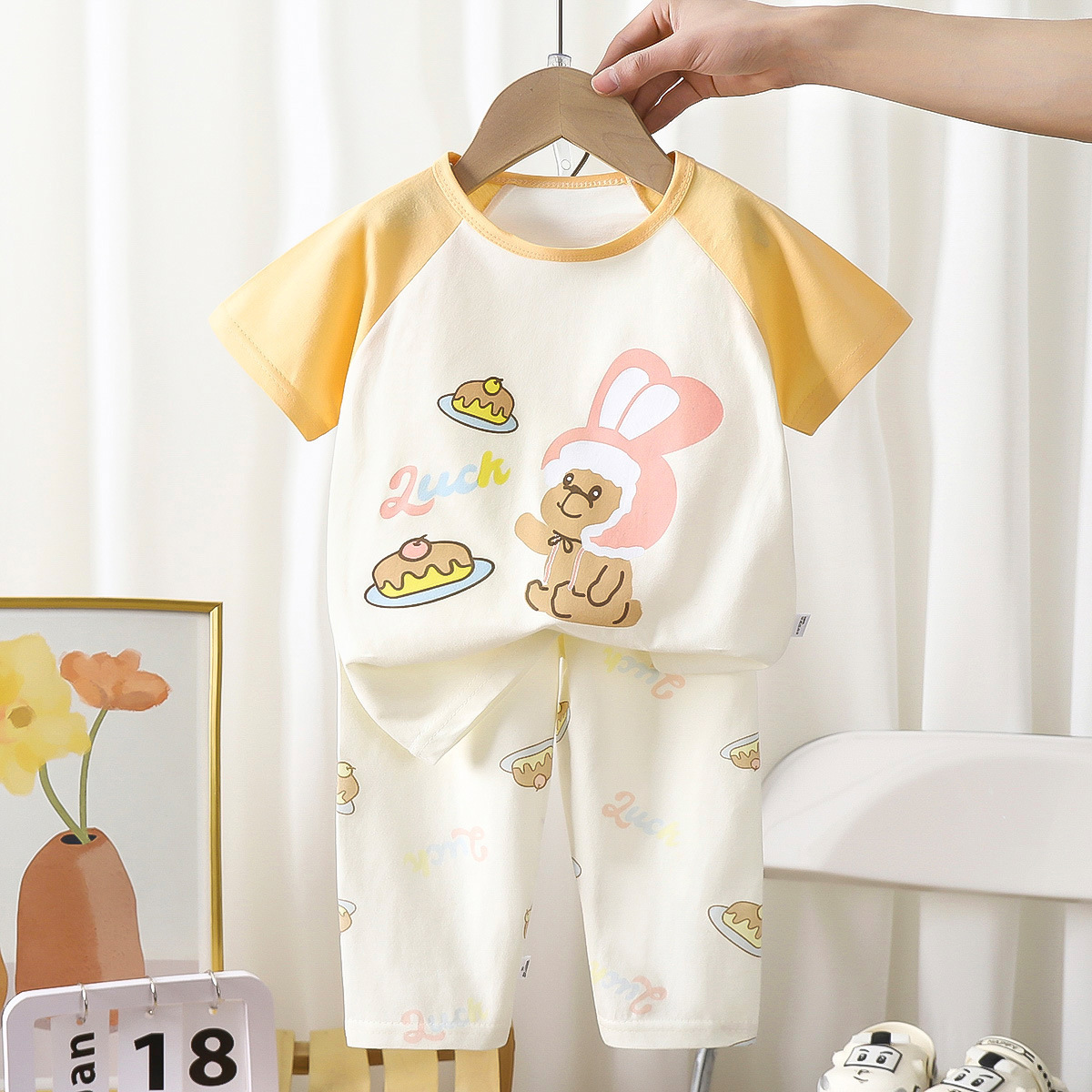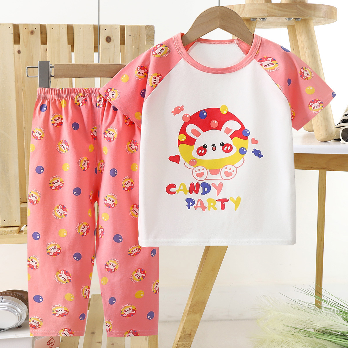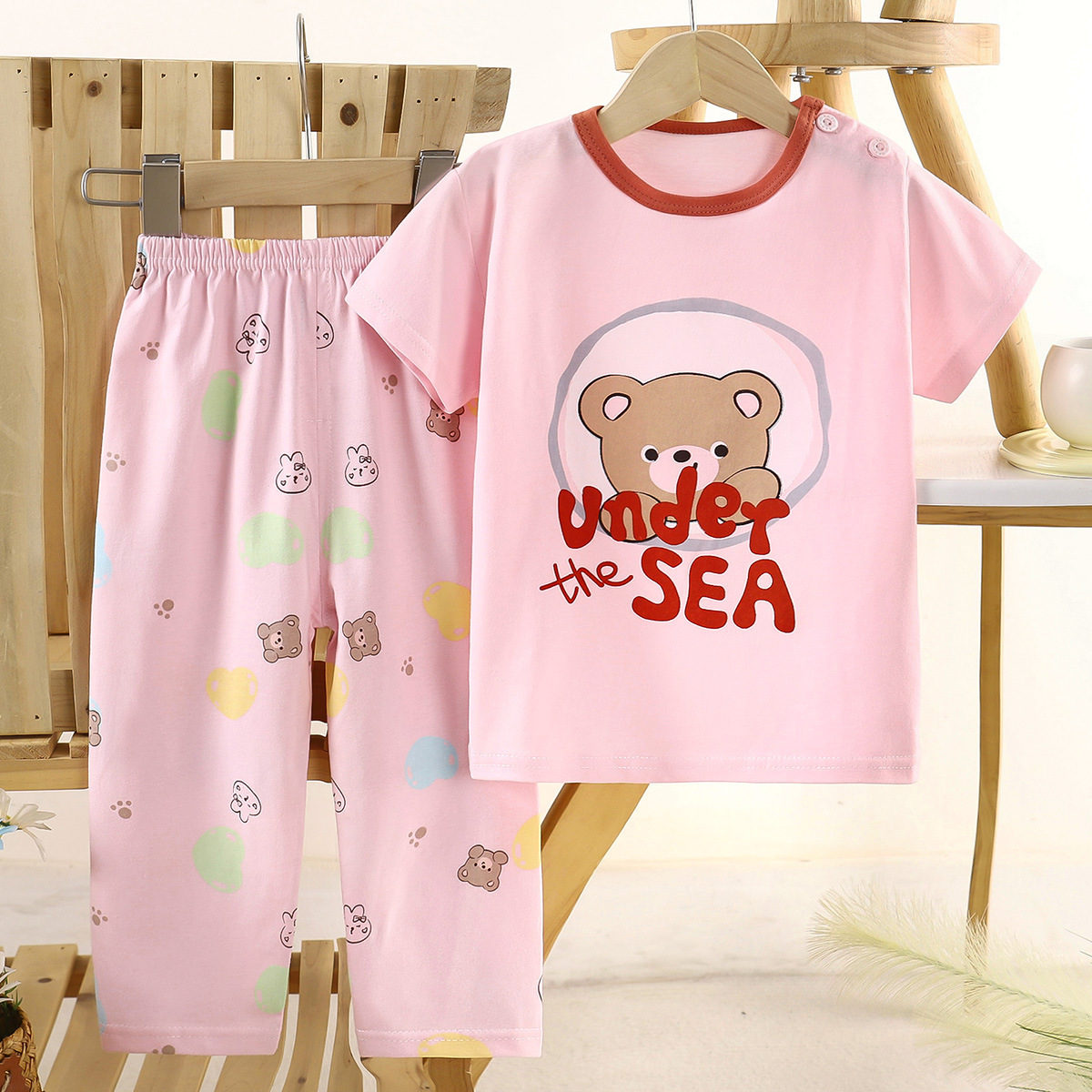 어린이 새로운 짧은 소매 바지 코튼 세트 소년 소녀 잠옷 베이비 에어컨 의류 여름 홈 아동복 도매
