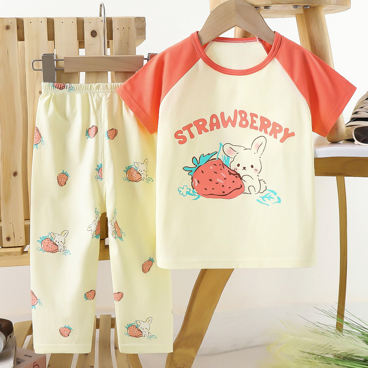 • 반팔 긴바지 - 딸기 토끼