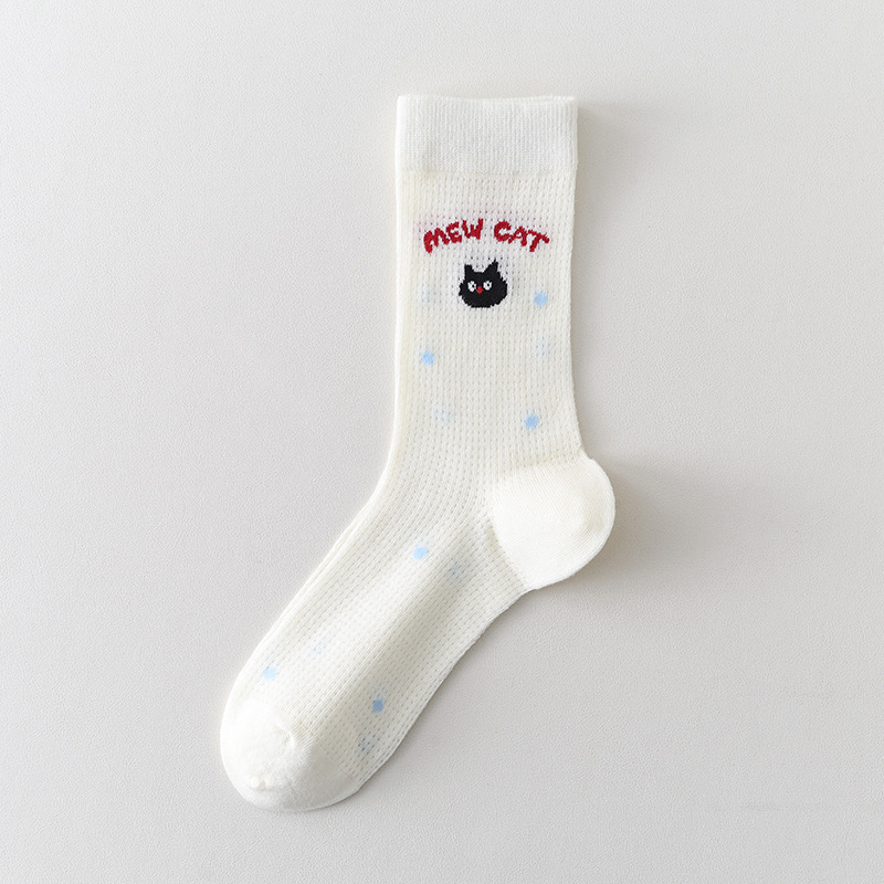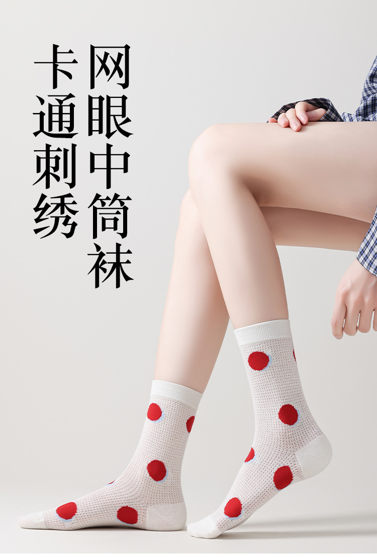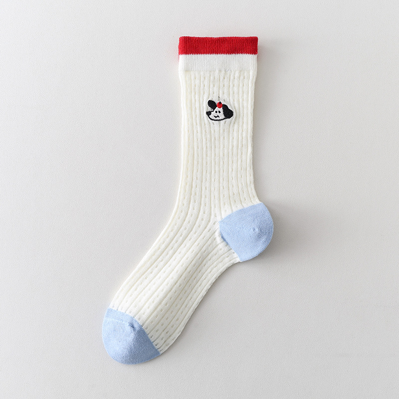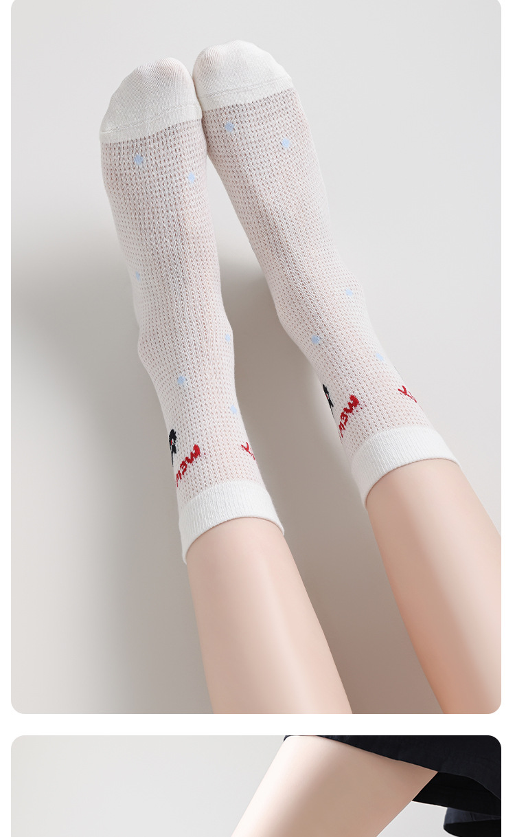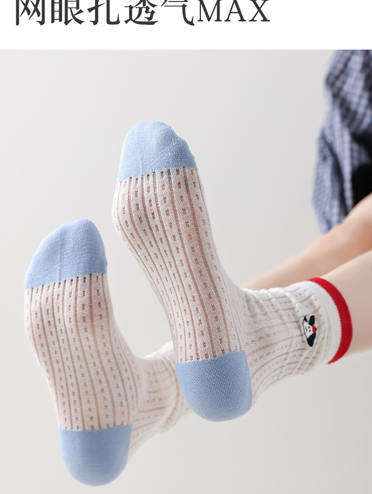 Ins Cartoon 수 놓은 Mid-tube 양말 여성 일본식 대학 스타일 스태킹 양말 여성의 봄과 여름 얇은 메쉬 통기성 여성 양말