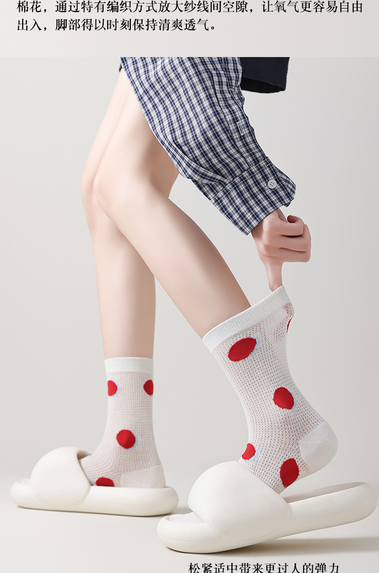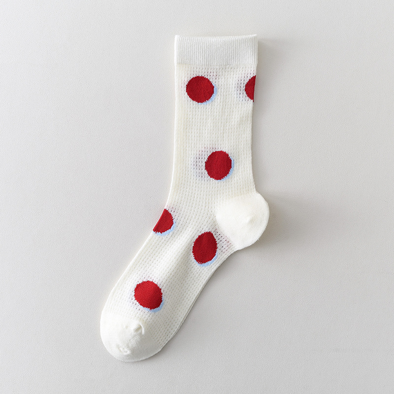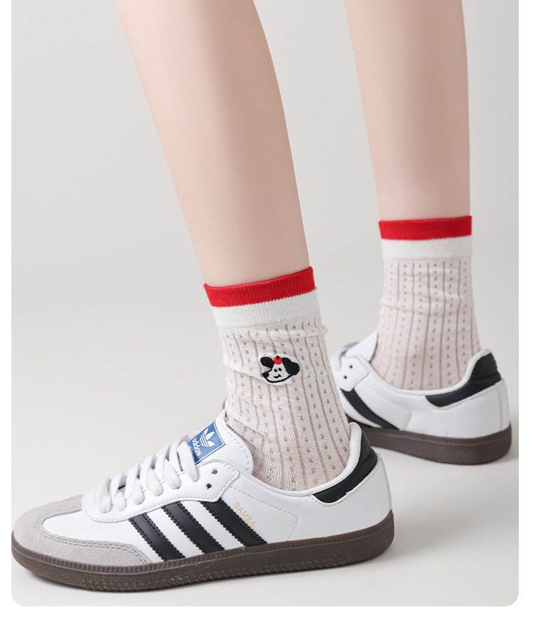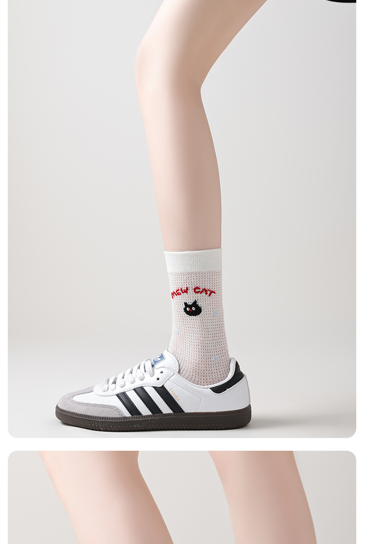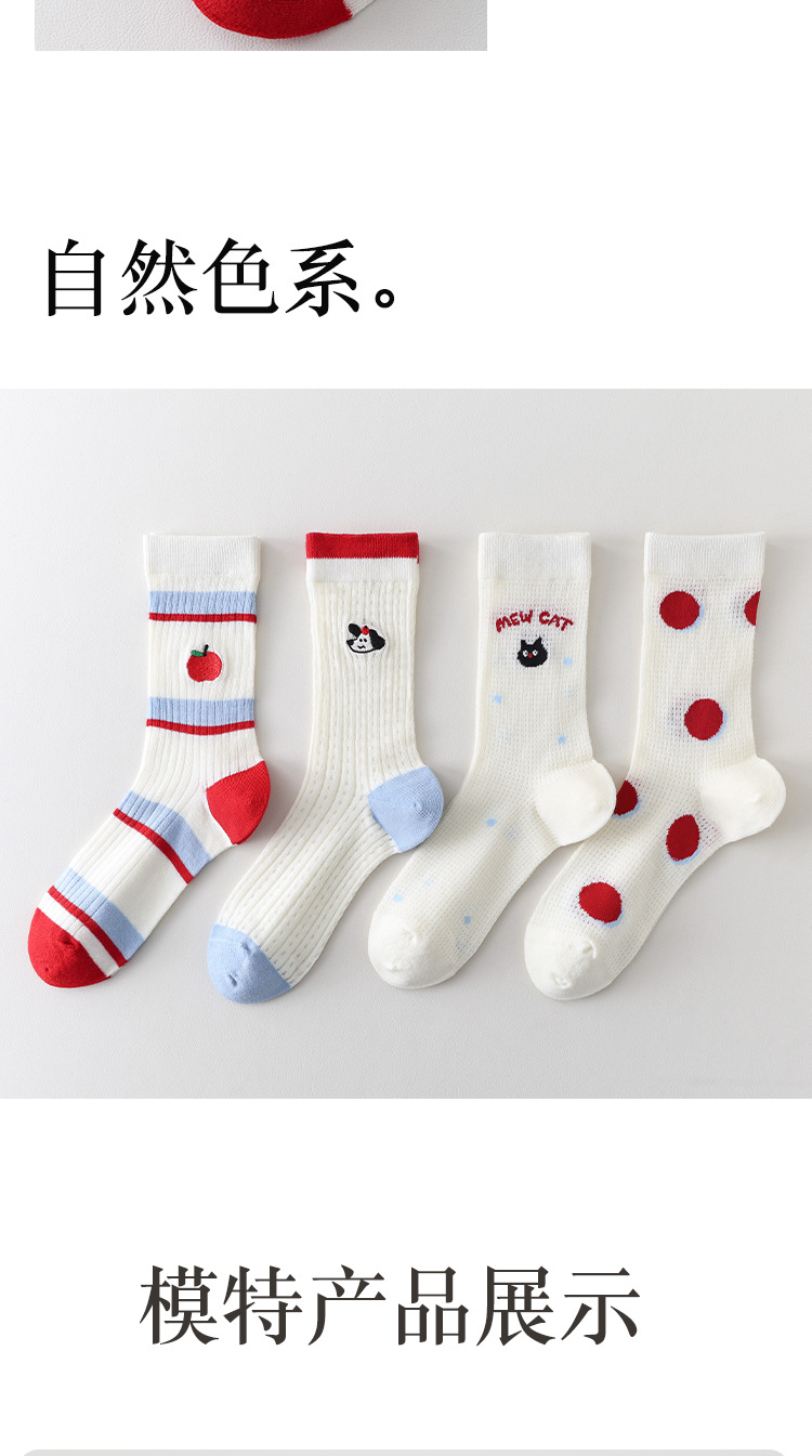 Ins Cartoon 수 놓은 Mid-tube 양말 여성 일본식 대학 스타일 스태킹 양말 여성의 봄과 여름 얇은 메쉬 통기성 여성 양말