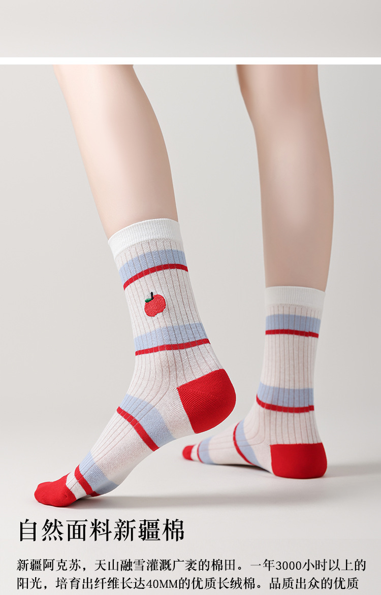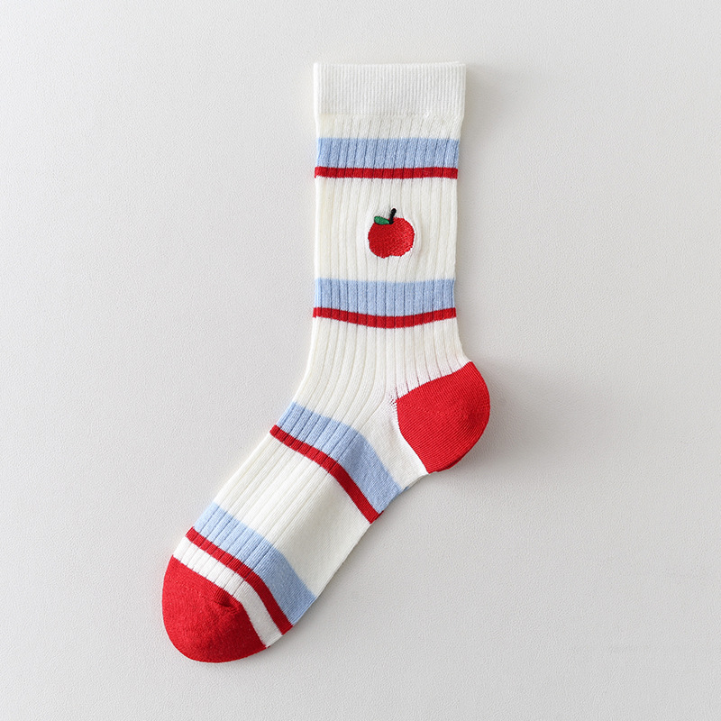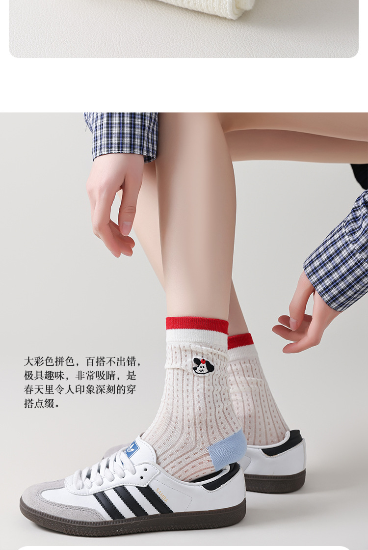 Ins Cartoon 수 놓은 Mid-tube 양말 여성 일본식 대학 스타일 스태킹 양말 여성의 봄과 여름 얇은 메쉬 통기성 여성 양말스토어 가기