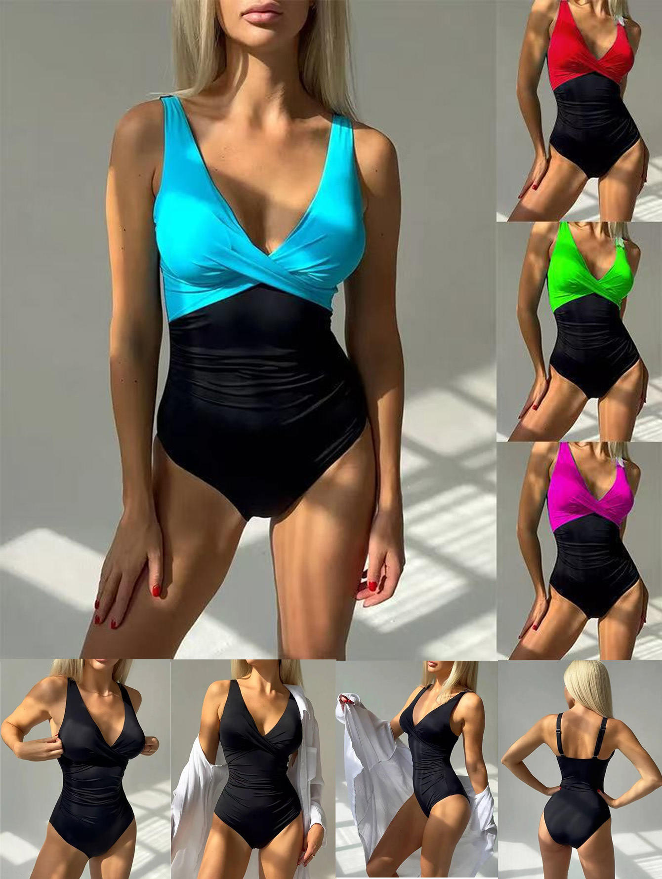 2025 유럽과 미국 국경 섹시한 단색 원피스 수영복 아마존 타이트한 슬림 깊은 V 넥 백리스 폭발 수영복스토어 가기