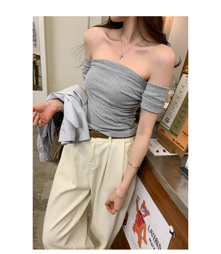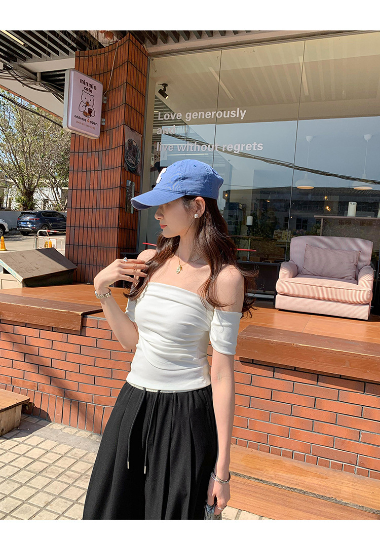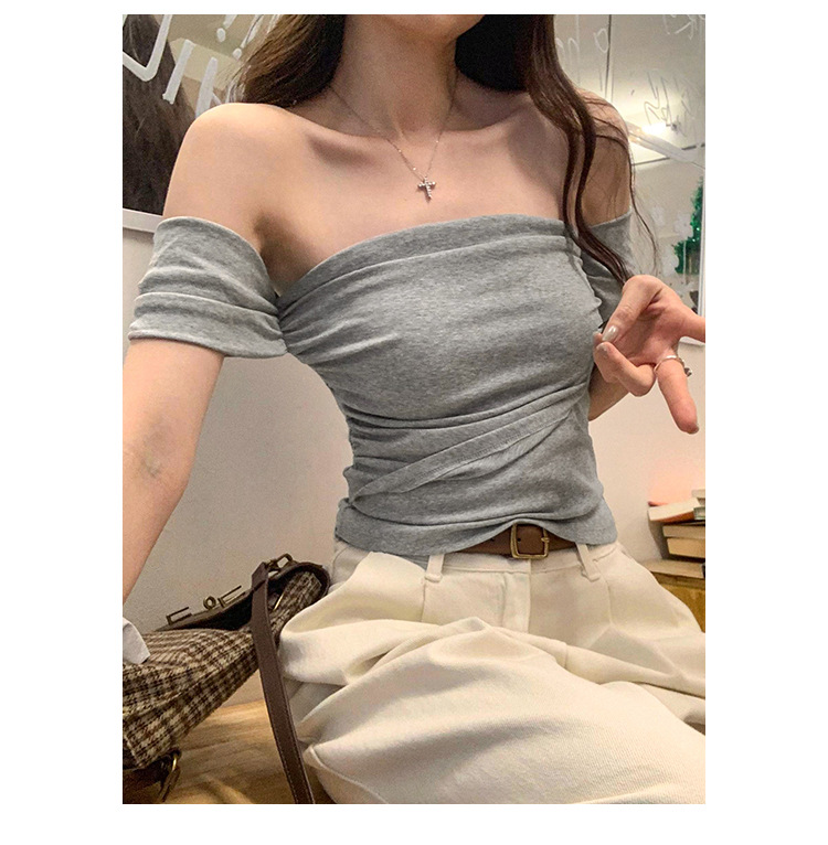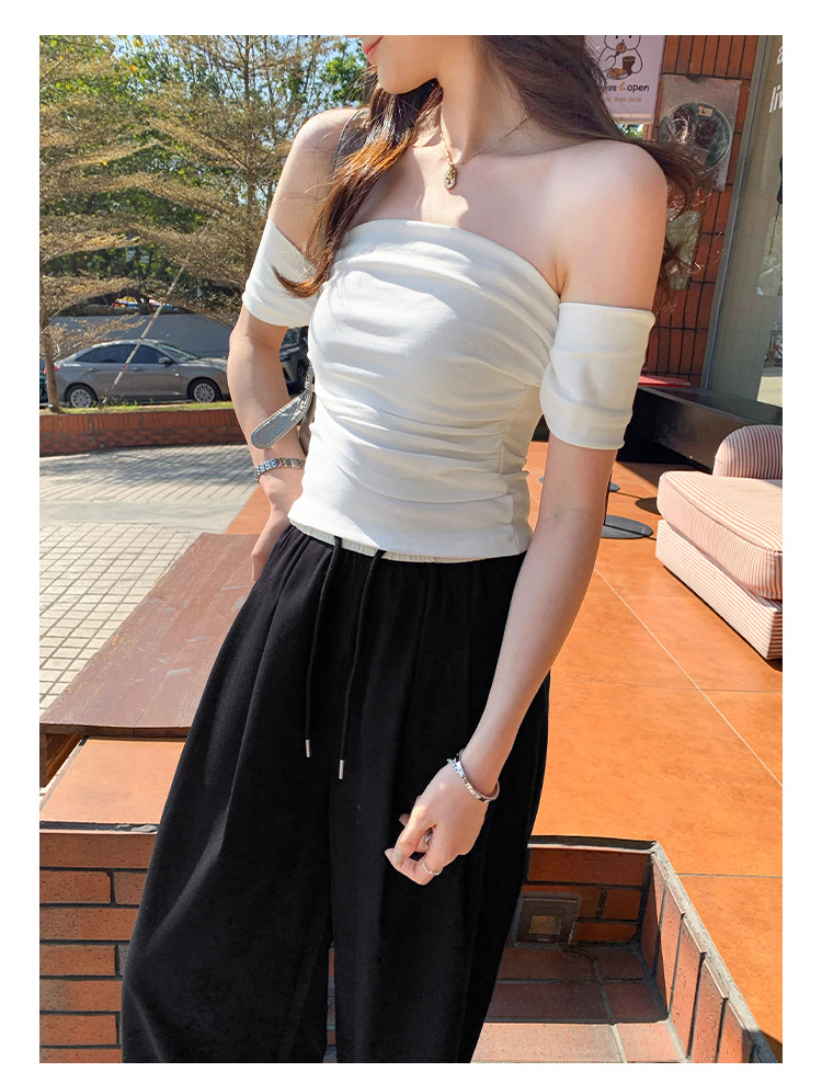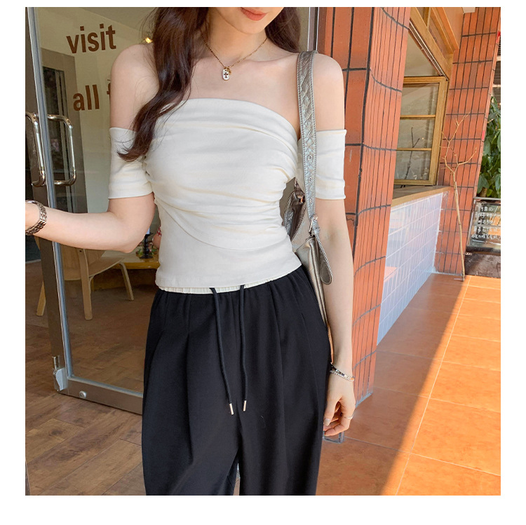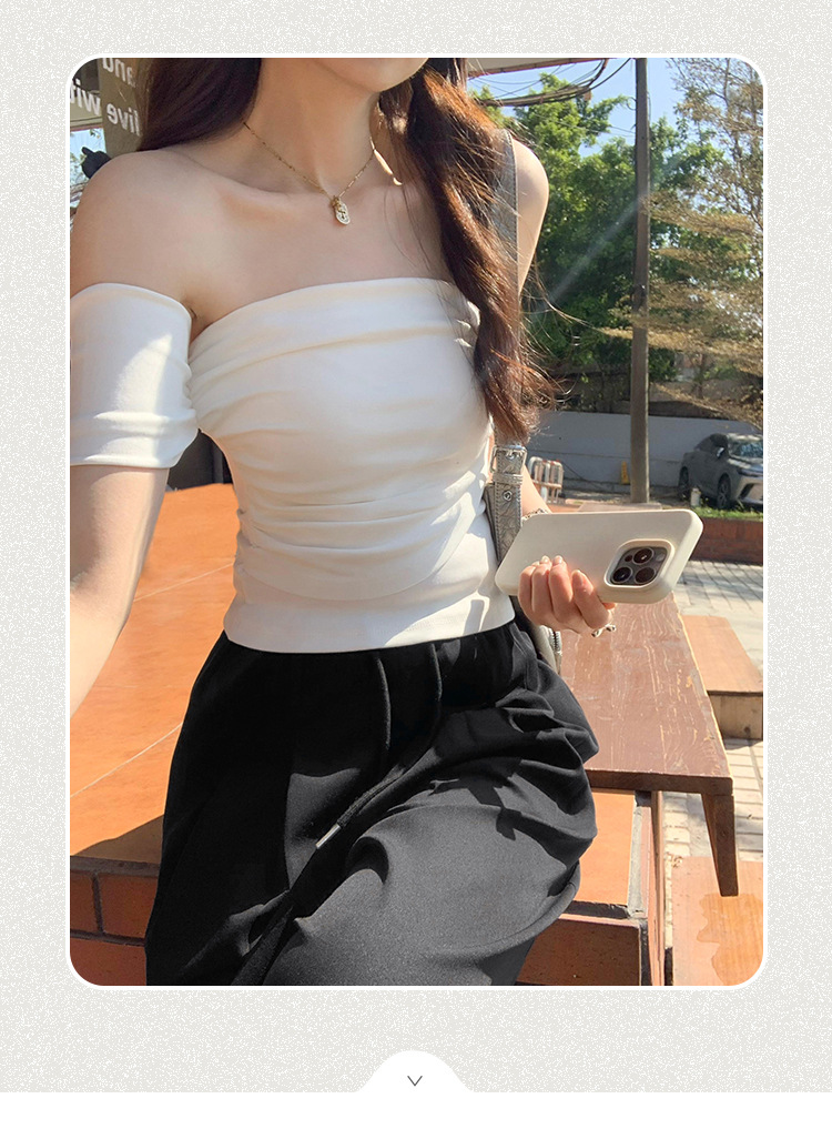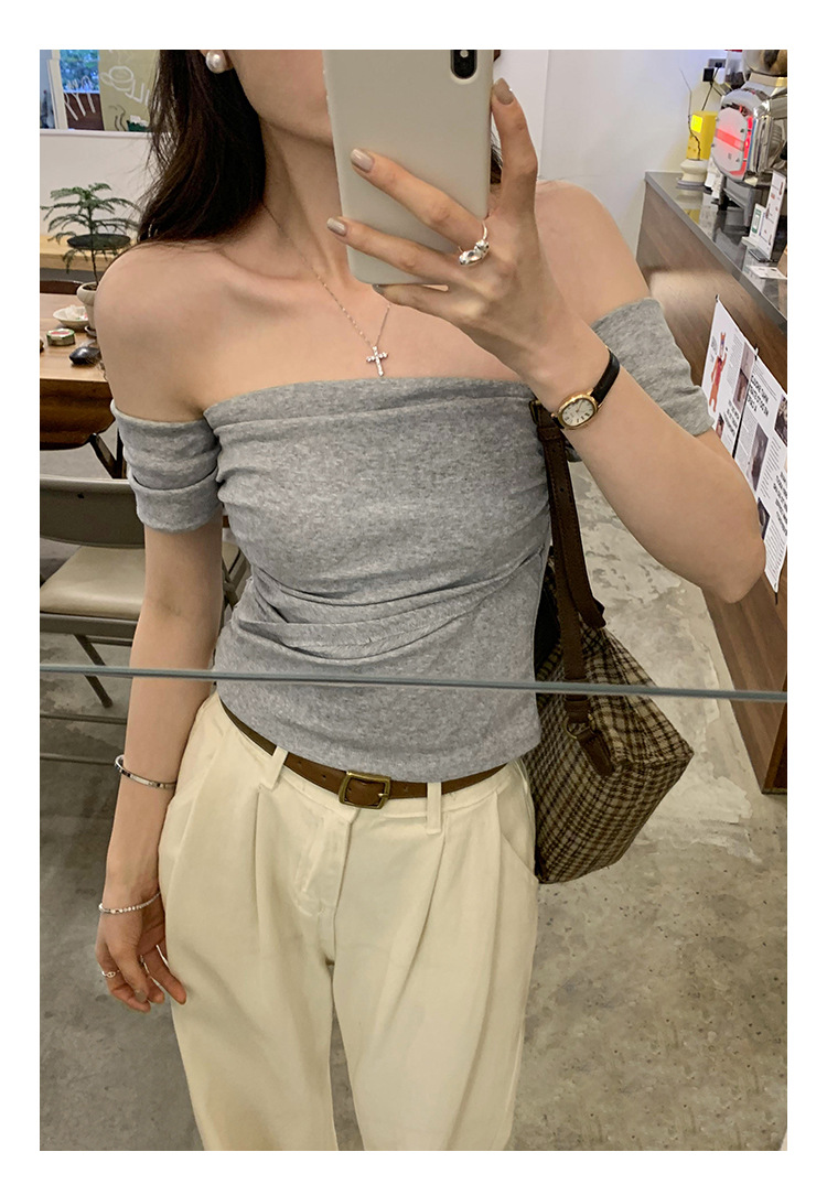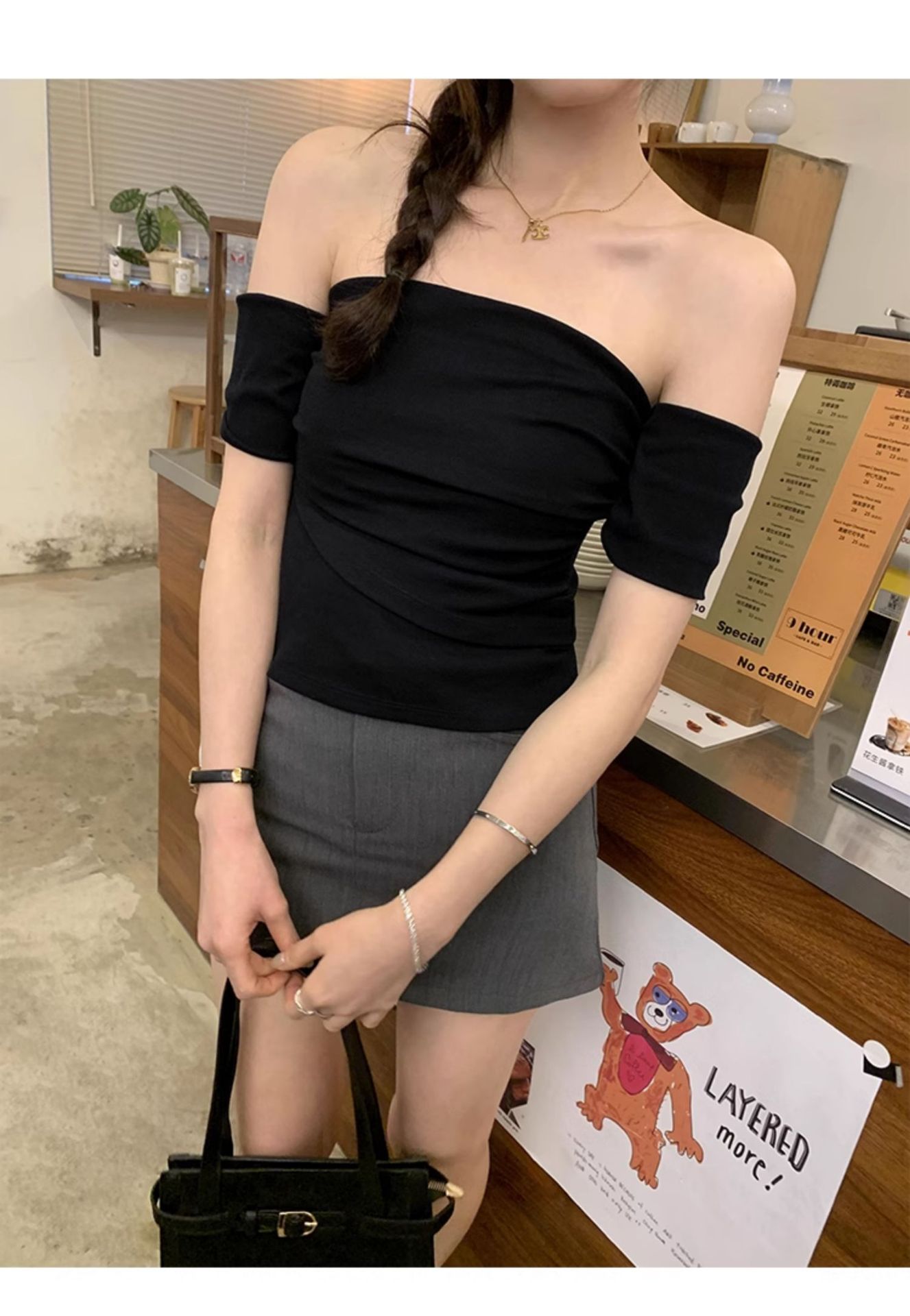 한국 스타일 순수 섹시한 스파이스 걸스 스트랩리스 반팔 티셔츠 여성 2025 년 여름 새 어깨 슬림 탑
