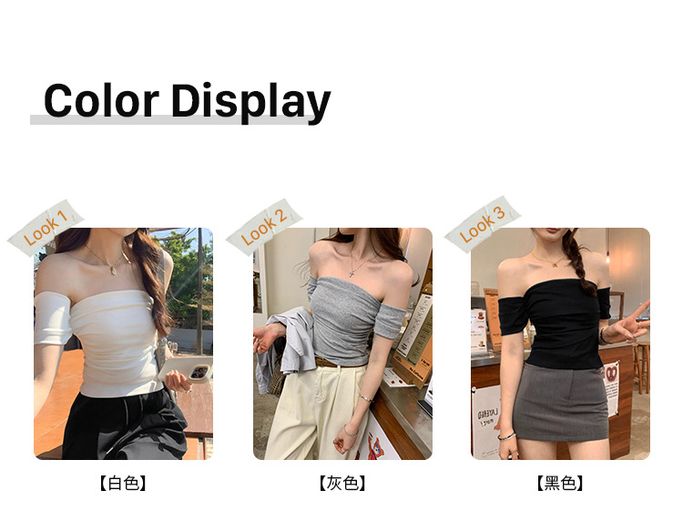 한국 스타일 순수 섹시한 스파이스 걸스 스트랩리스 반팔 티셔츠 여성 2025 년 여름 새 어깨 슬림 탑스토어 가기