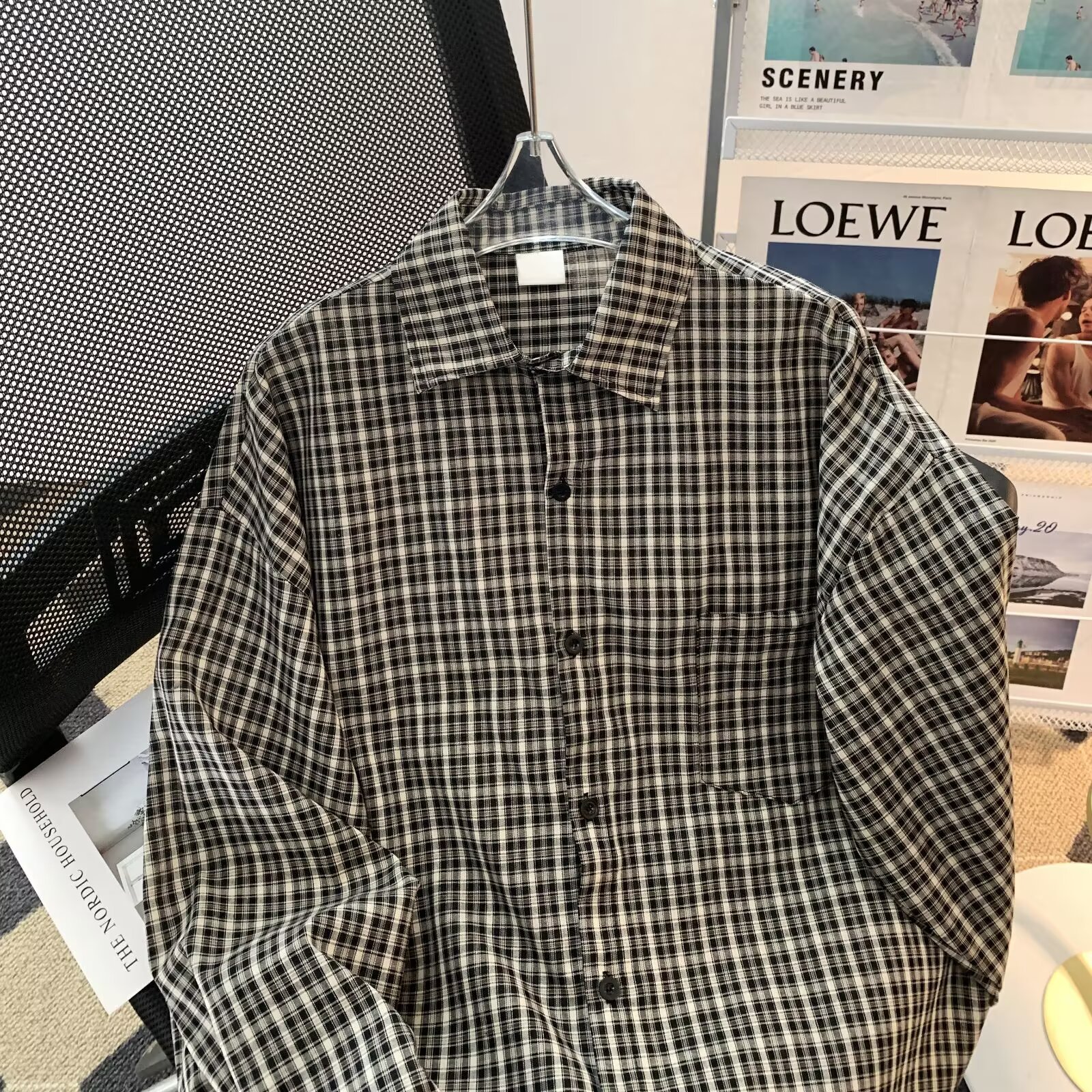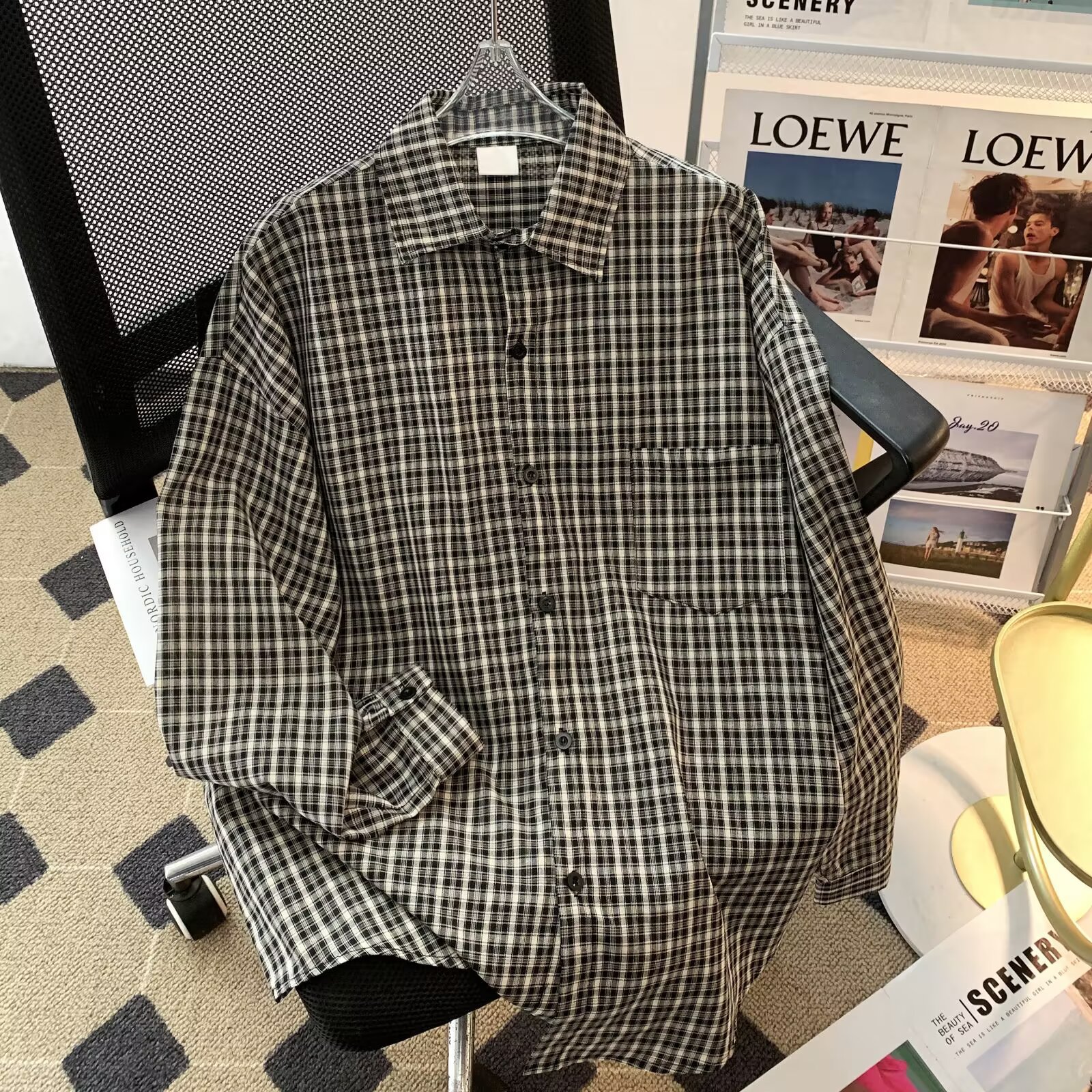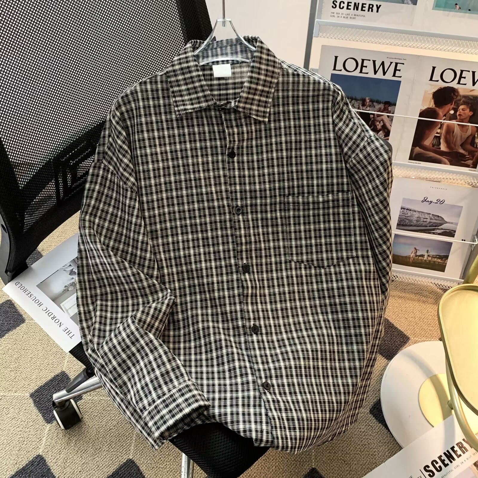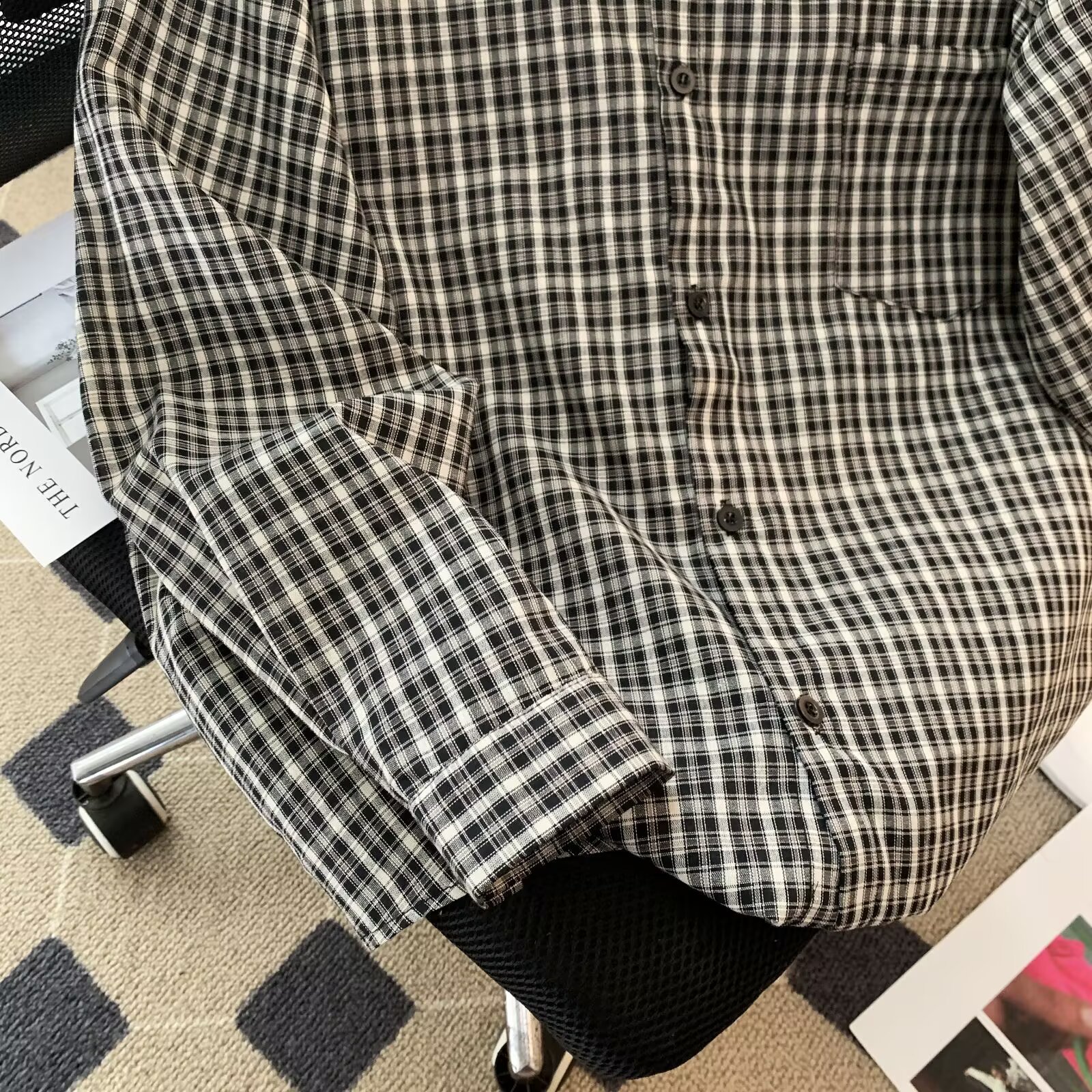 봄 2025 홍콩 스타일 격자 무늬 긴 소매 셔츠 유니섹스 플러스 사이즈 옷깃 셔츠 십대 남성용 셔츠스토어 가기