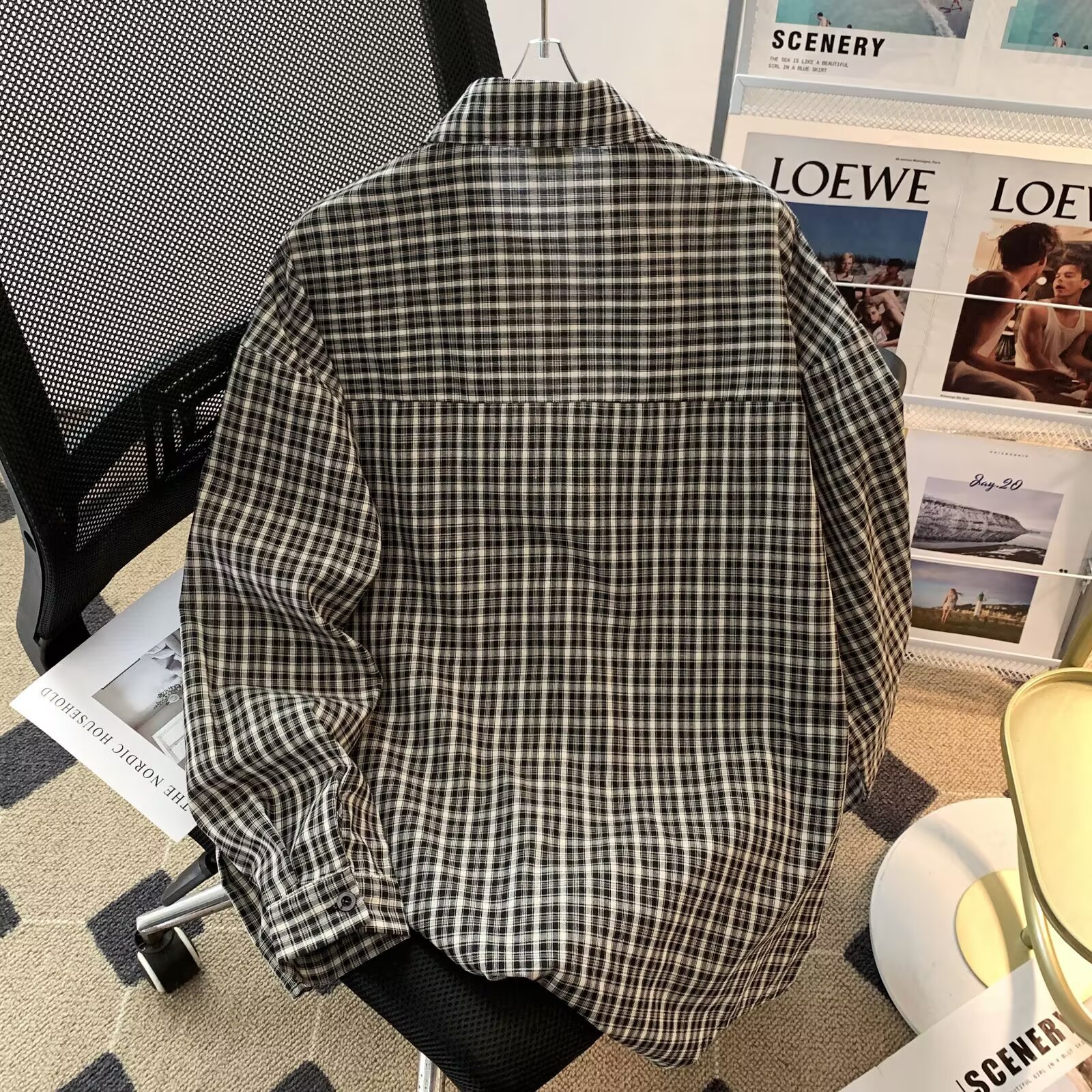 봄 2025 홍콩 스타일 격자 무늬 긴 소매 셔츠 유니섹스 플러스 사이즈 옷깃 셔츠 십대 남성용 셔츠