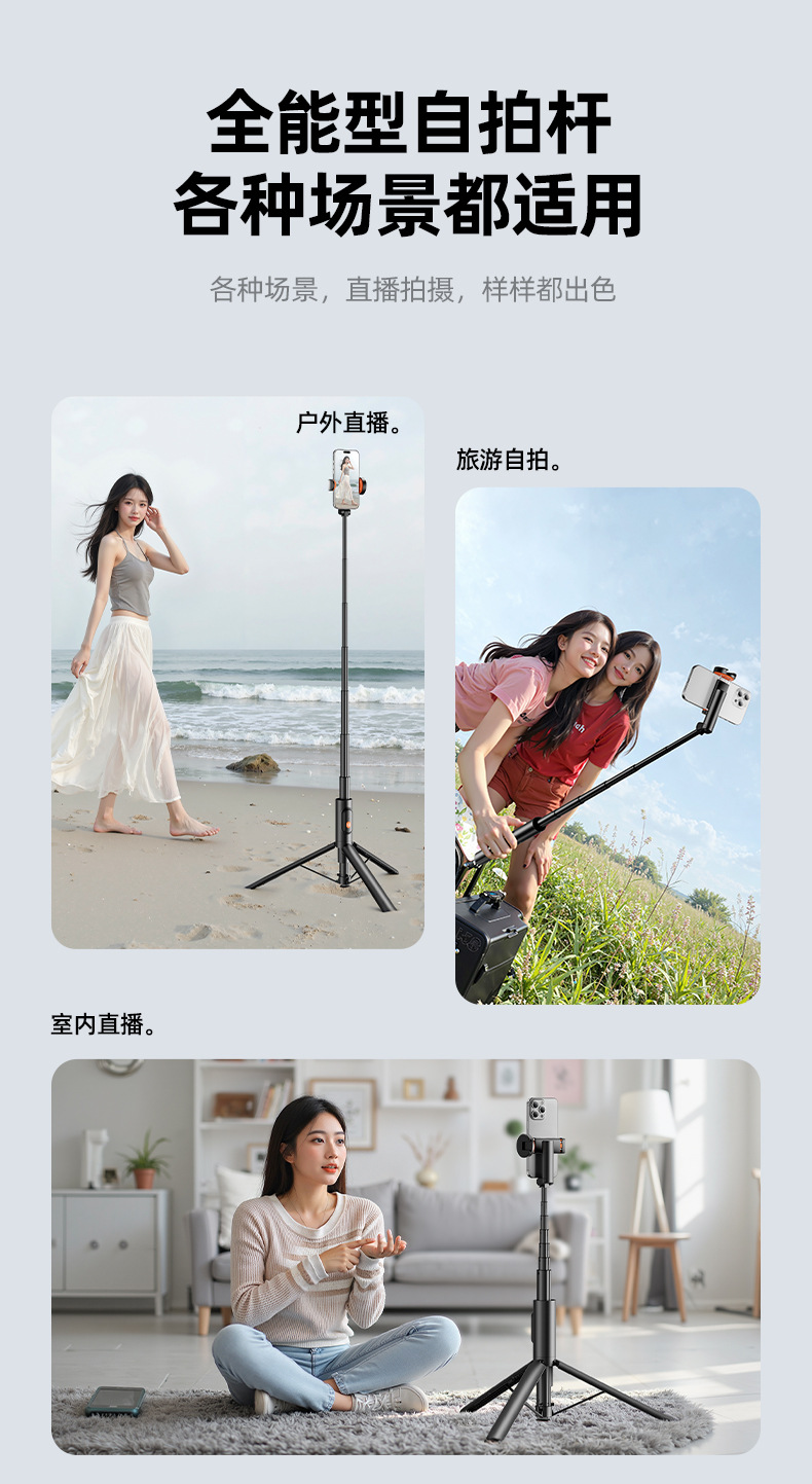 셀카 스틱 바닥 자동 삼각대 통합 핸드 헬드 카메라 스틱 휴대용 라이브 라이트 충전 브래킷 드롭 오프 로드스토어 가기