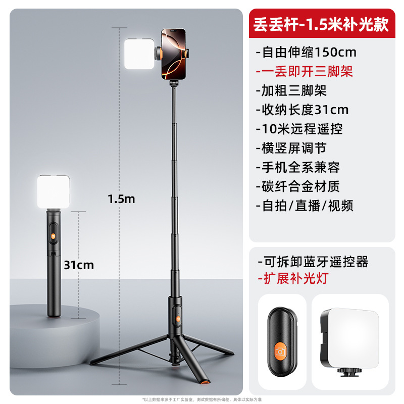 셀카 스틱 바닥 자동 삼각대 통합 핸드 헬드 카메라 스틱 휴대용 라이브 라이트 충전 브래킷 드롭 오프 로드